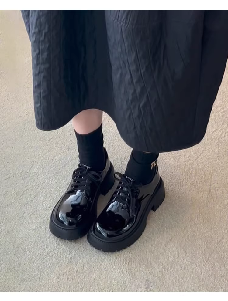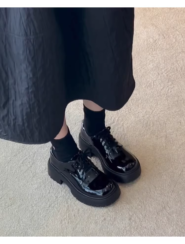 - Phiên bản da cừu~ Giày derby đế dày bằng da sáng chế kiểu Anh dành cho nữ, giày da mũi rộng đa năng kiểu Nhật Bản, giày lười buộc dây