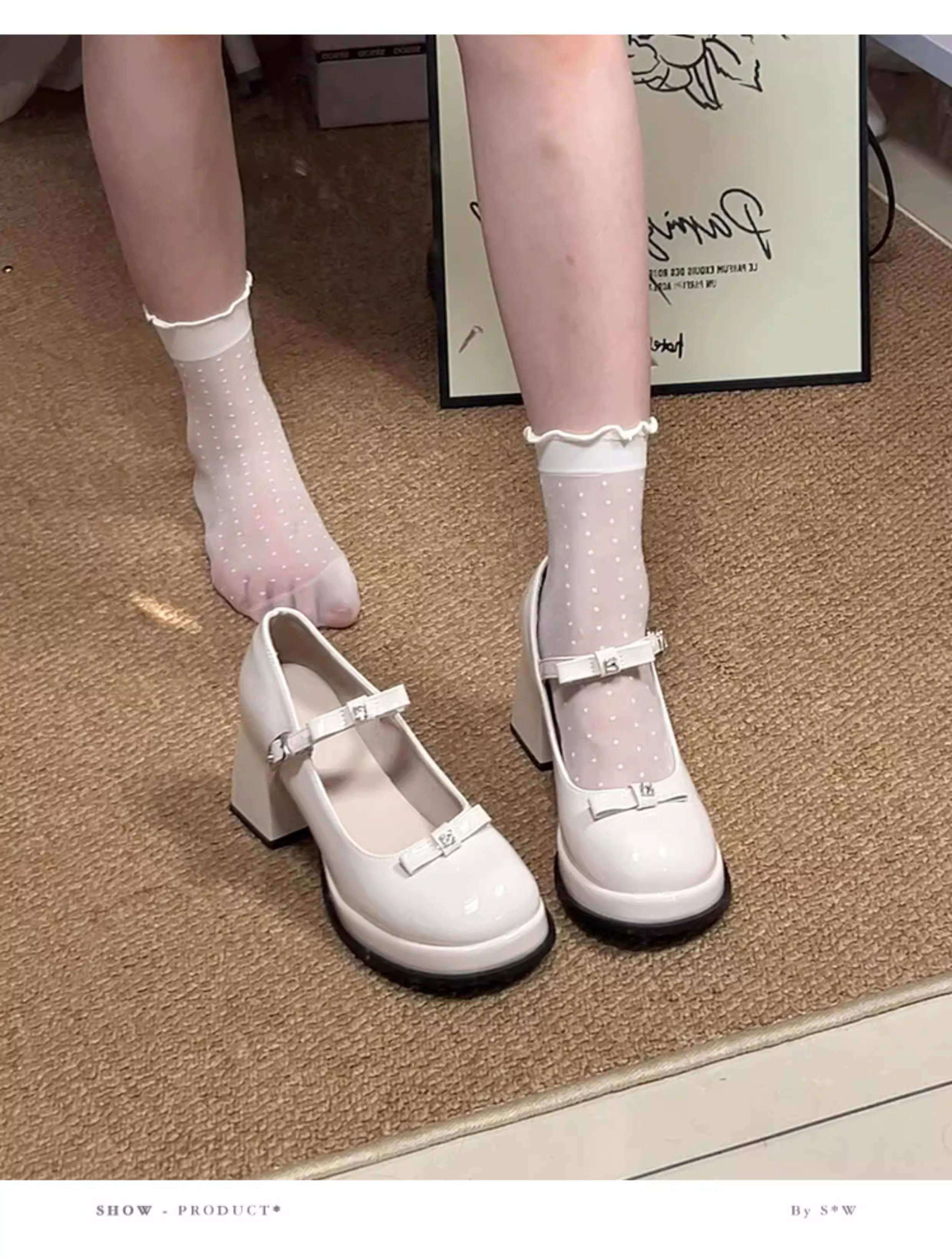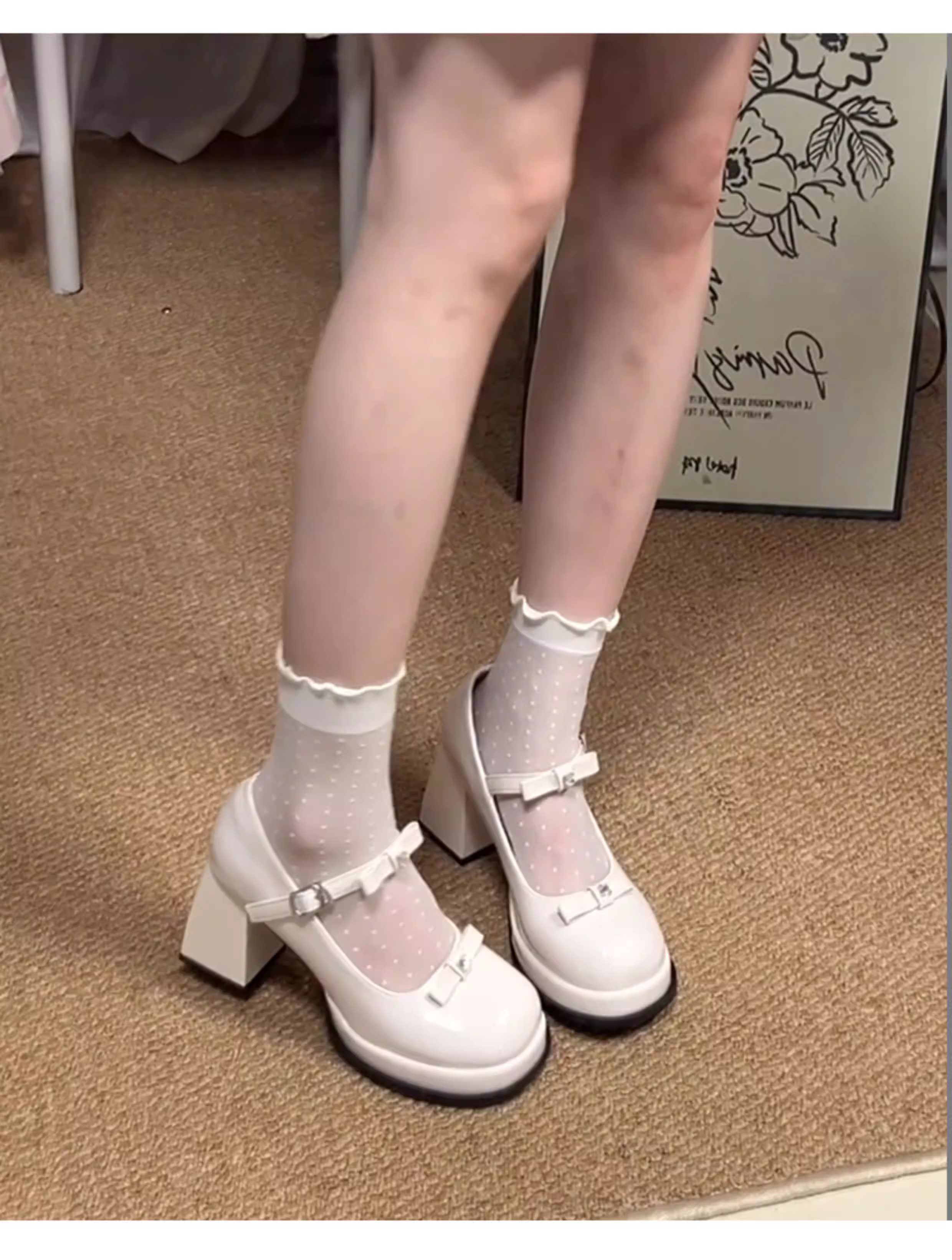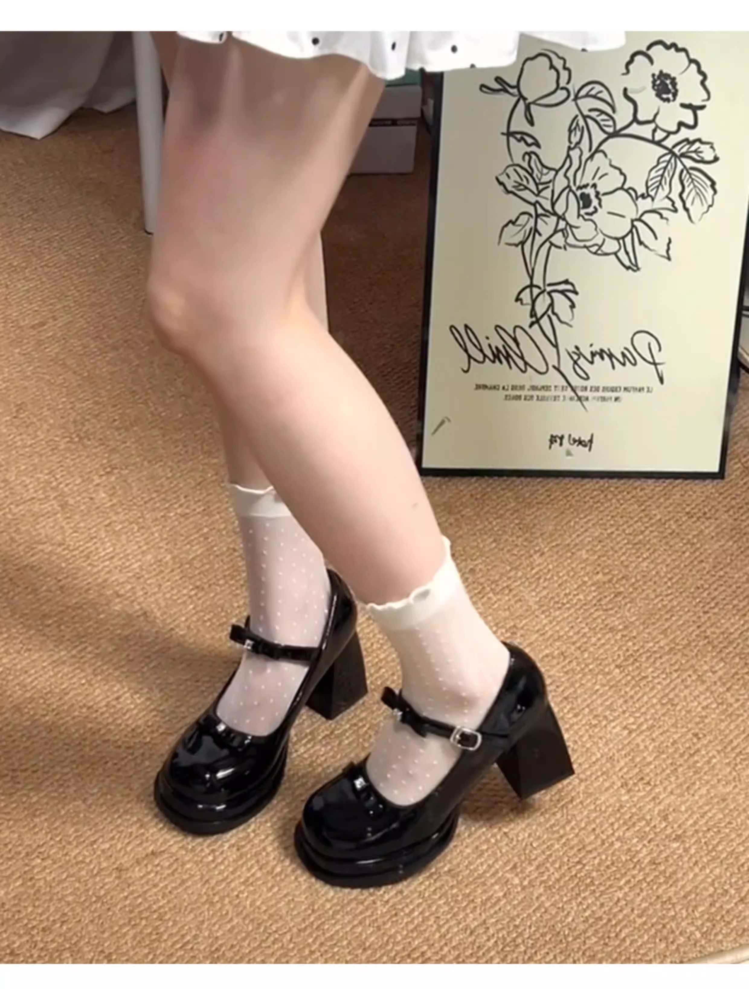 - Phiên bản da cừu ~ Giày đơn đế dày màu đỏ đế dày cỡ nhỏ dành cho nữ, giày Mary Jane cao gót có dây buộc kiểu Pháp