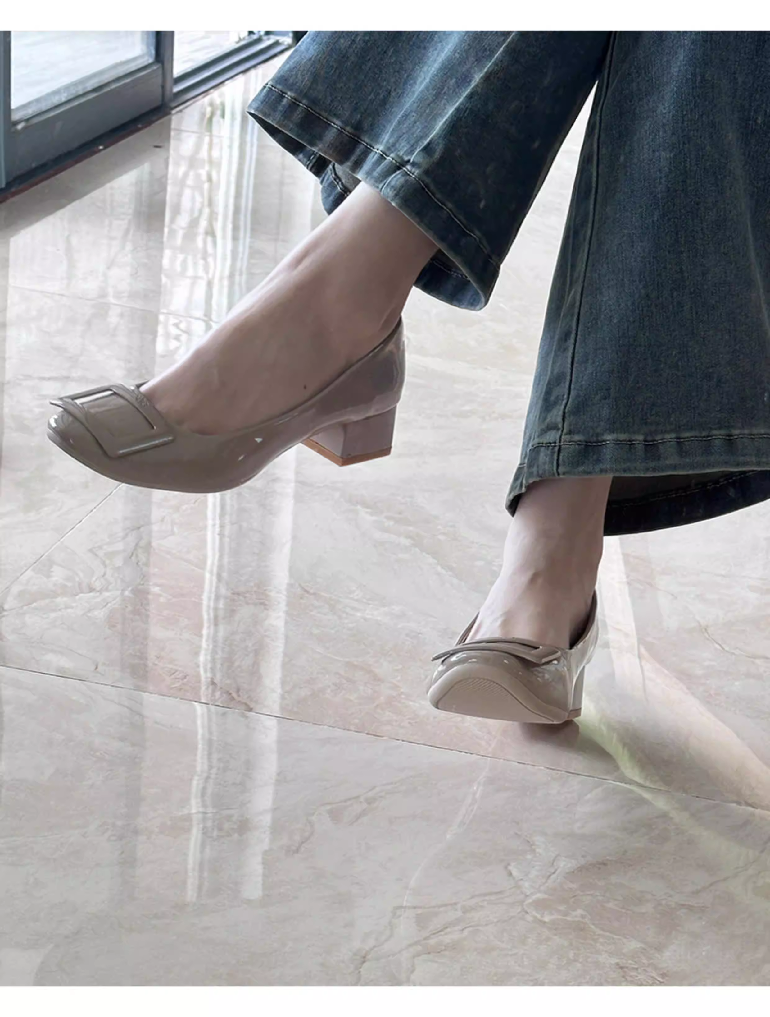 - Phiên bản da cừu ~ Giày đơn gót vuông mũi vuông dành cho nữ, phong cách dạ hội kiểu Pháp, thích hợp để phối với váy, giày đi làm mũi nông màu hồng nude dành cho nữ.