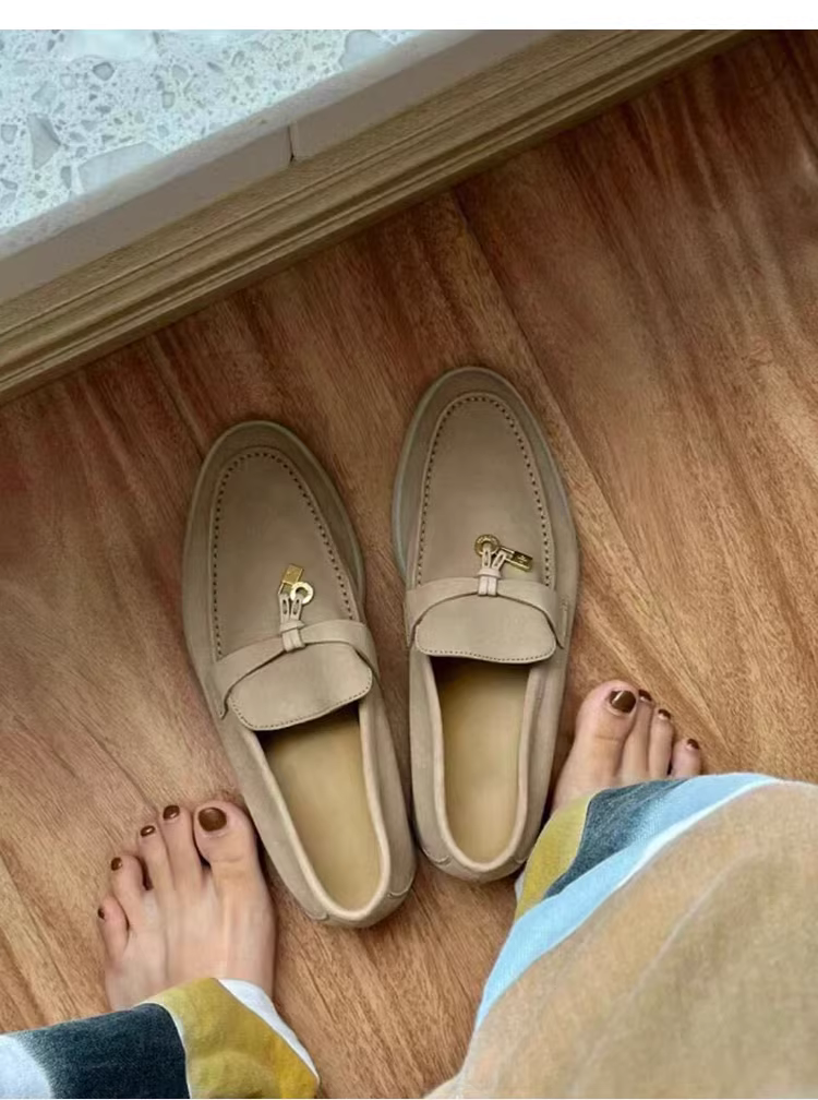 - Phiên bản da cừu ~ Giày lười có khóa cổ điển bằng da thật dành cho nữ, giày lười kiểu Anh, giày lười đa năng.