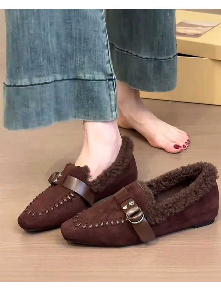 - Phiên bản da cừu ~ giày lười da lộn thiết kế khóa thắt lưng cổ điển dành cho nữ, giày cotton thời trang có độ cao tăng chiều cao bên trong kiểu dệt mới