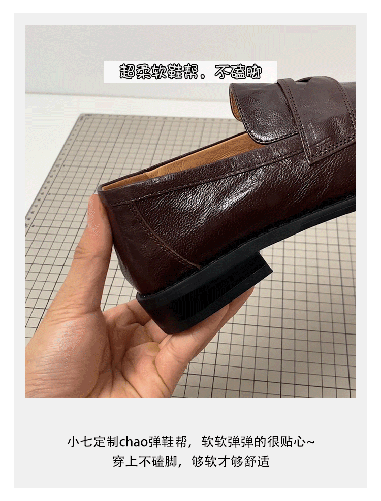 - Phiên bản da cừu ~ giày lười da thật cổ điển dành cho nữ, gót dày, giày đế bằng, giày da nhỏ kiểu Anh, giày lười