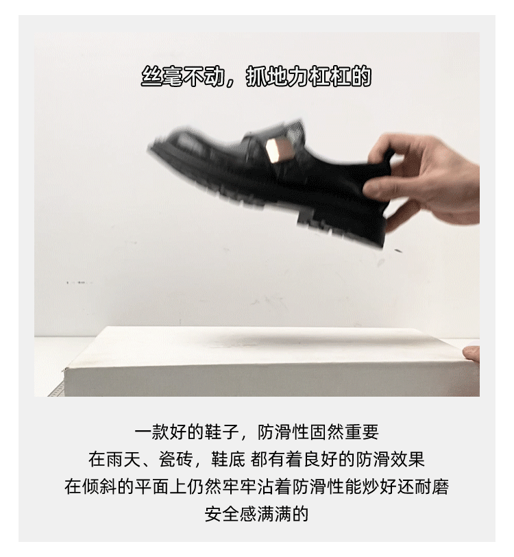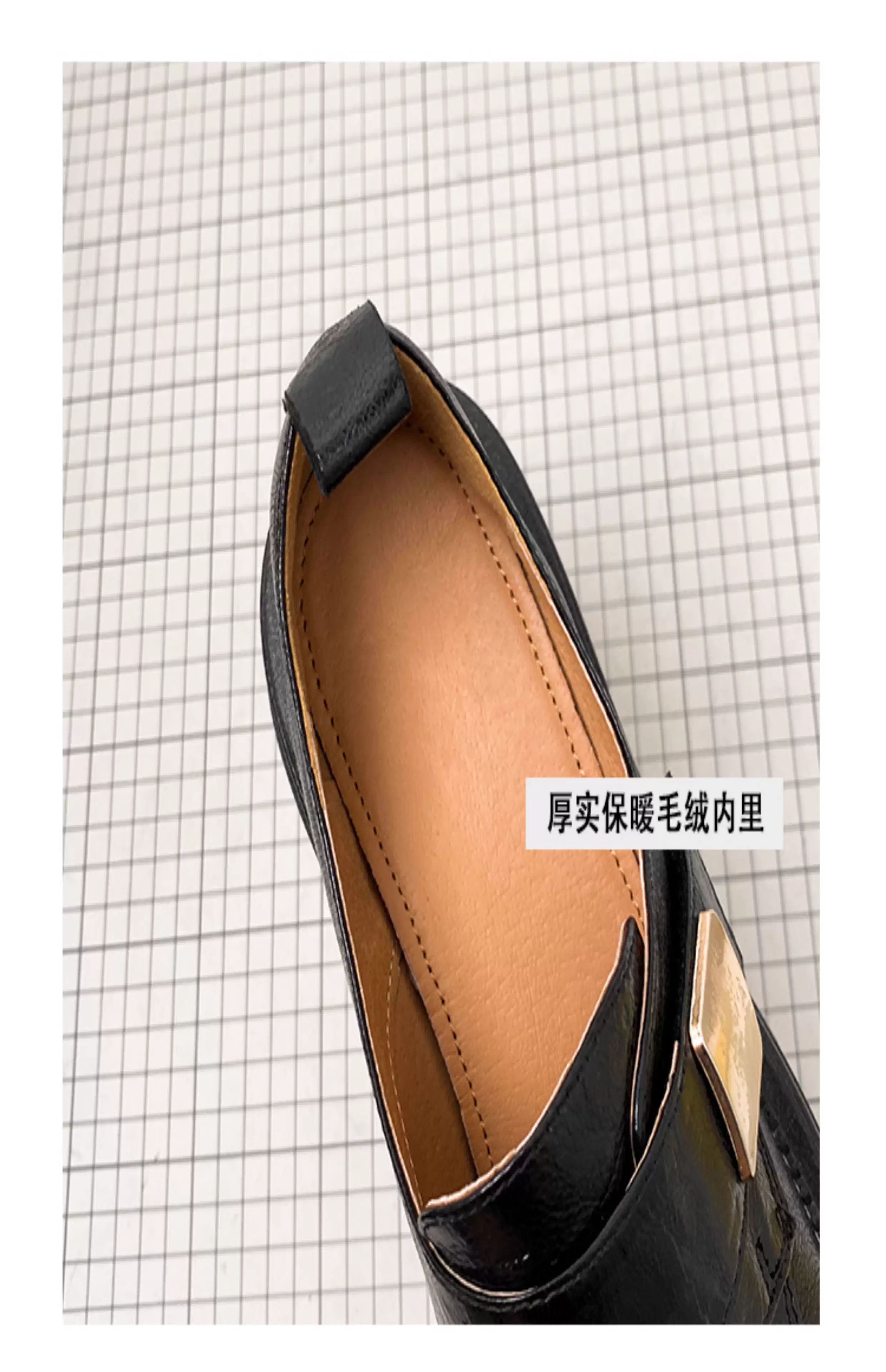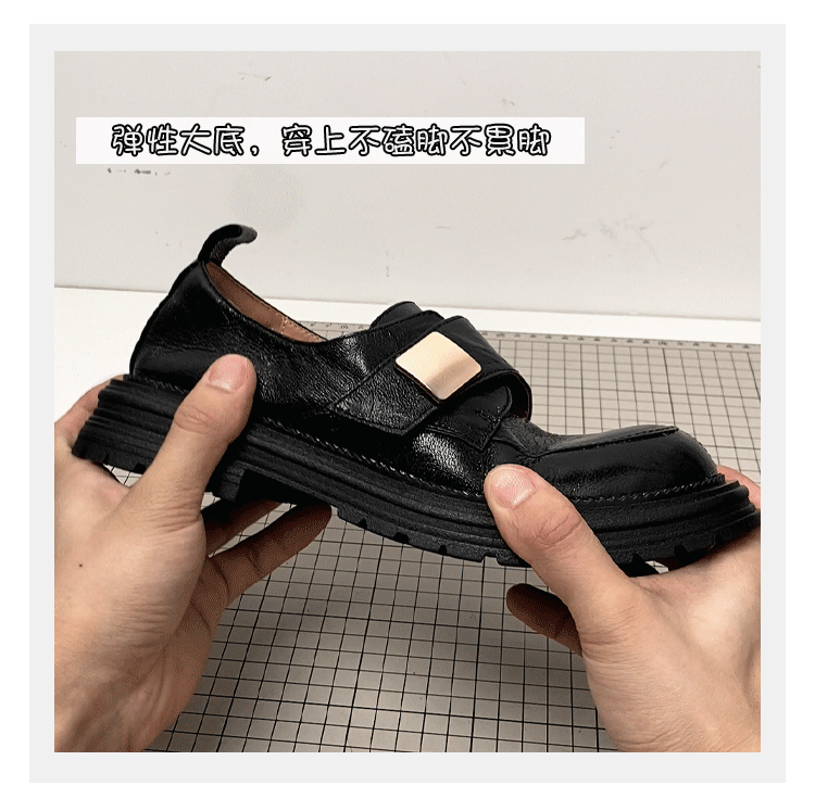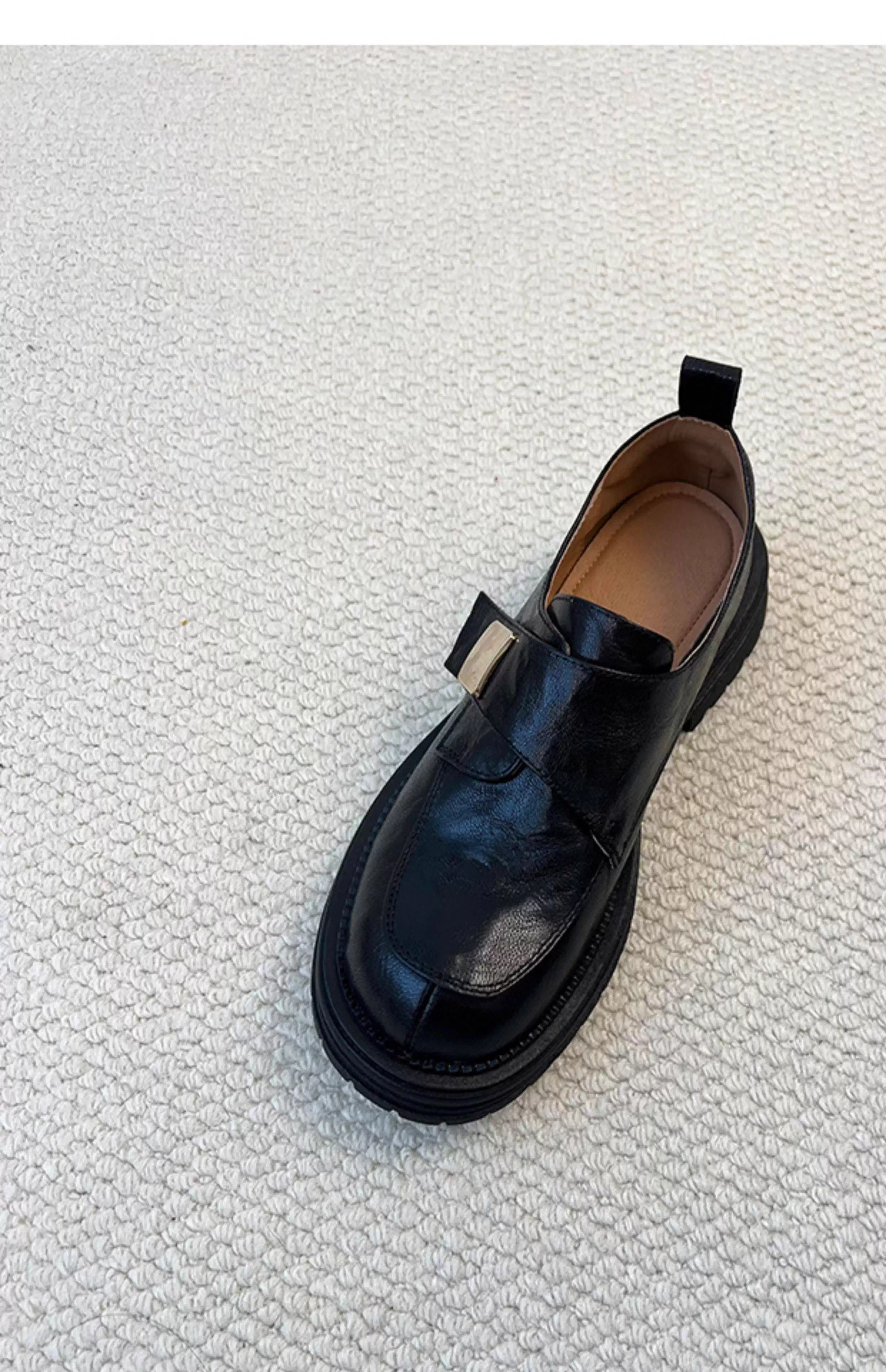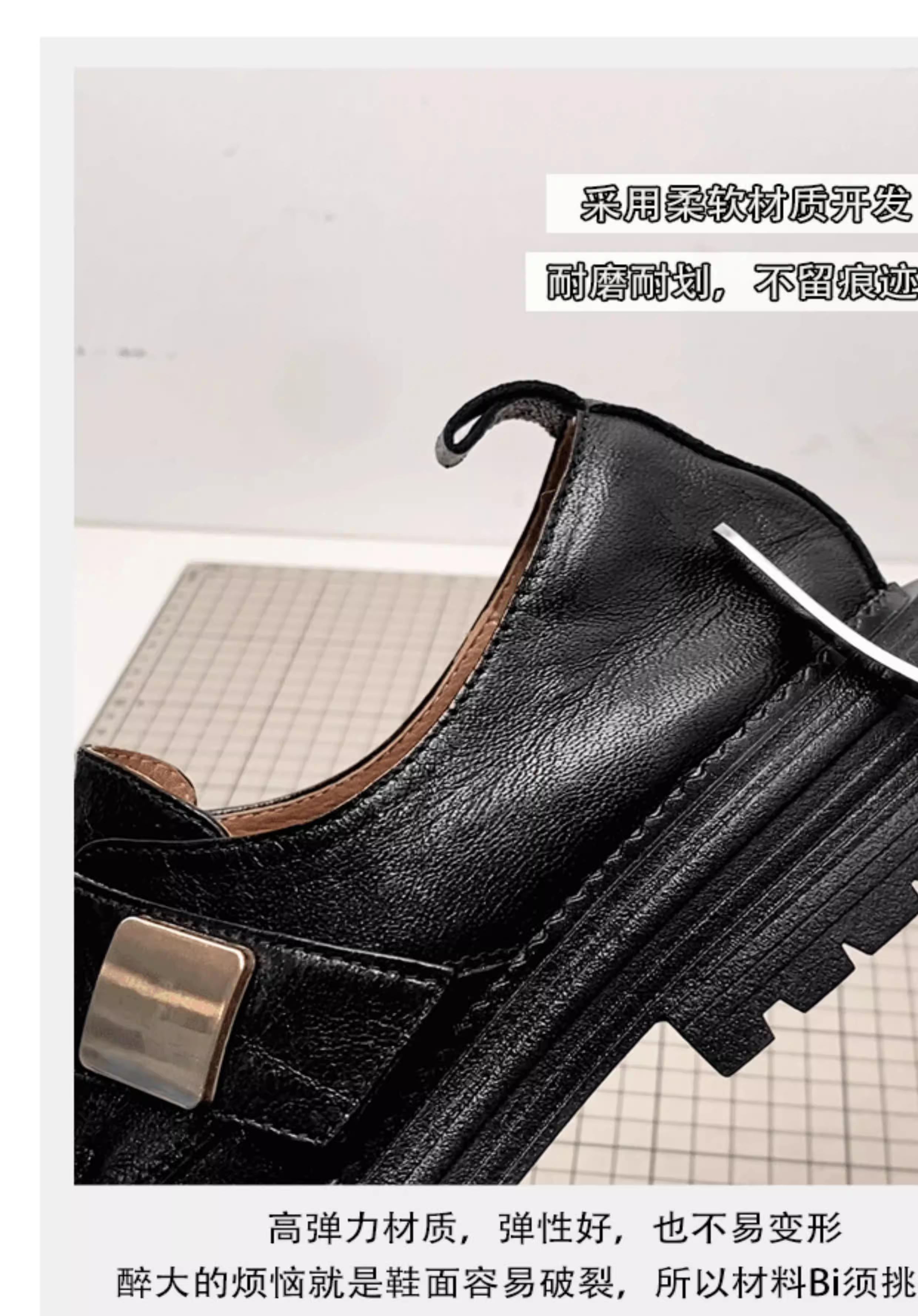 - Phiên bản da cừu ~ Giày lười da thật đế dày có khóa dán dành cho nữ, giày đơn cổ sâu gót dày kiểu Anh, giày da nhỏ màu đen JK.