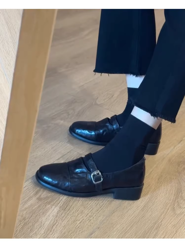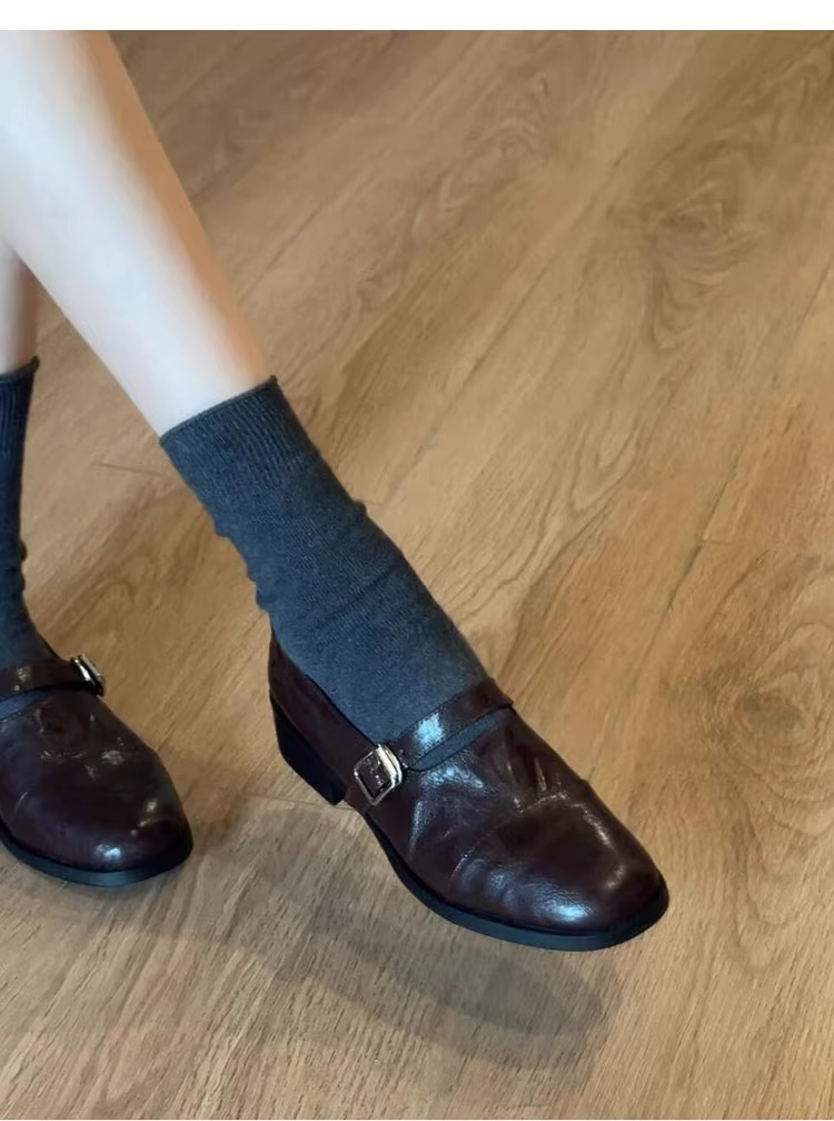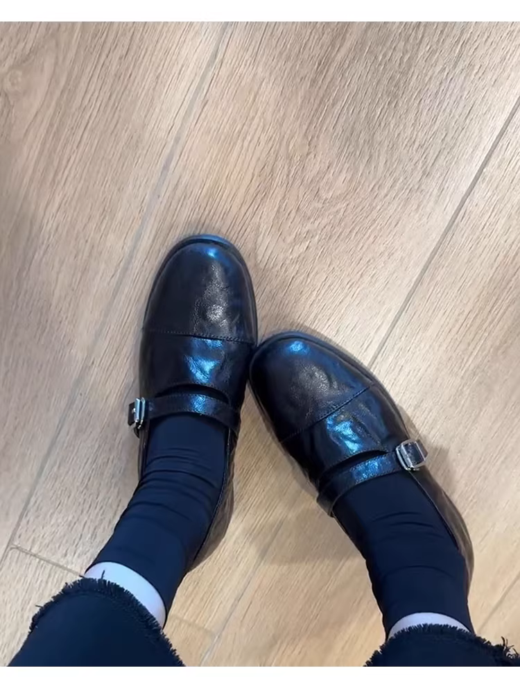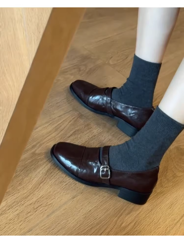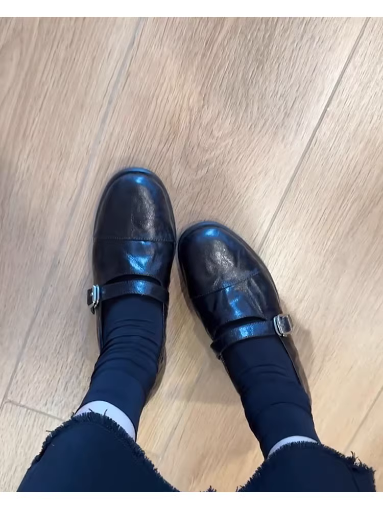 - Phiên bản da cừu ~ Giày lười da thật kiểu cổ điển dành cho nữ, mùa thu đông, giày da nhỏ đa năng có gót thấp để đi làm