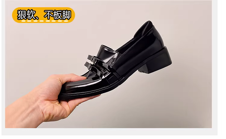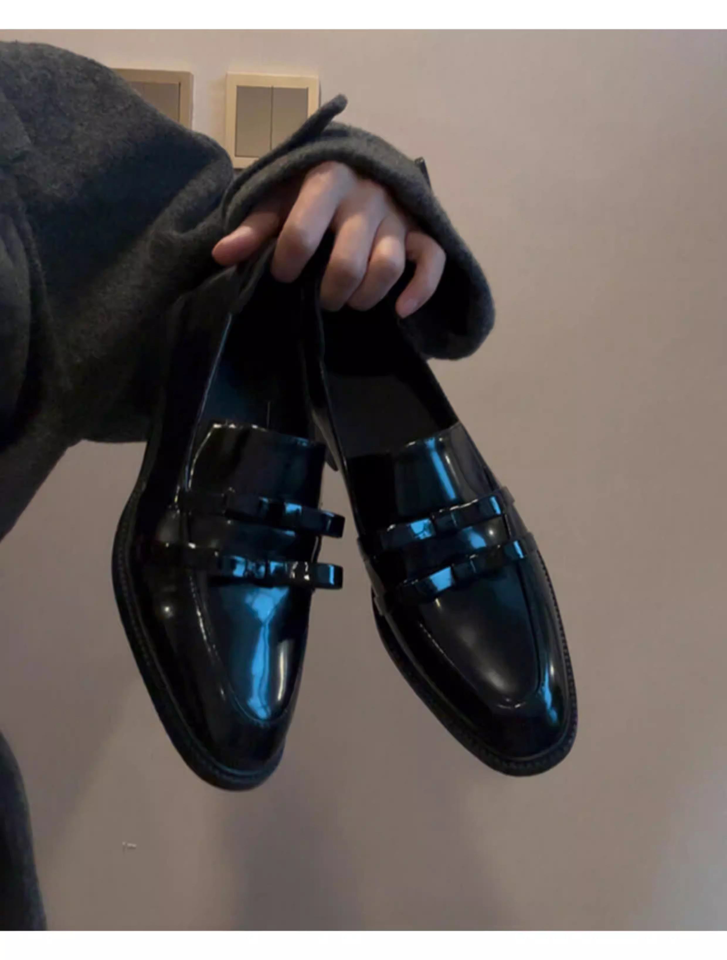 - Phiên bản da cừu ~ Giày lười da thật phong cách Anh cho nữ, giày đi làm kiểu lười, giày da nhỏ có gót thô kiểu nơ kiểu Pháp