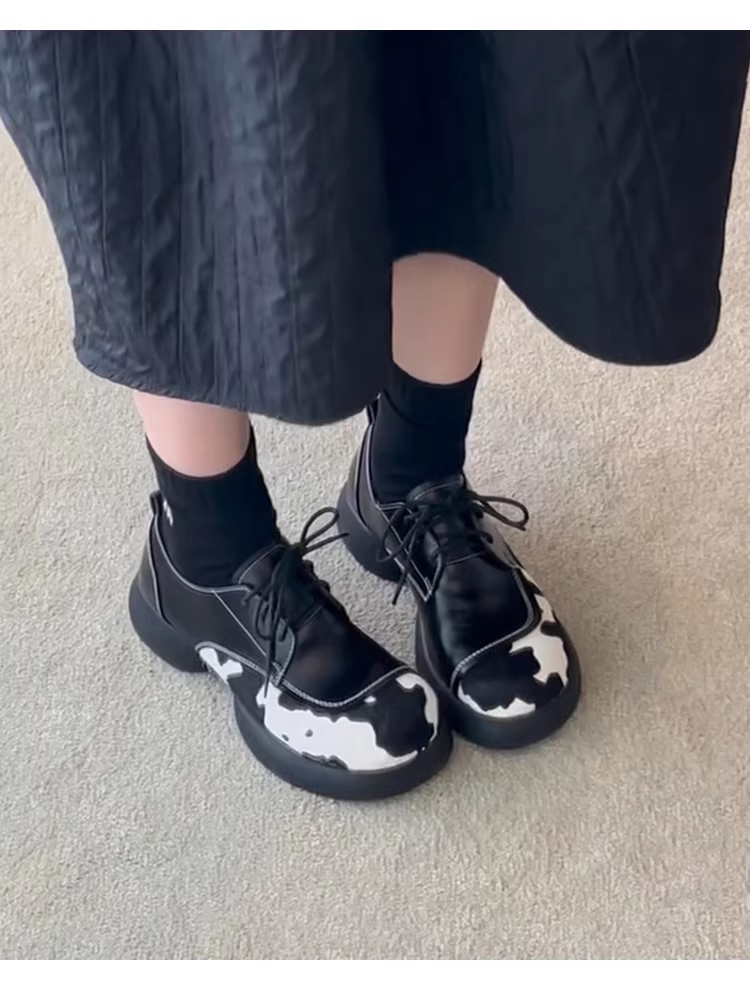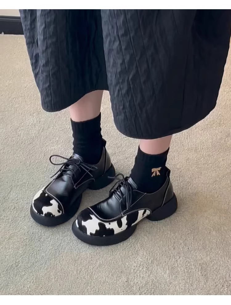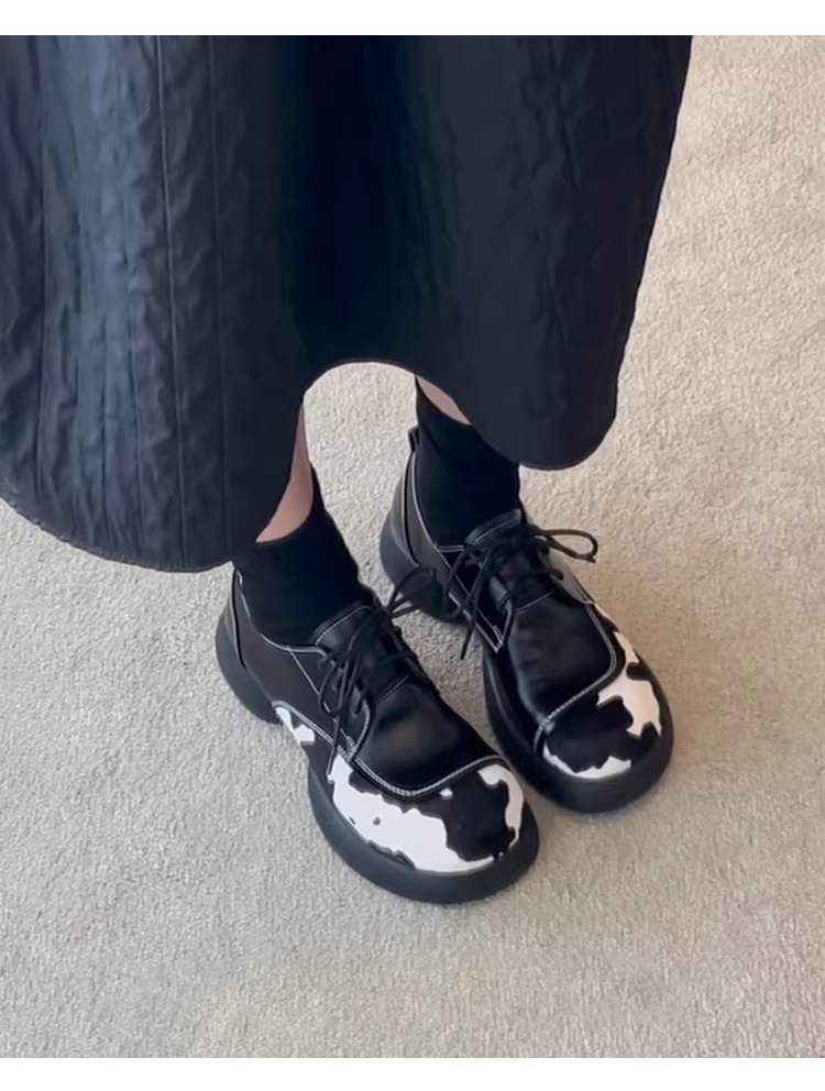 Phiên bản da cừu ~ Giày lười đế dày bằng da thật dành cho nữ, giày đế dày có dây buộc, giày đế dày có thiết kế độc đáo, giày da nhỏ.