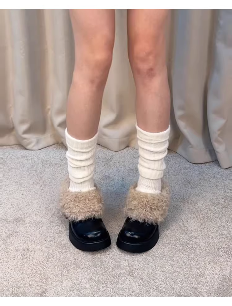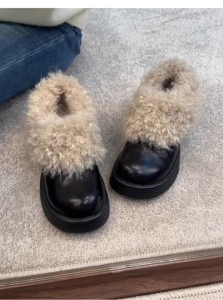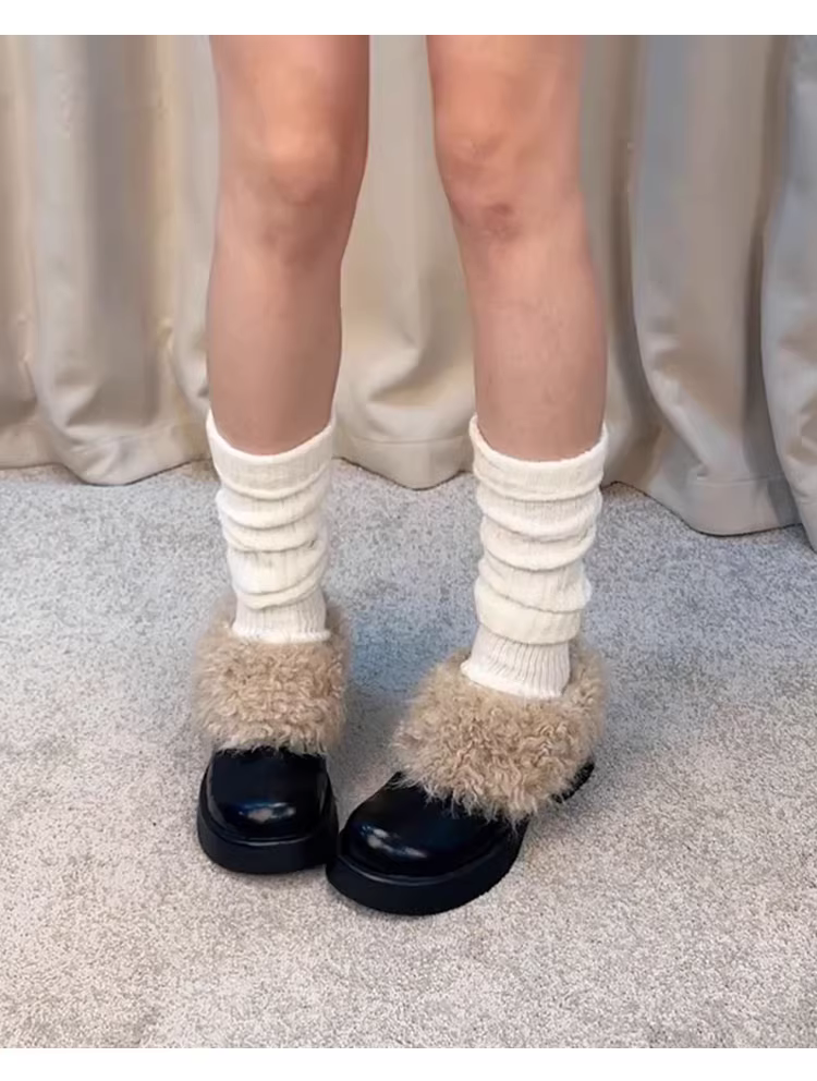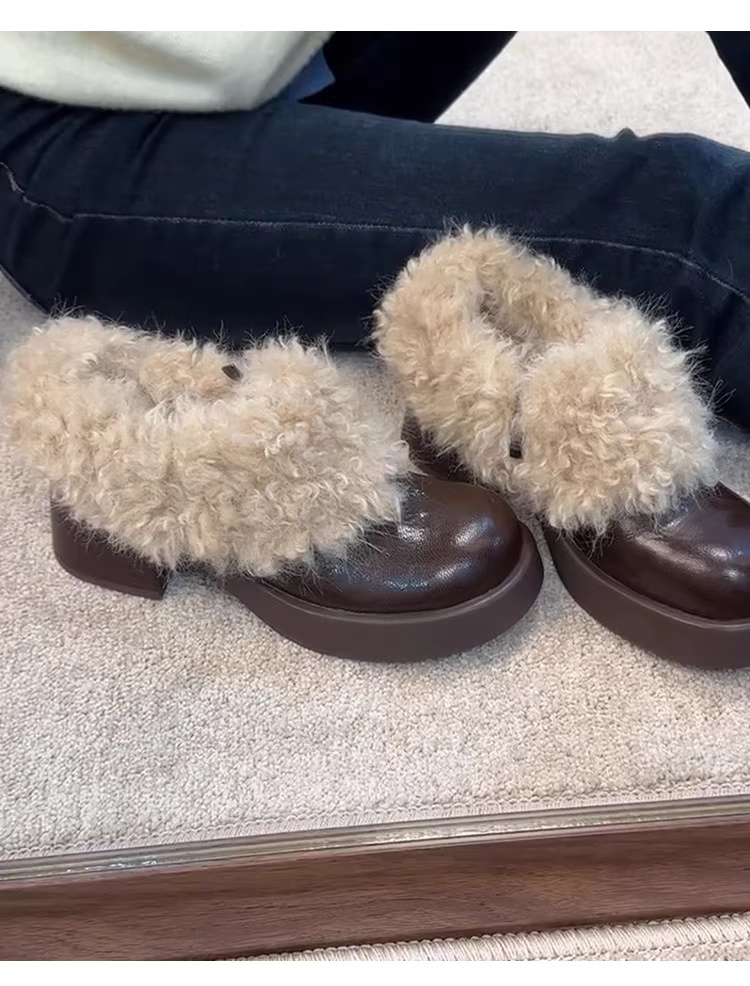 - Phiên bản da cừu ~ Giày lười đế dày lông thú thời trang dành cho phụ nữ nhỏ nhắn, giày lười đa năng kiểu cổ điển bằng da thật đơn giản