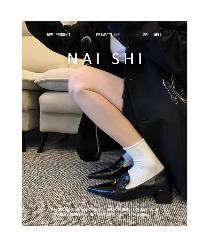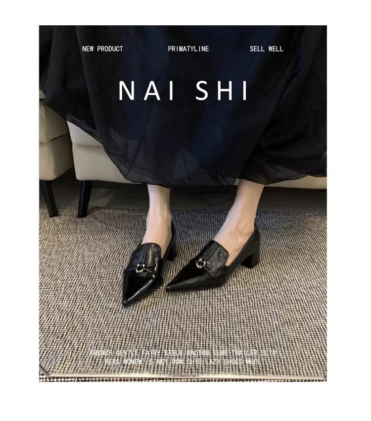 - Phiên bản da cừu! Giày lười mũi nhọn thời trang cổ điển dành cho nữ, giày da nhỏ có khóa kim loại cao cấp, giày đế dày màu đen.