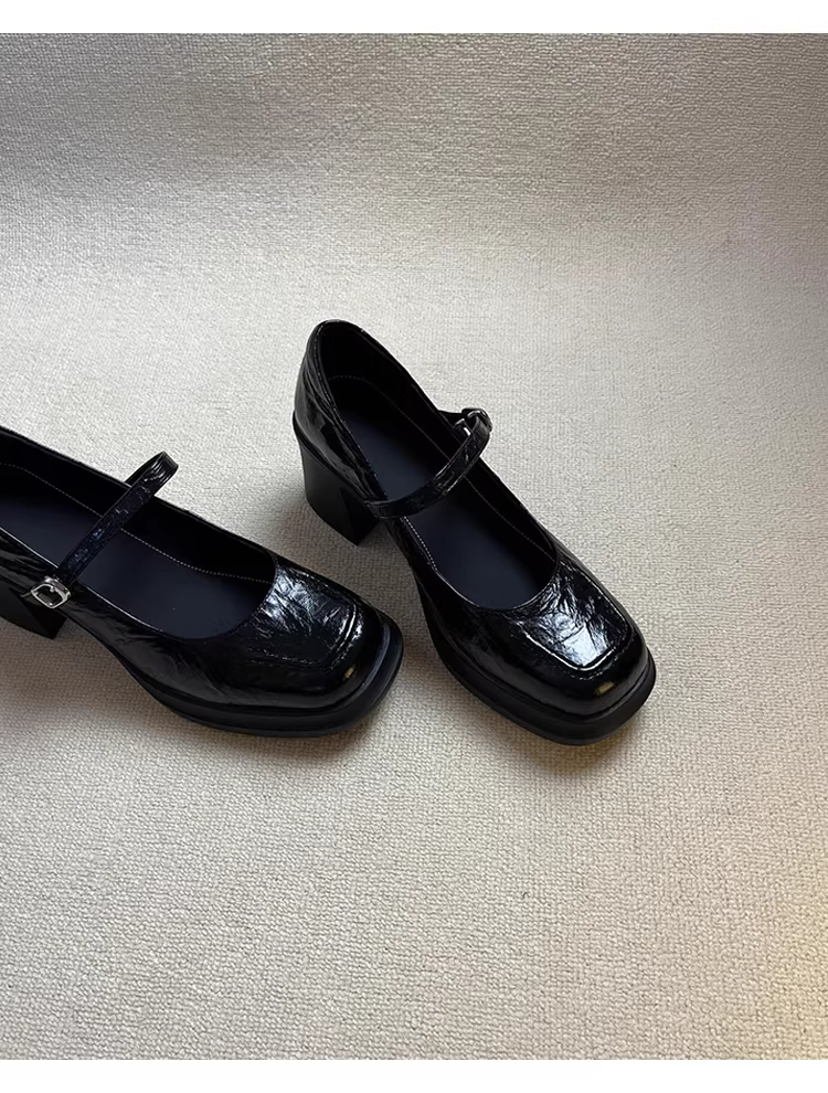 - Phiên bản da cừu ~ Giày Mary Jane cao gót da thật mới dành cho nữ, mũi vuông nông mũi nhọn, giày đi làm êm ái