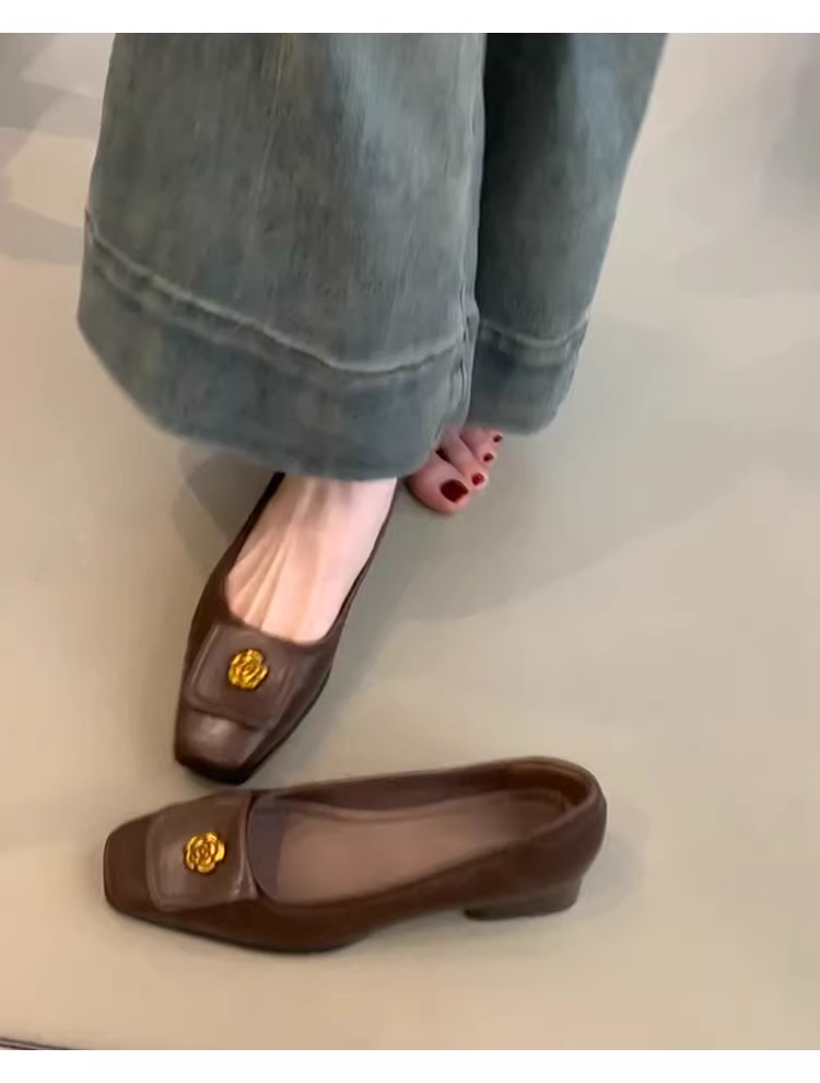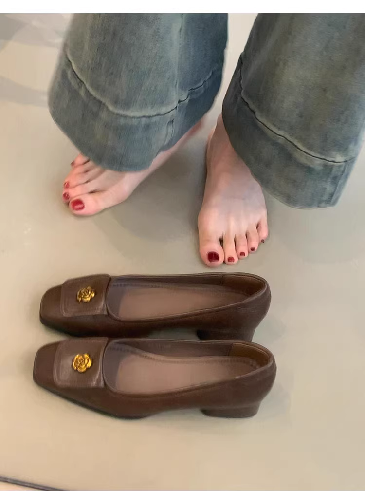 Phiên bản da cừu ~ Giày Mary Jane kiểu dáng đơn giản, kiểu dáng cổ điển, mũi vuông, chất liệu da, gót dày dành cho nữ