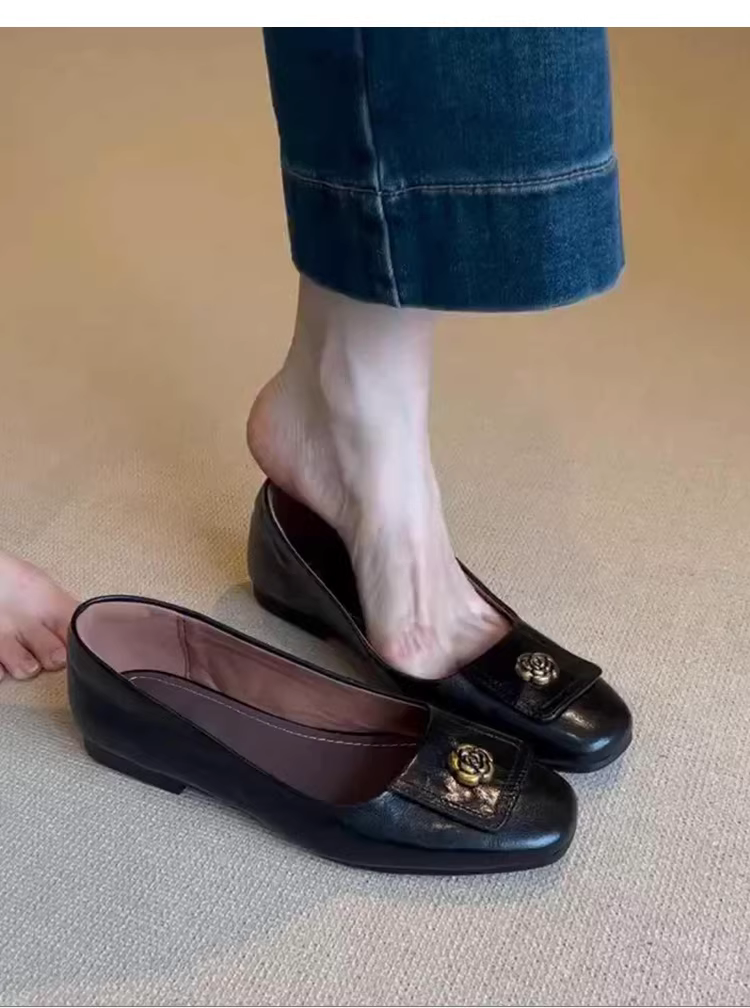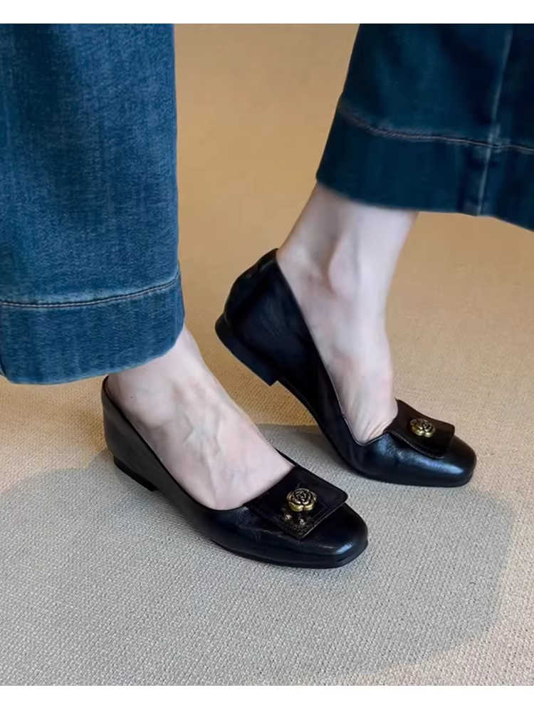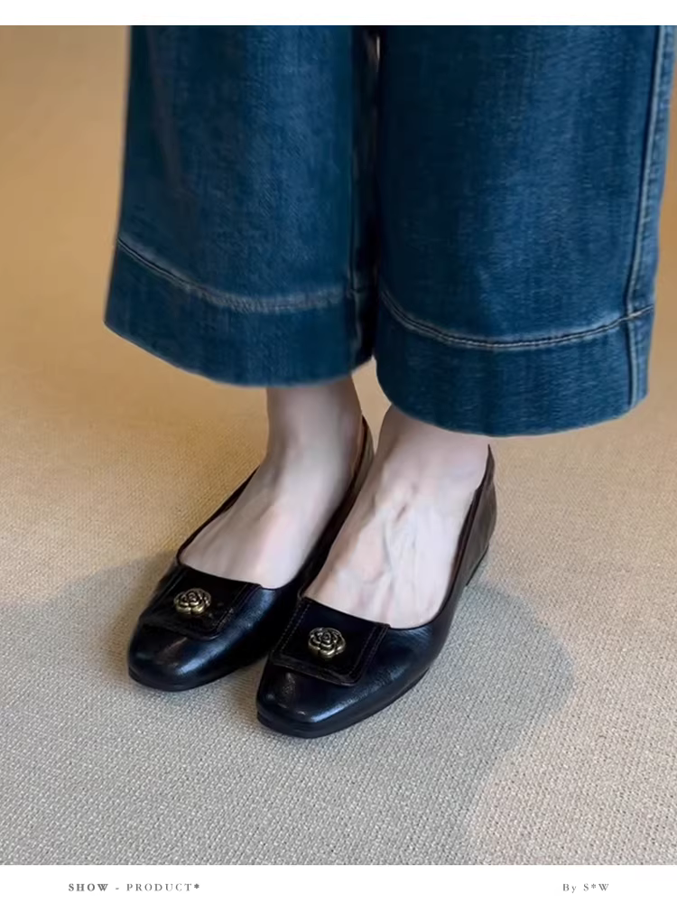 - Phiên bản da cừu ~ Giày Mary Jane kiểu dáng đơn giản kiểu Pháp cổ điển dành cho nữ, giày đế bằng da thật nông