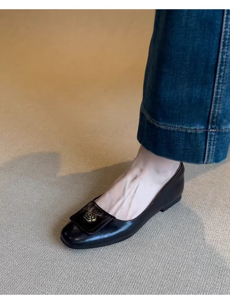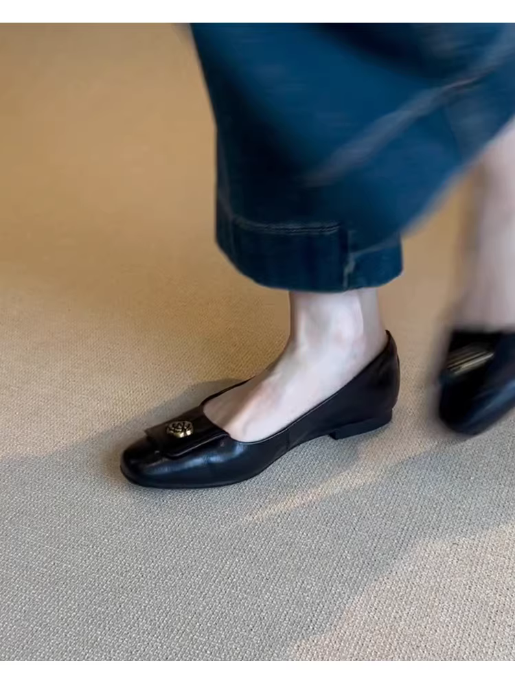 Phiên bản da cừu ~ Giày Mary Jane kiểu dáng đơn giản kiểu Pháp cổ điển dành cho nữ, giày đế bằng da thật nông
