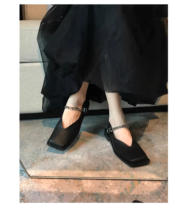 - Phiên bản da cừu! Giày Mary Jane mũi vuông dành cho nữ, thiết kế độc đáo, kiểu dáng giày bệt kiểu Pháp, giày quai ngang kiểu bà ngoại với gót dày.