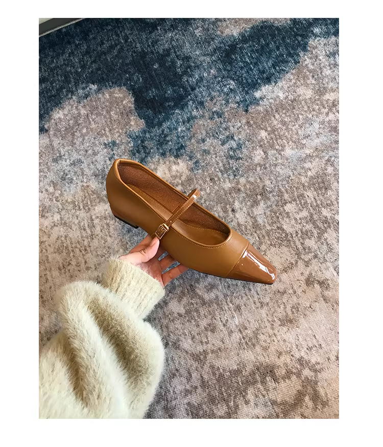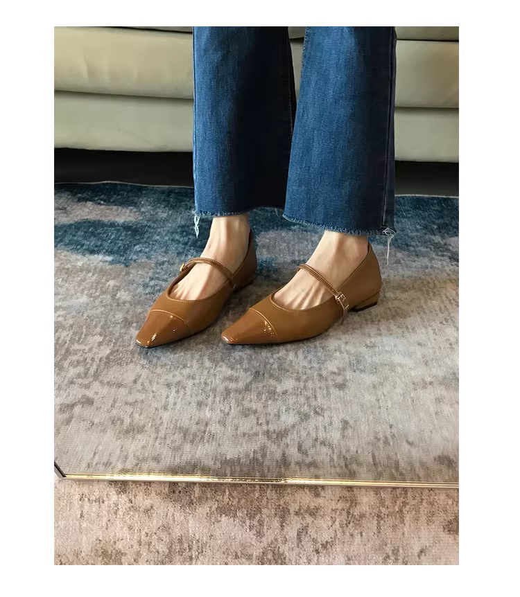 - Phiên bản da cừu! Giày Mary Jane mũi vuông nhỏ kiểu Pháp thanh lịch dành cho nữ, đế bằng có một dây đeo, giày đế thấp nhẹ nhàng.