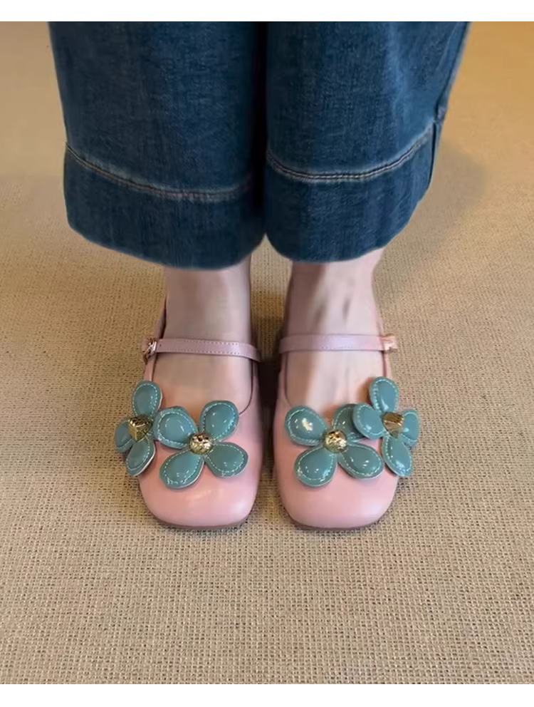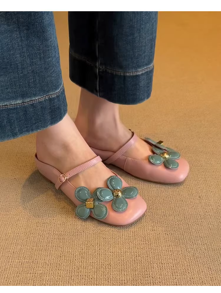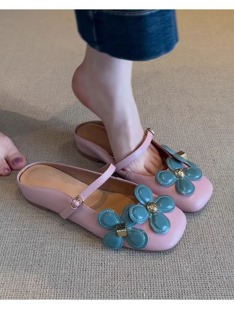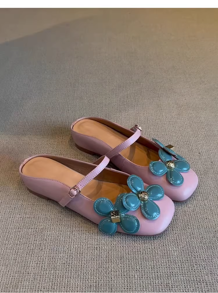 - Phiên bản da cừu ~ Giày mũi kín có khóa hoa phối màu theo phong cách mới dành cho nữ với độ tăng chiều cao ẩn, da thật kiểu Pháp ngọt ngào nửa dép