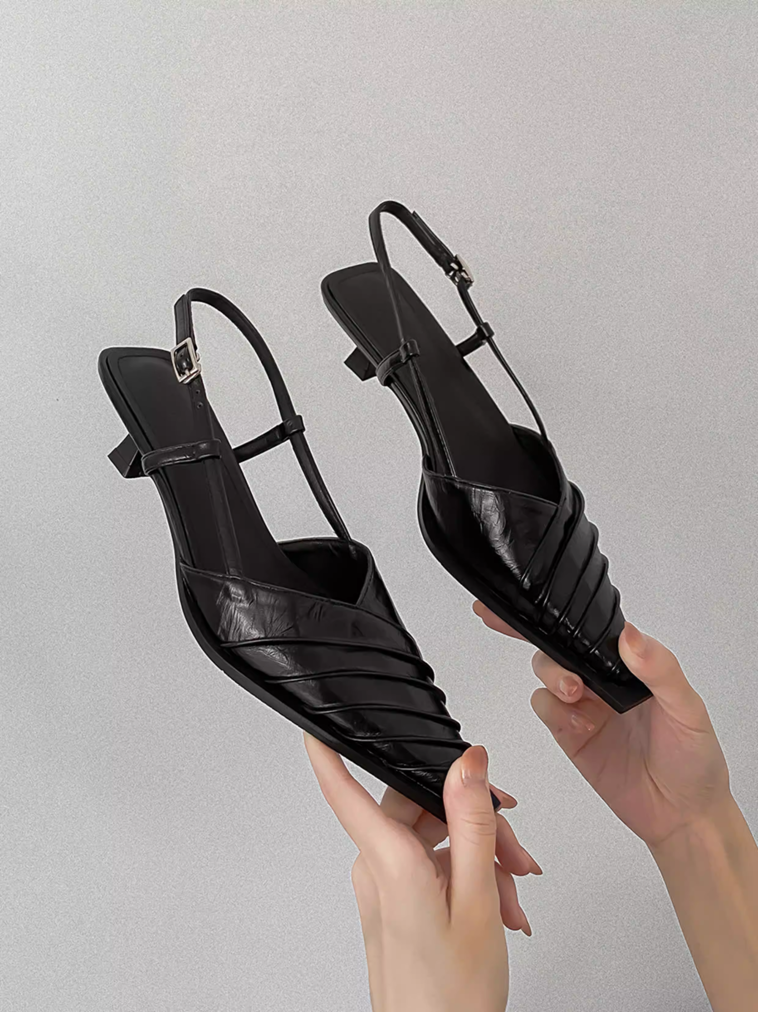 - Phiên bản da cừu ~ Giày mũi nhọn có gót nhọn bằng da thật được làm thủ công bằng da thật dành cho nữ, mặc ngoài trời vào mùa hè, dép nửa gót hở lưng có gót thấp