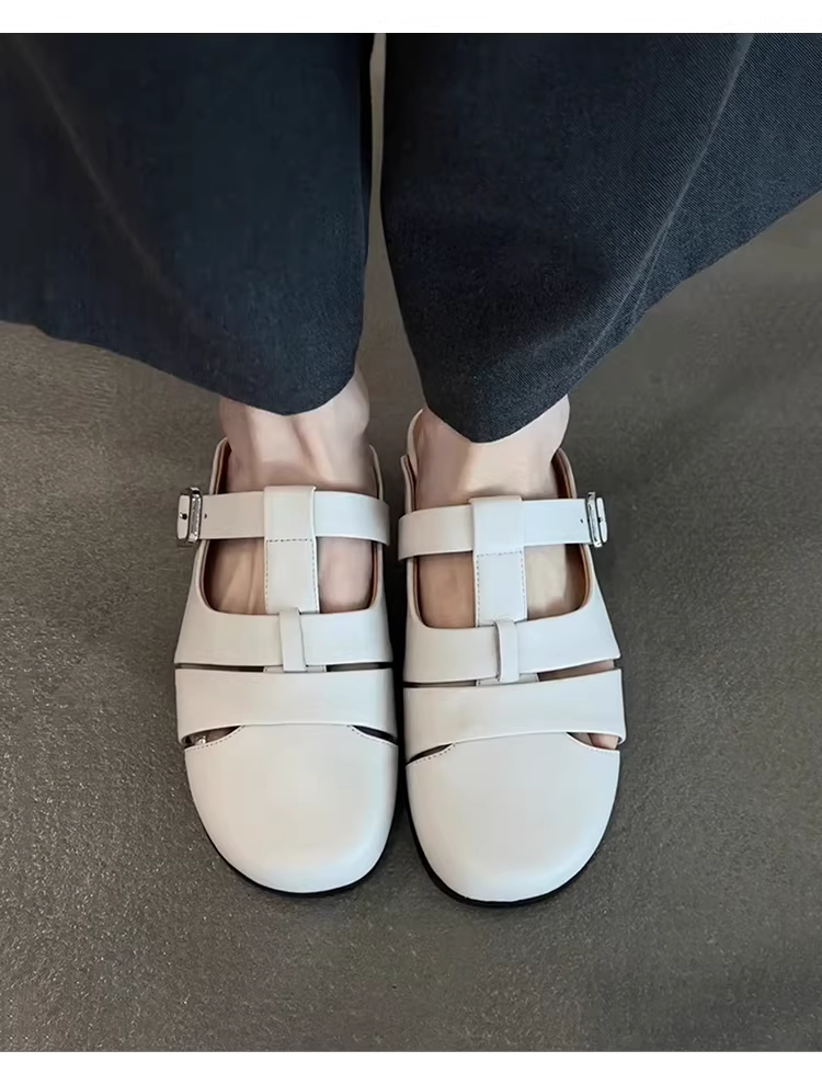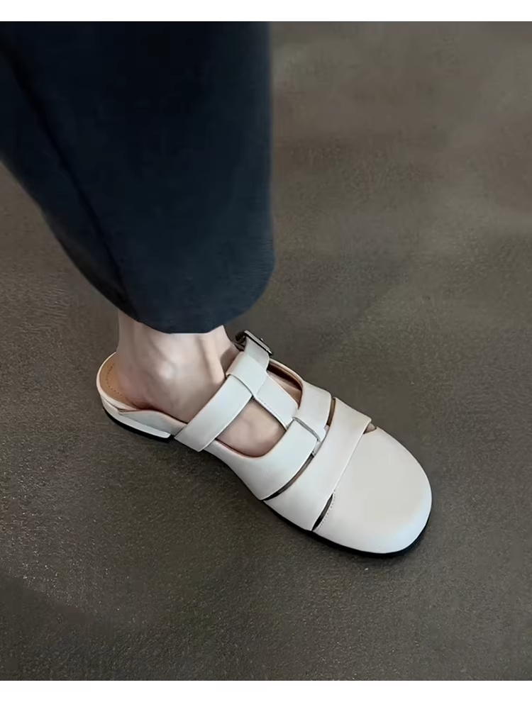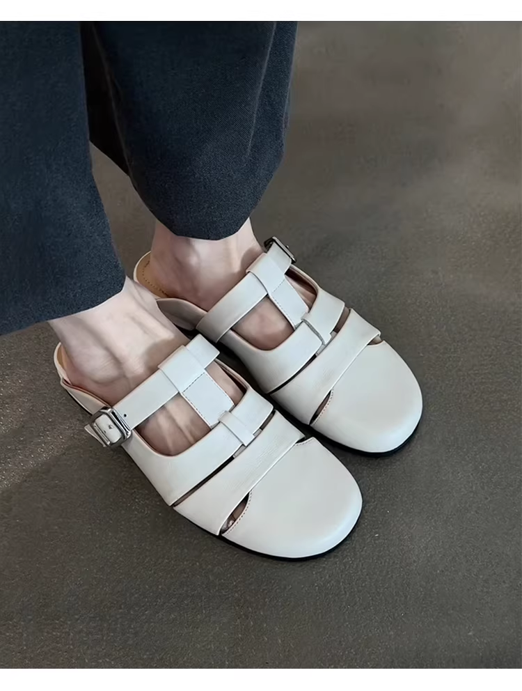 - Phiên bản da cừu ~ Giày mules mũi kín bằng da thật thoáng khí, đế thấp kiểu Pháp dành cho nữ, đa năng cho mùa hè, thoải mái khi đi làm, dép mát.