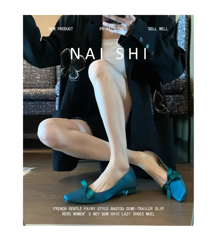 - Phiên bản da cừu! Giày nữ satin mũi vuông, miệng nông có nơ, giày dạ hội, kiểu dáng nhẹ nhàng phối chân váy, giày Mary Jane gót thấp.