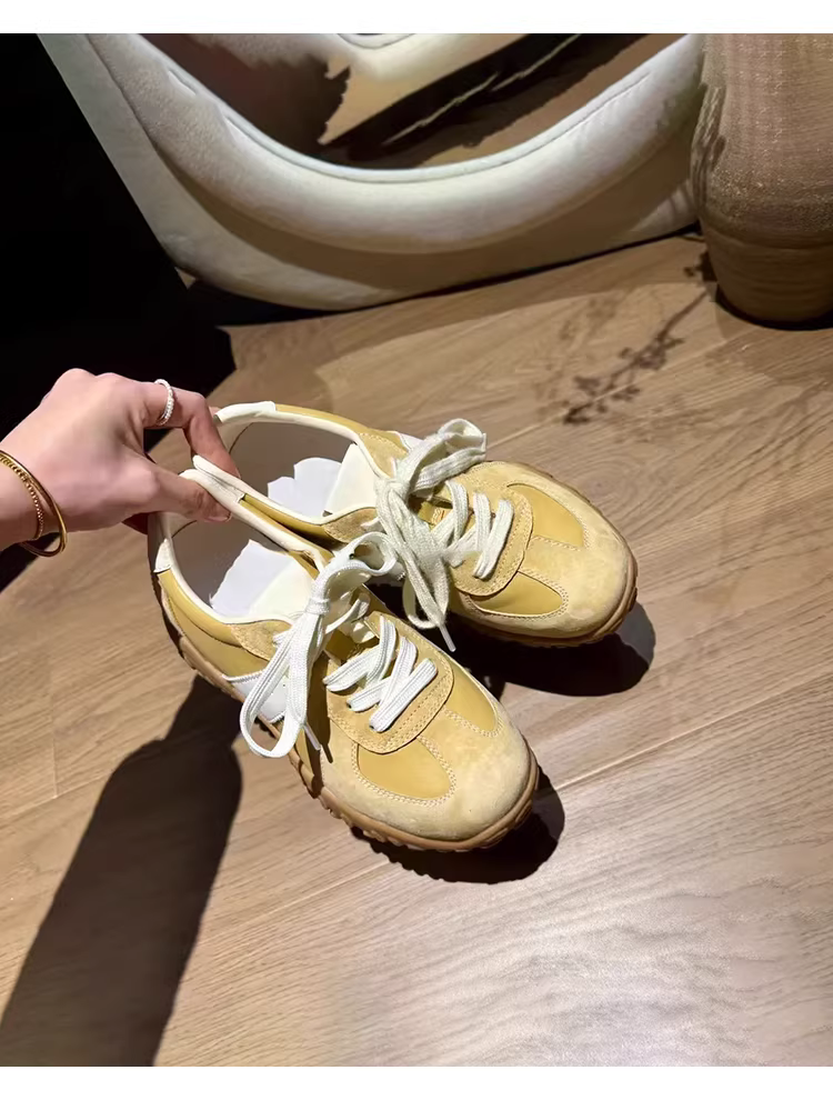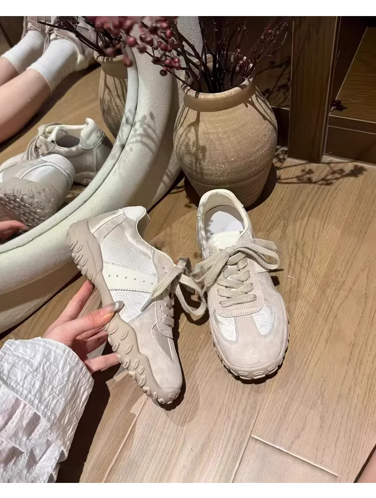 Phiên bản da cừu ~ Giày tập luyện Đức tăng chiều cao kiểu mới dành cho phụ nữ nhỏ nhắn, giày thể thao thông thường có dây buộc đa năng, giày bố đế dày.