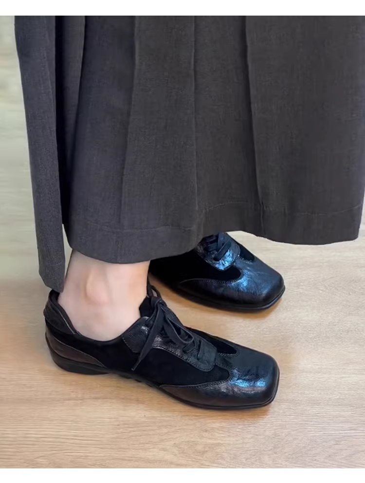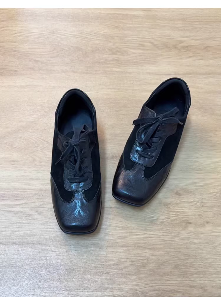 Phiên bản da cừu ~ Giày thể thao buộc dây miệng sâu bằng da thật mới, giày buộc dây mũi vuông phong cách cổ điển mùa xuân và mùa thu