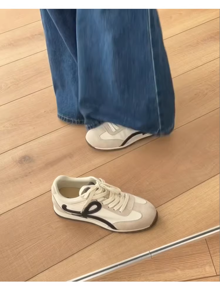 - Phiên bản da cừu ~ Giày thể thao cổ điển kiểu Forrest Gump dành cho nữ, giày tập luyện Đức đế dày bằng da thật có dây buộc đa năng, giày đế bằng mũi tròn, giày thường ngày