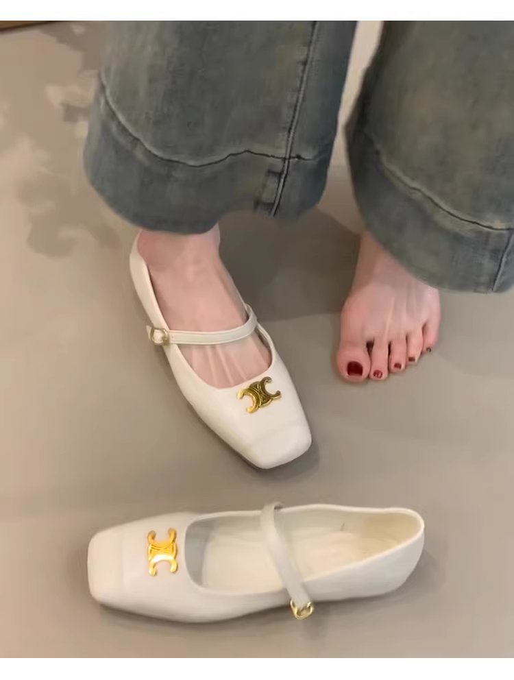 - Phiên bản da cừu ~ phong cách buổi tối cổ điển giày đế bằng da thật mũi vuông quai đơn đa năng kiểu Mary Jane