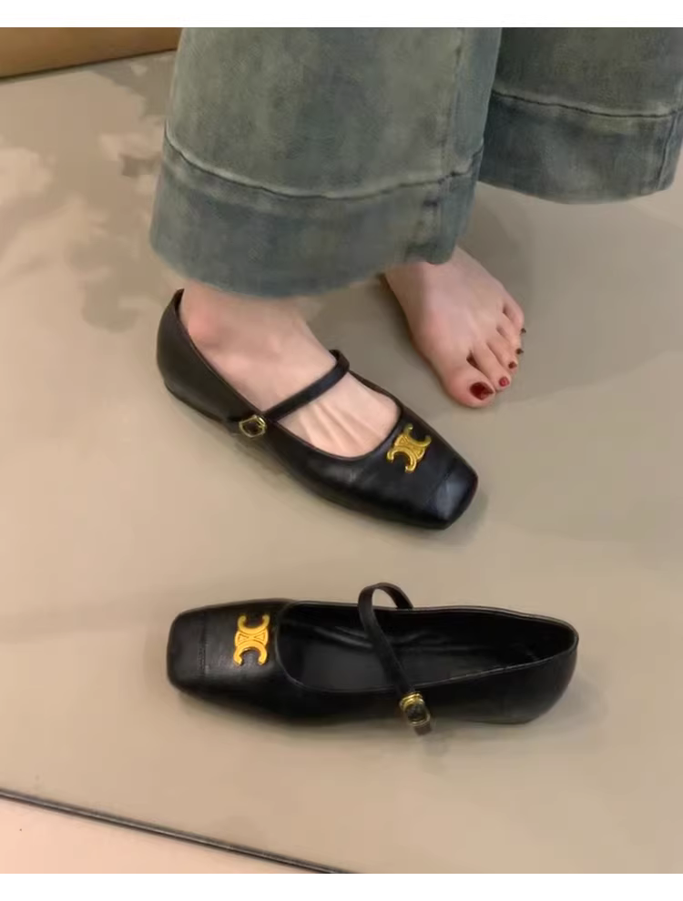 Phiên bản da cừu ~ phong cách buổi tối cổ điển giày đế bằng da thật mũi vuông quai đơn đa năng kiểu Mary Jane