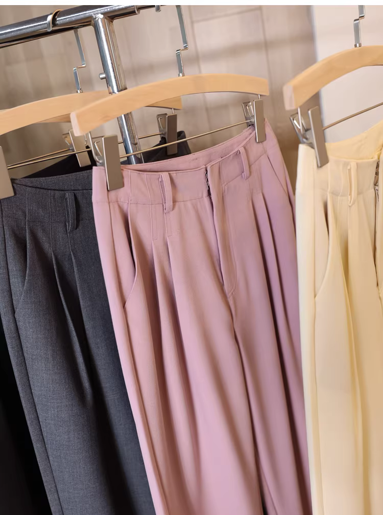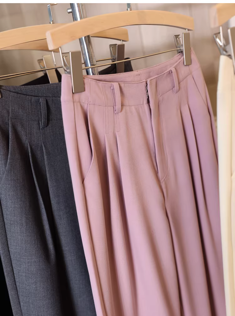 - Phong cách nơi làm việc cao cấp ~ quần ống rộng dáng thẳng, cạp cao, suôn mềm, không nhăn, tôn dáng cho nữ, quần âu mỏng cho mùa xuân hè.