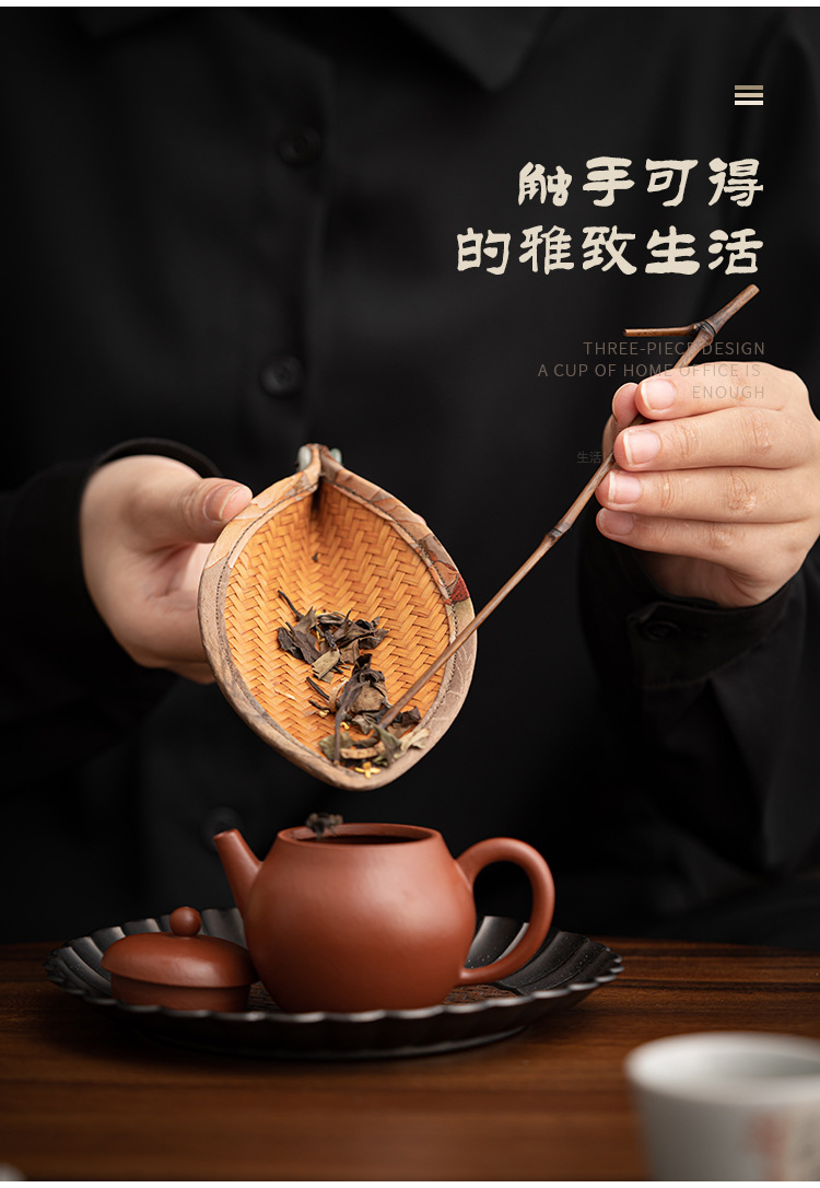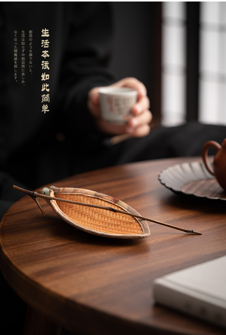 Phong cách Trung Quốc đan tre, satin, sơn mài lớn, mây, khăn lau, lá, trà, trà, trà sen, trà tre, trà sen, phụ kiện muỗng cà phê