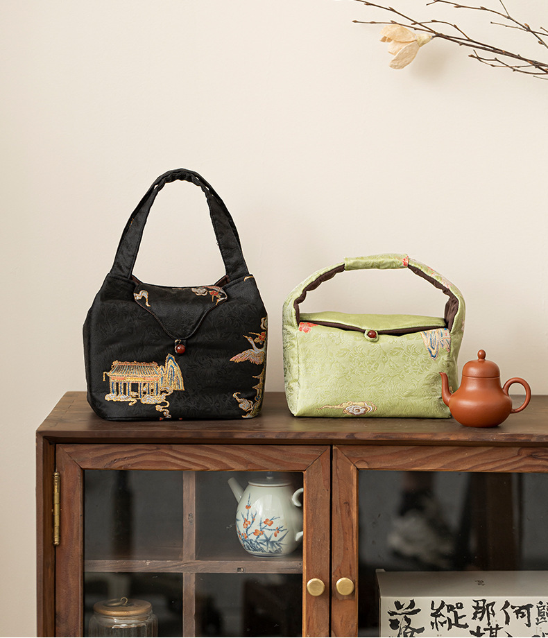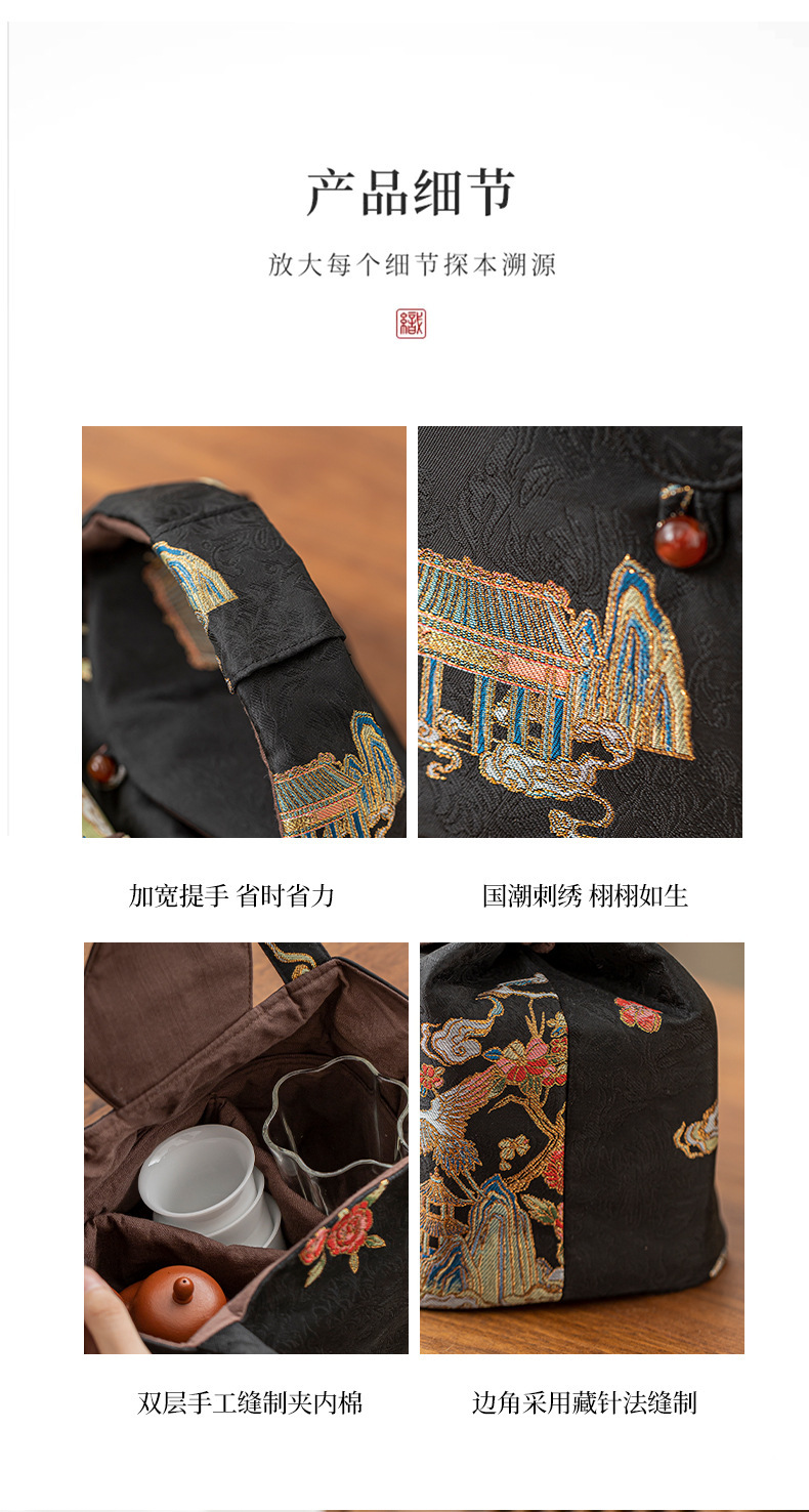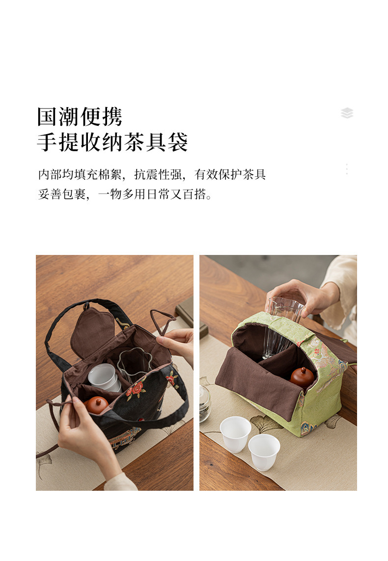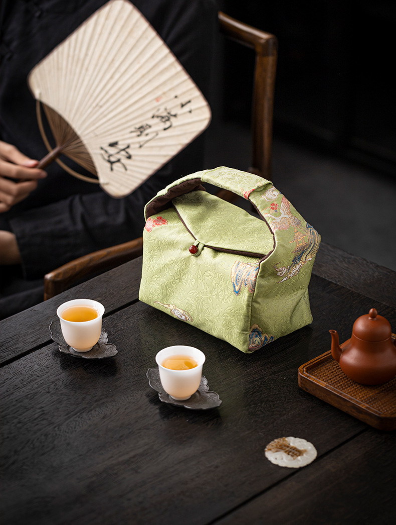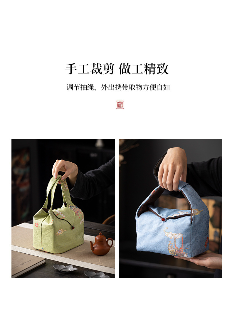 - Phong cách Trung Quốc dày cotton Xiangyun lụa Ruyi túi trà satchel du lịch di động bộ trà túi mỹ phẩm có ngăn túi vải