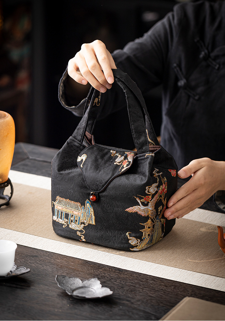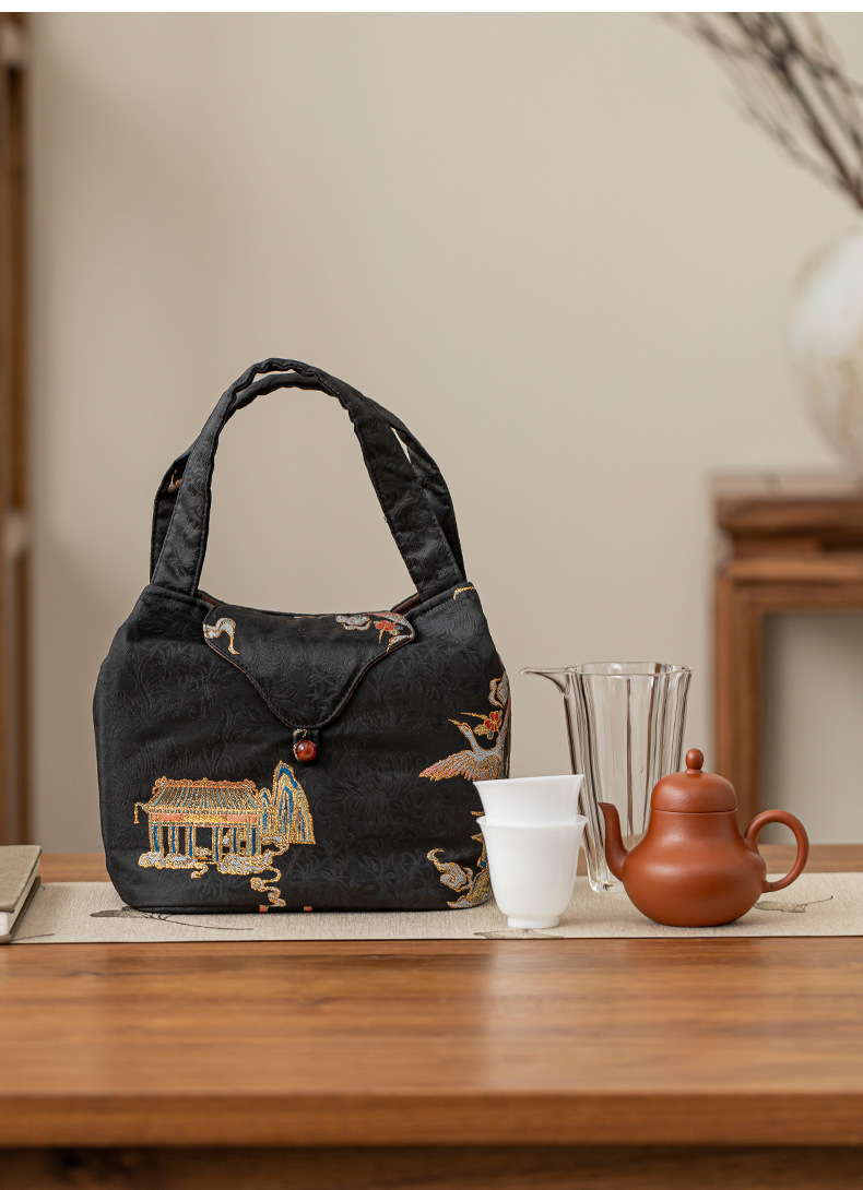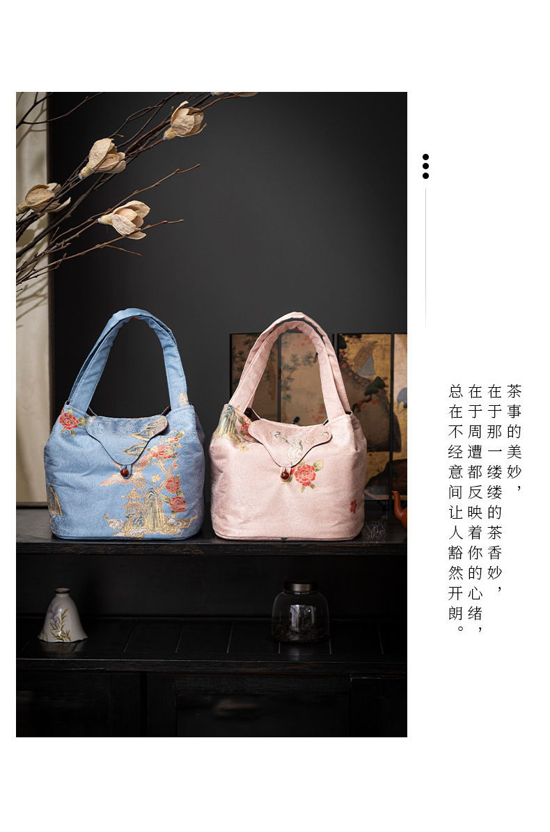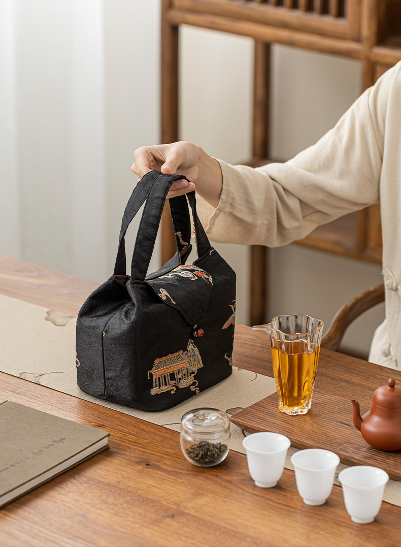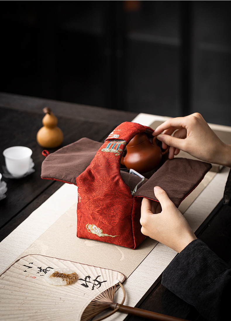 - Phong cách Trung Quốc dày cotton Xiangyun lụa Ruyi túi trà satchel du lịch di động bộ trà túi mỹ phẩm có ngăn túi vải