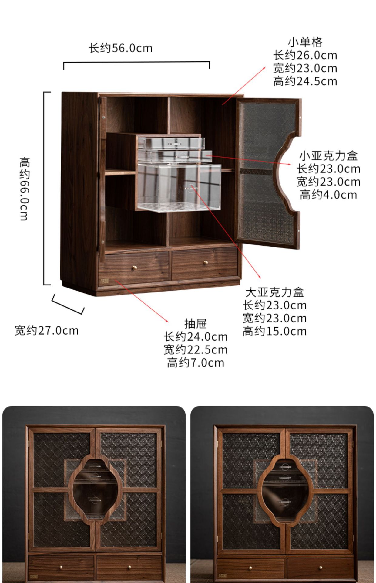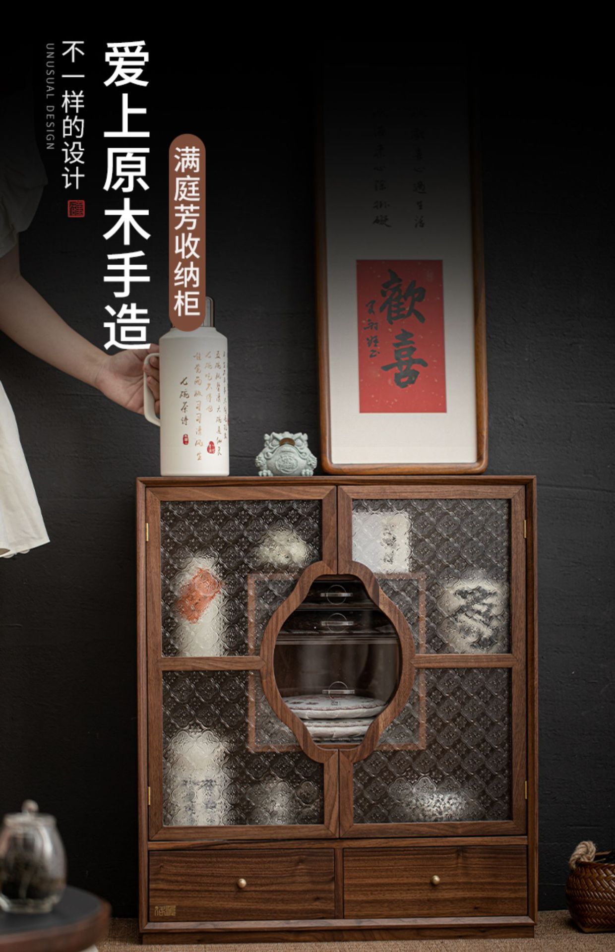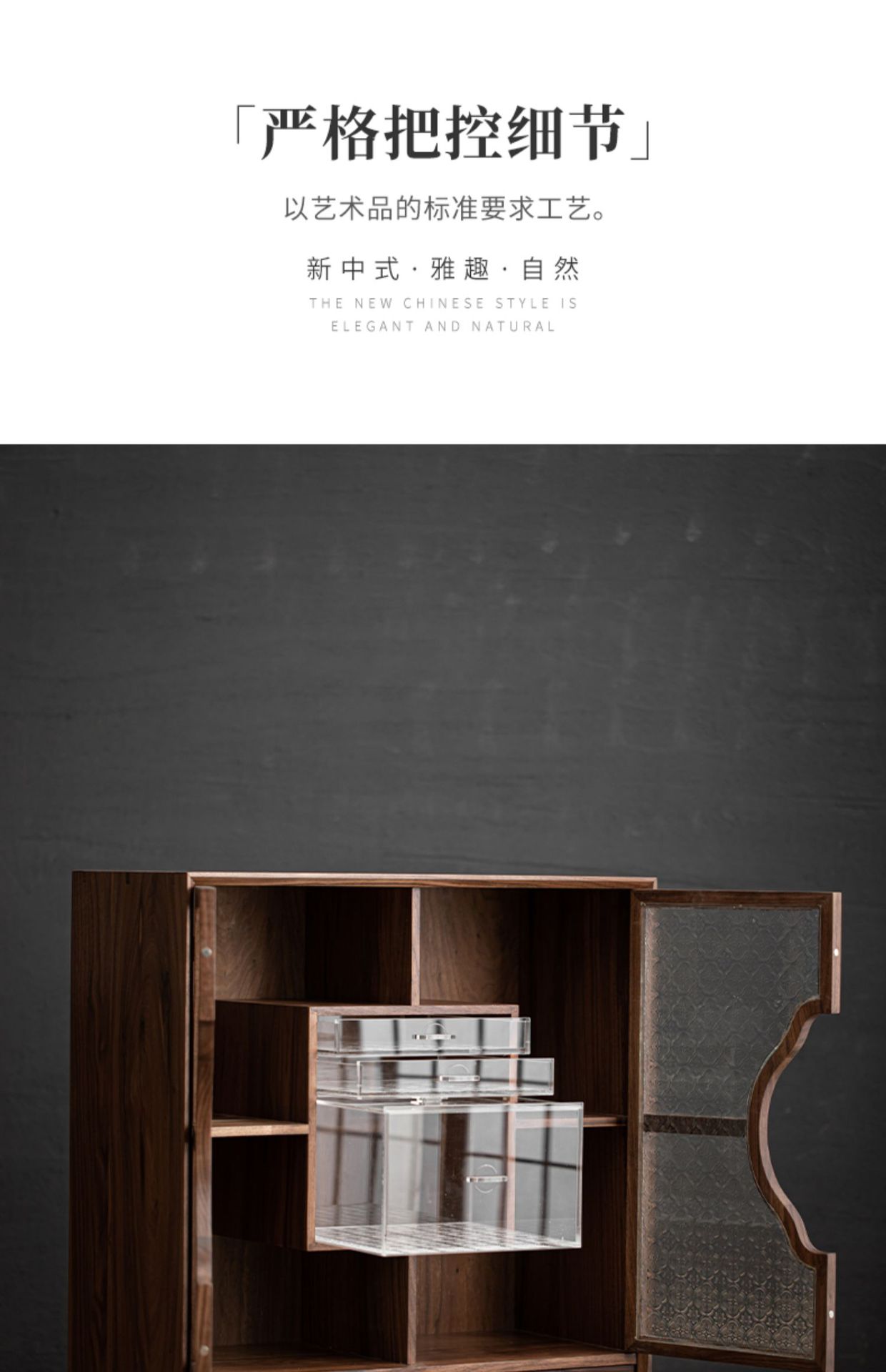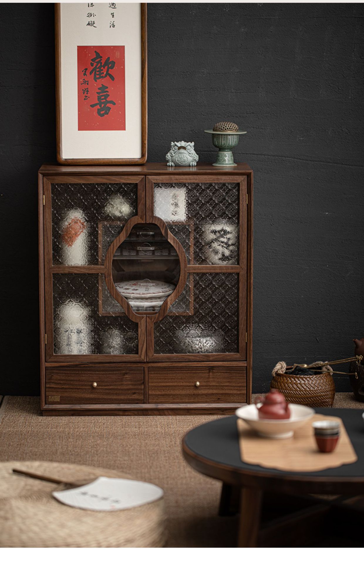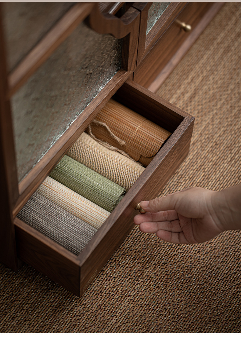 Phong cách Trung Quốc mới Bắc Mỹ Gỗ Óc Chó Mantingfang tủ đựng trà Bộ trà cốc trà Ngăn Kéo Chống bụi ngăn kéo kính