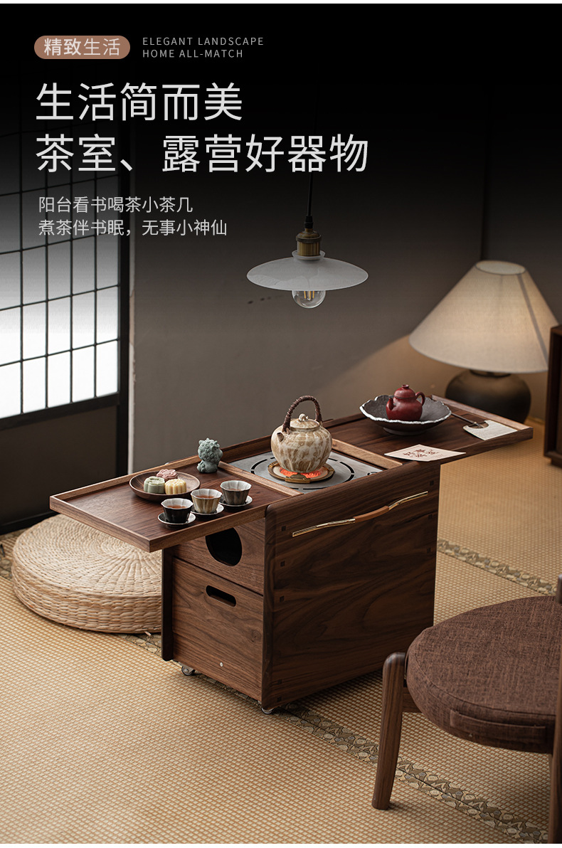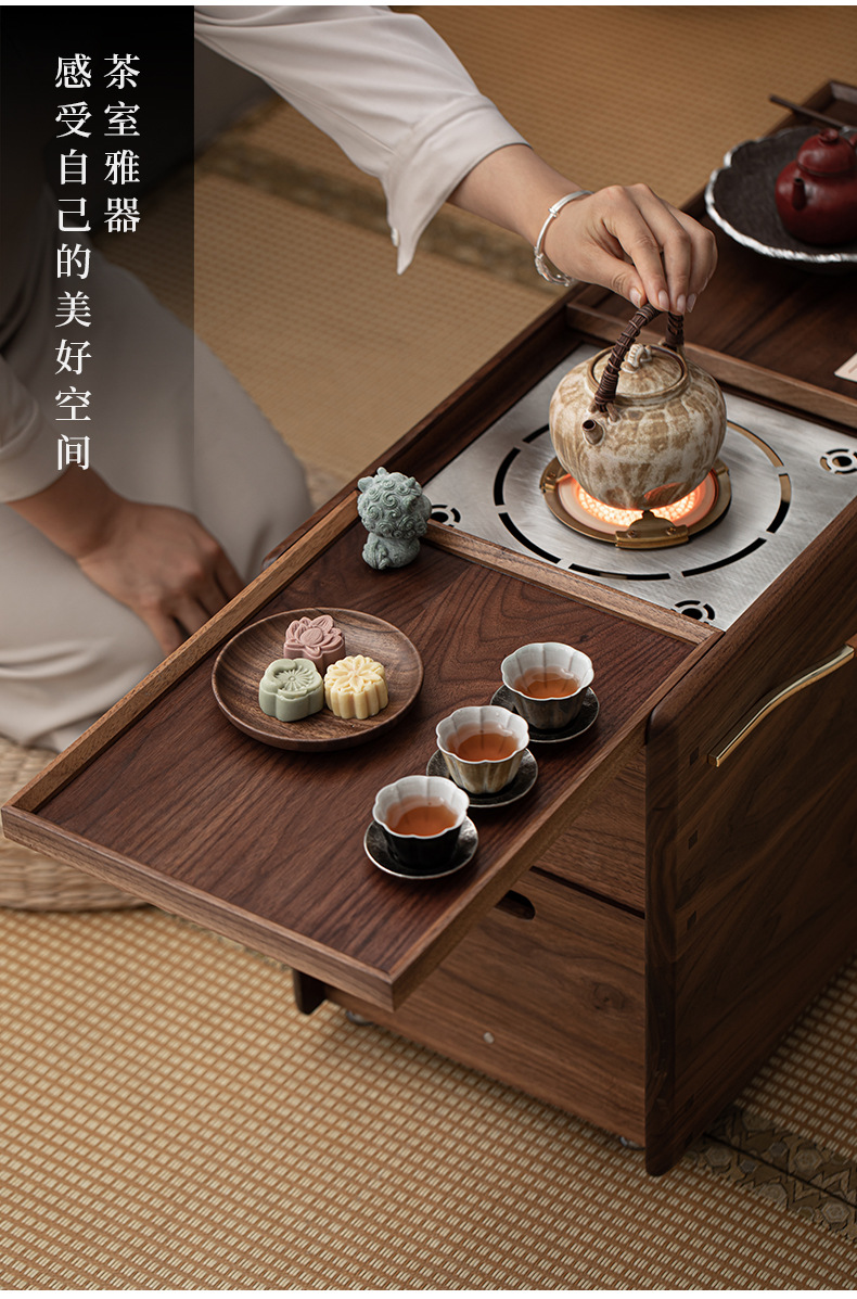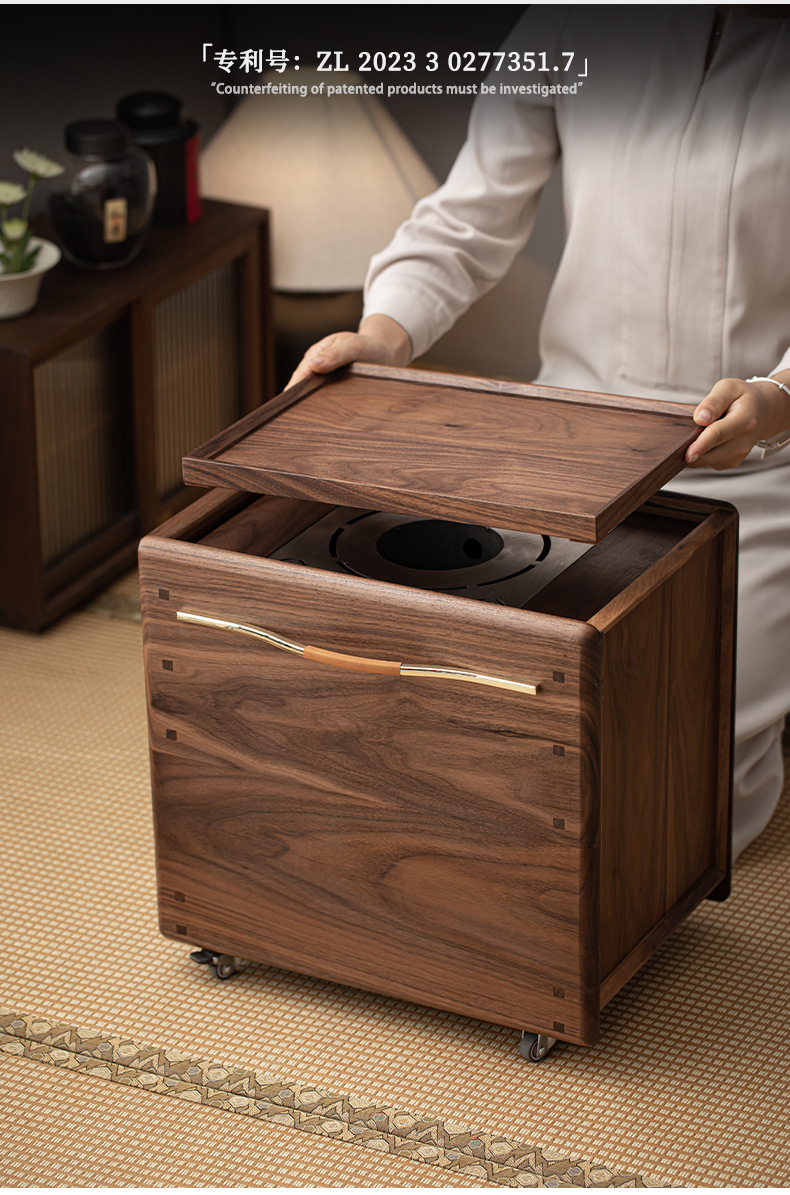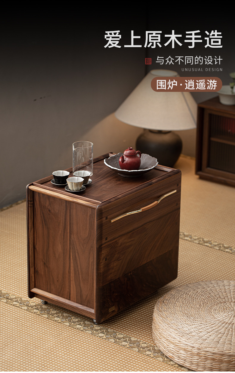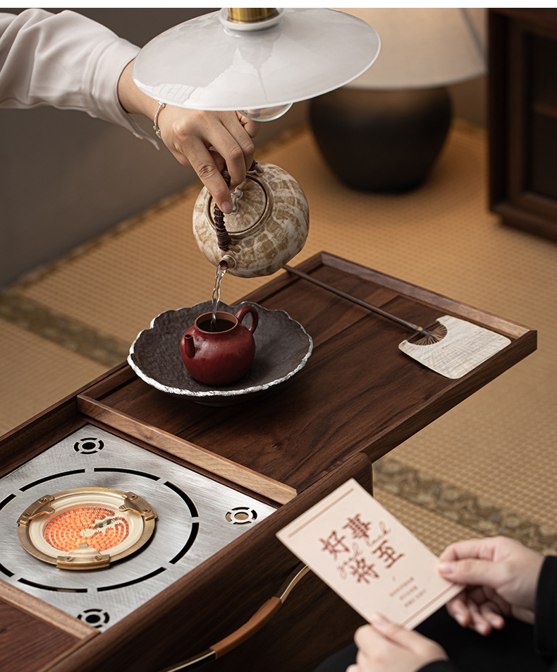 - Phong cách Trung Quốc mới Bắc Mỹ gỗ óc chó nướng than quanh bếp nấu trà bàn trà phòng trà tatami gia dụng tủ lưu trữ bàn trà bát lửa