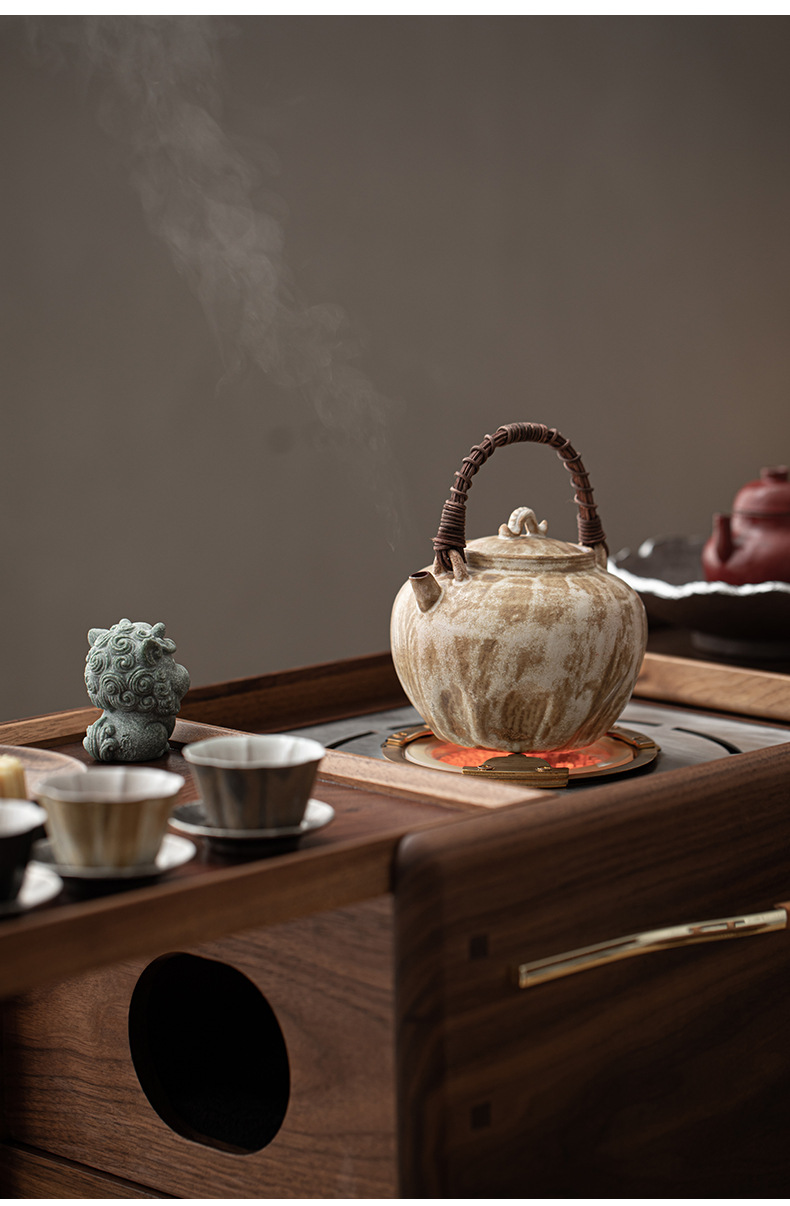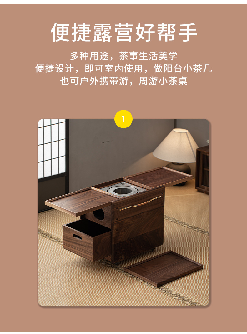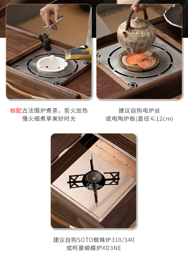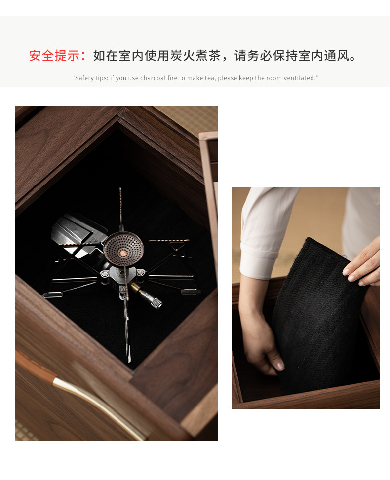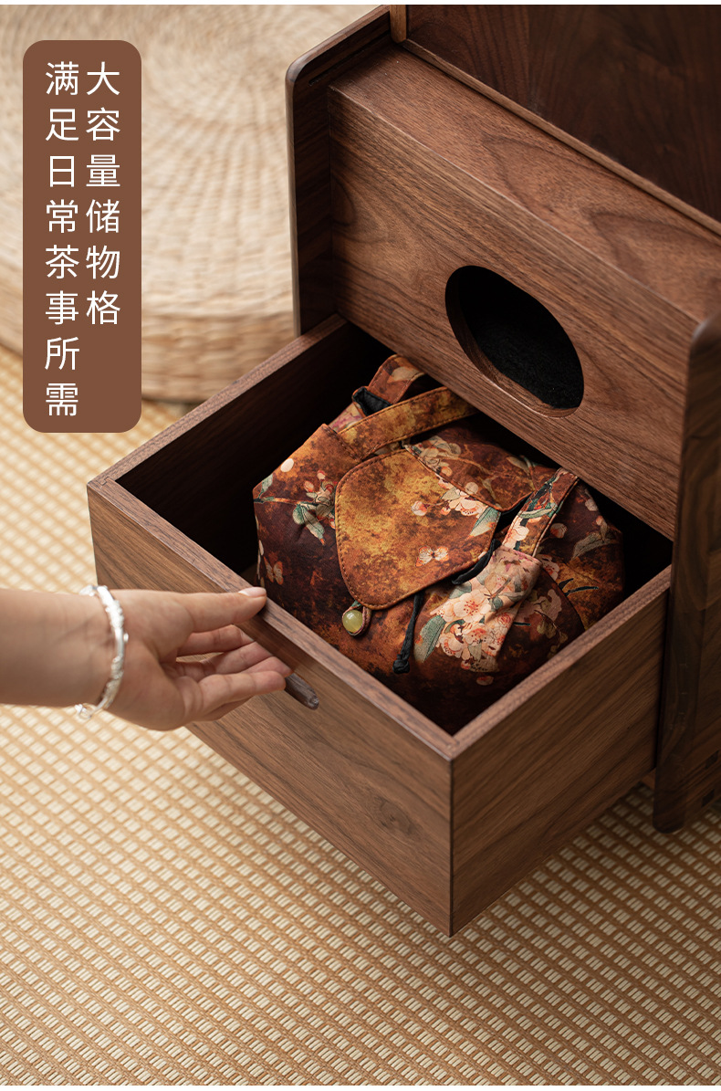 - Phong cách Trung Quốc mới Bắc Mỹ gỗ óc chó nướng than quanh bếp nấu trà bàn trà phòng trà tatami gia dụng tủ lưu trữ bàn trà bát lửa
