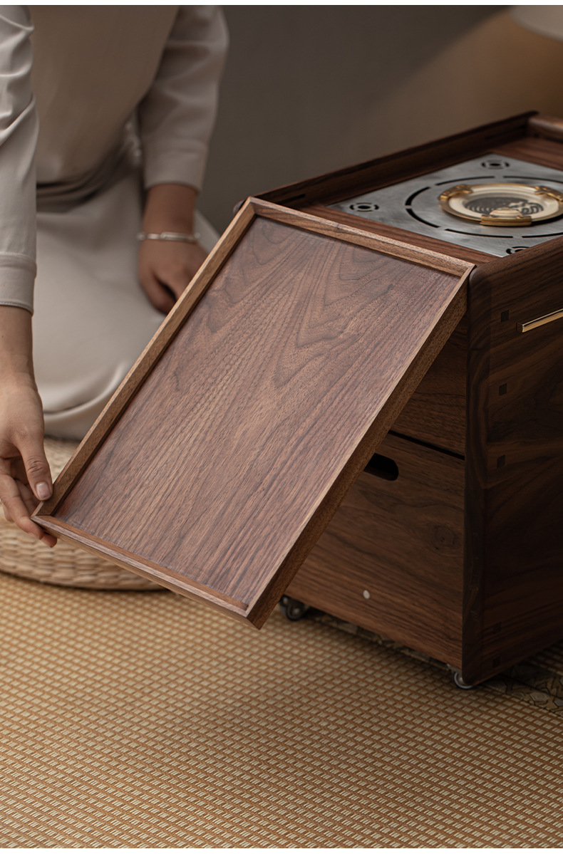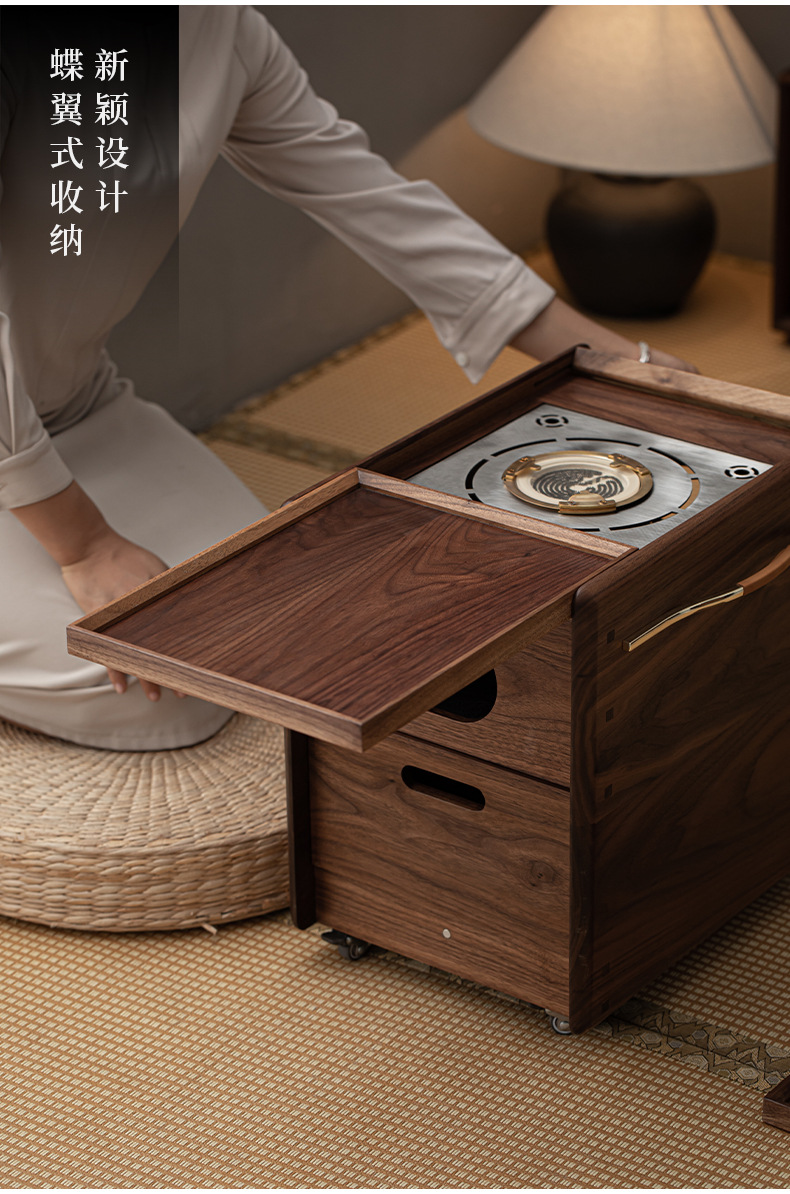 Phong cách Trung Quốc mới Bắc Mỹ gỗ óc chó nướng than quanh bếp nấu trà bàn trà phòng trà tatami gia dụng tủ lưu trữ bàn trà bát lửa