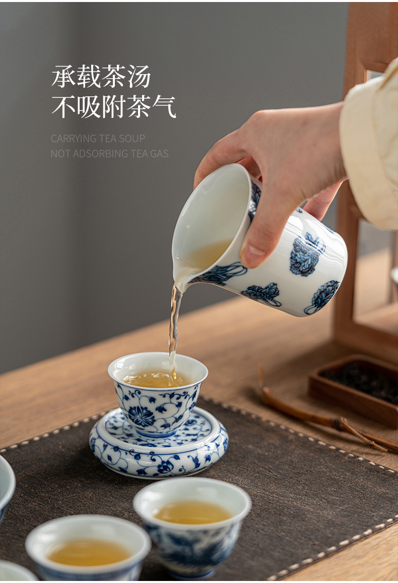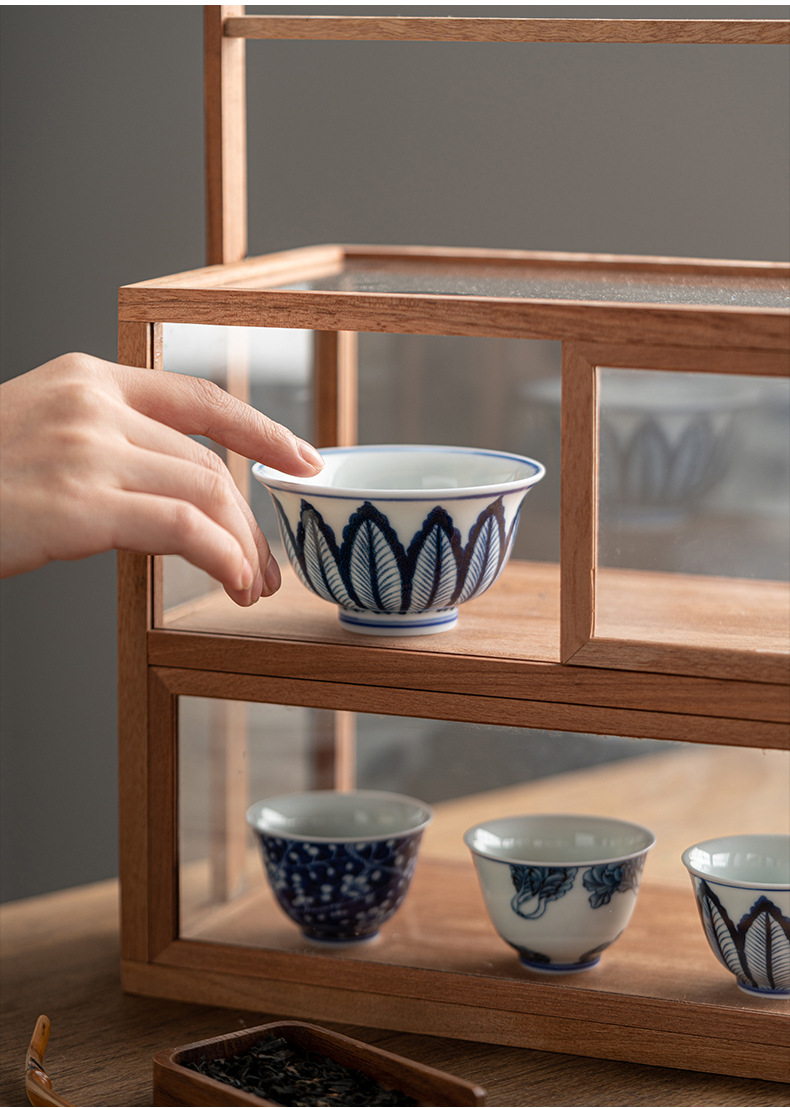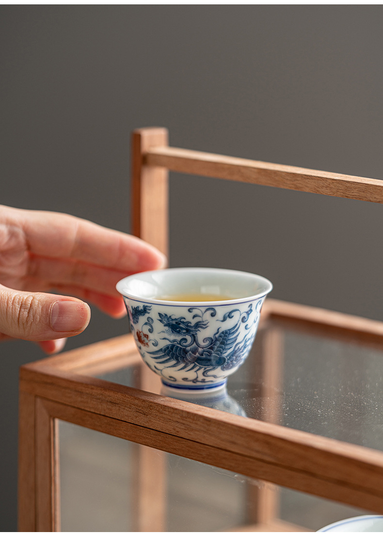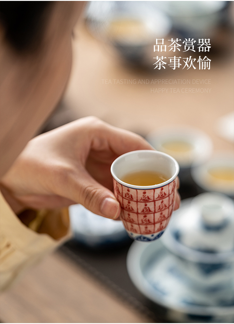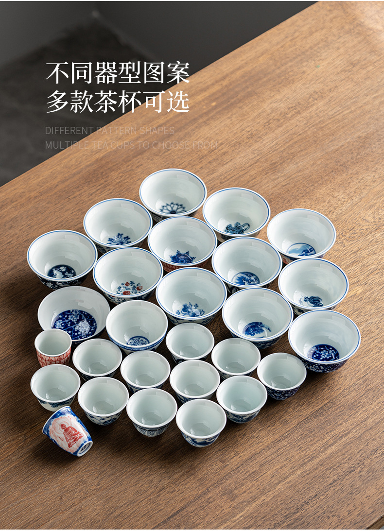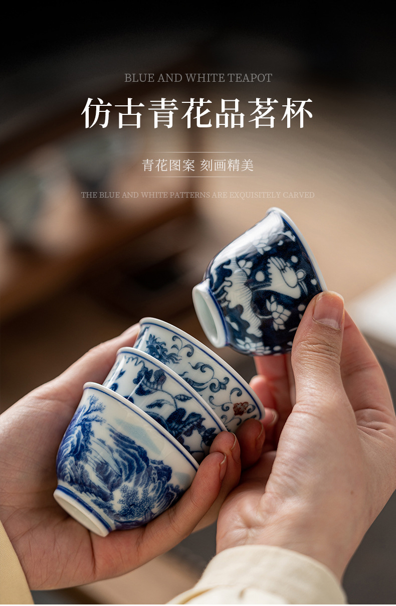 Phong cảnh tráng men màu Pu'er cốc chủ nhân cốc đơn cốc trà gốm sứ cao cấp thủ công vẽ tay sứ trắng xanh đầy màu sắc