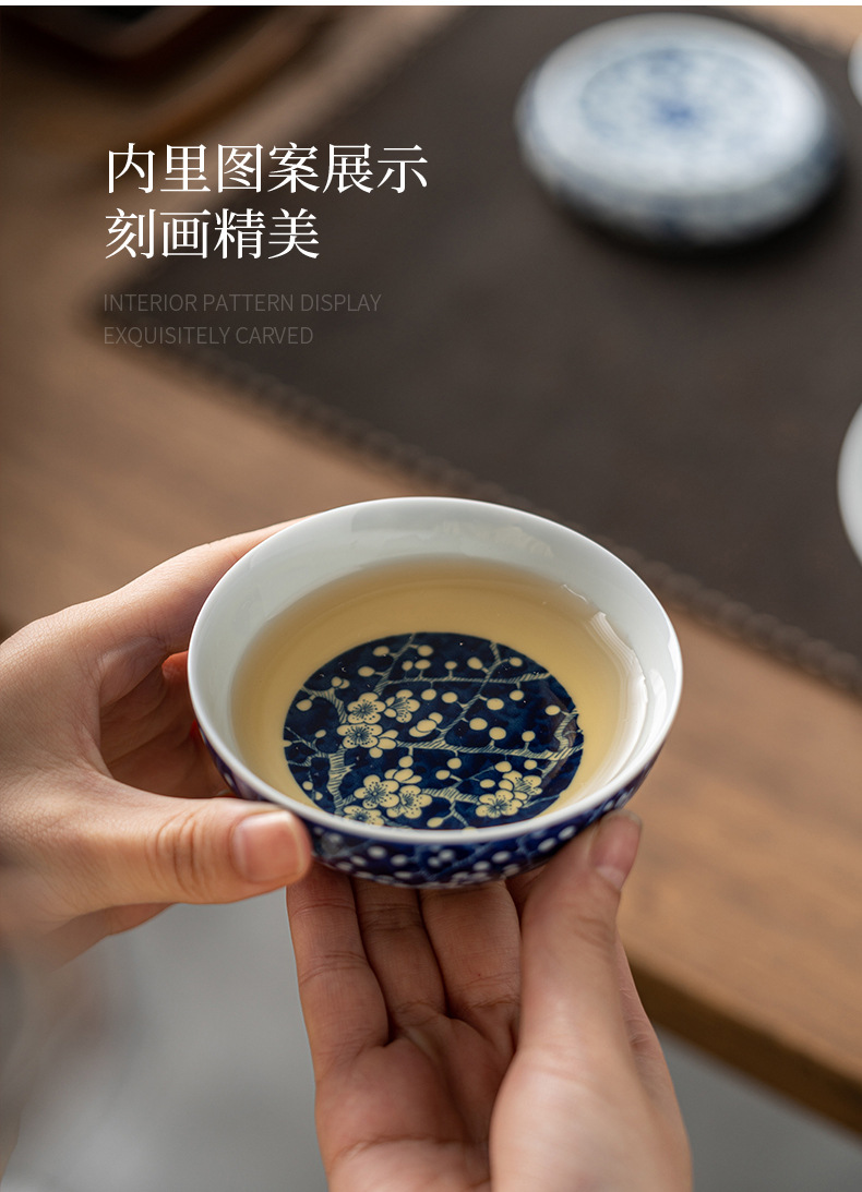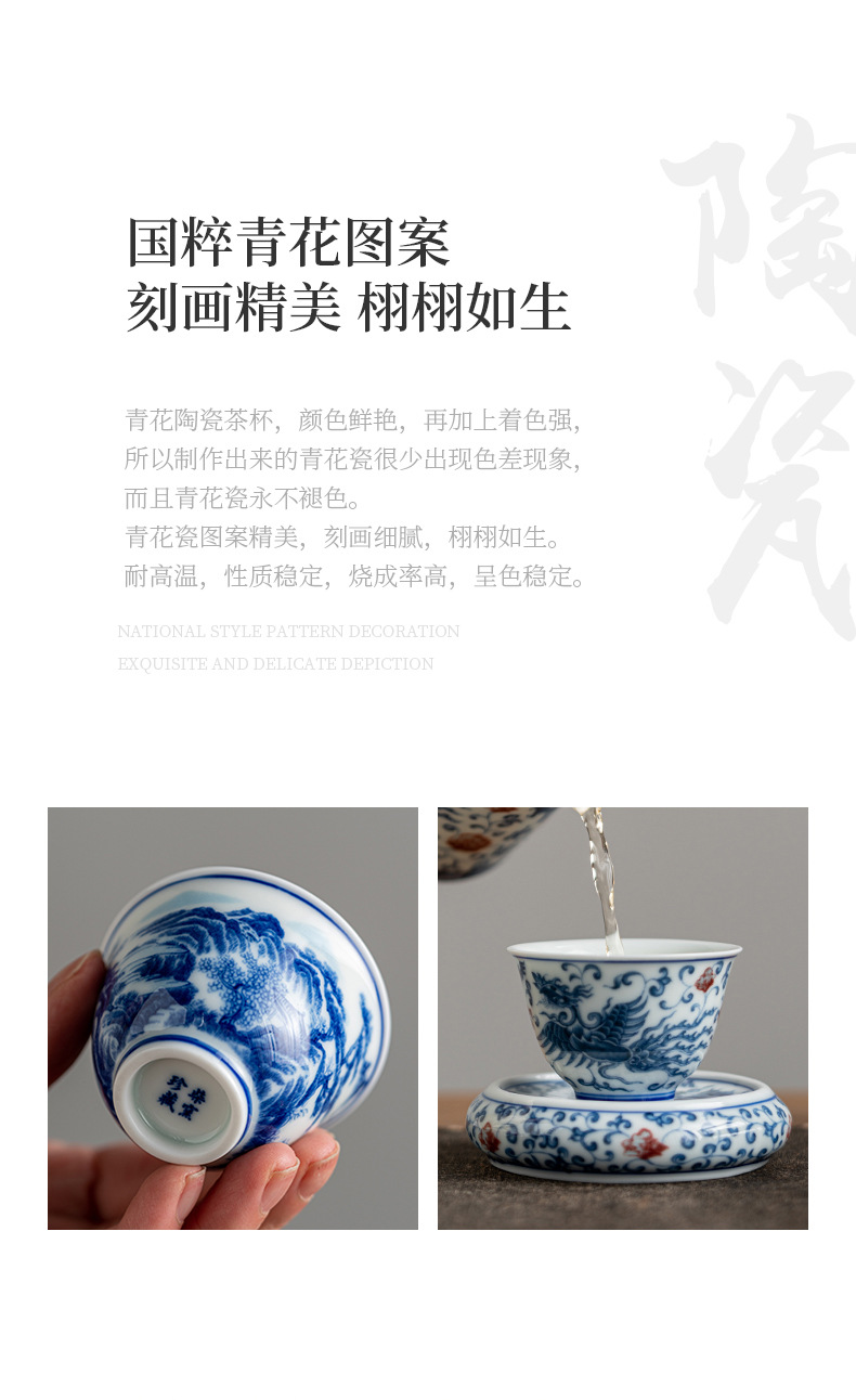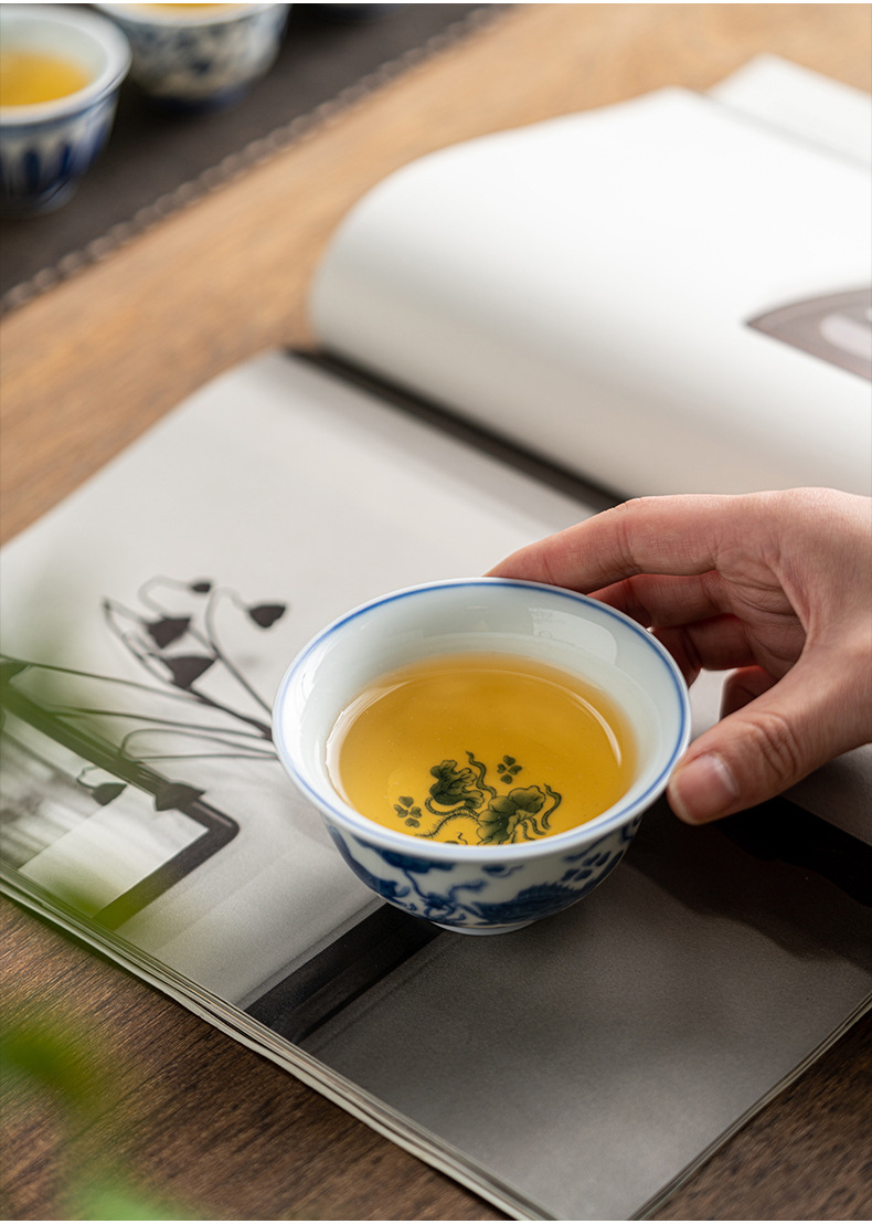 - Phong cảnh tráng men màu Pu'er cốc chủ nhân cốc đơn cốc trà gốm sứ cao cấp thủ công vẽ tay sứ trắng xanh đầy màu sắc