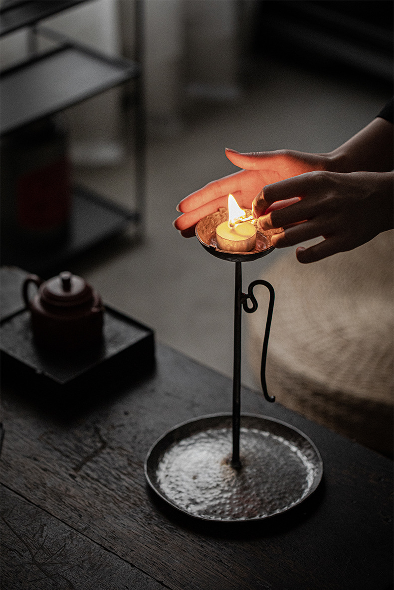 - Phòng khách Zen bàn nến sắt nghệ thuật cổ điển bàn đèn dầu rèn tay rèn búa đèn nến bằng gang đồ trang trí phòng trà Homestay