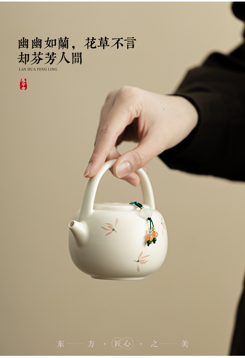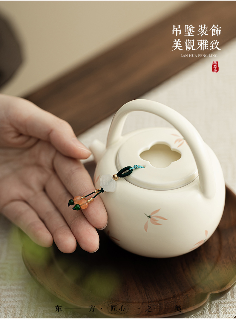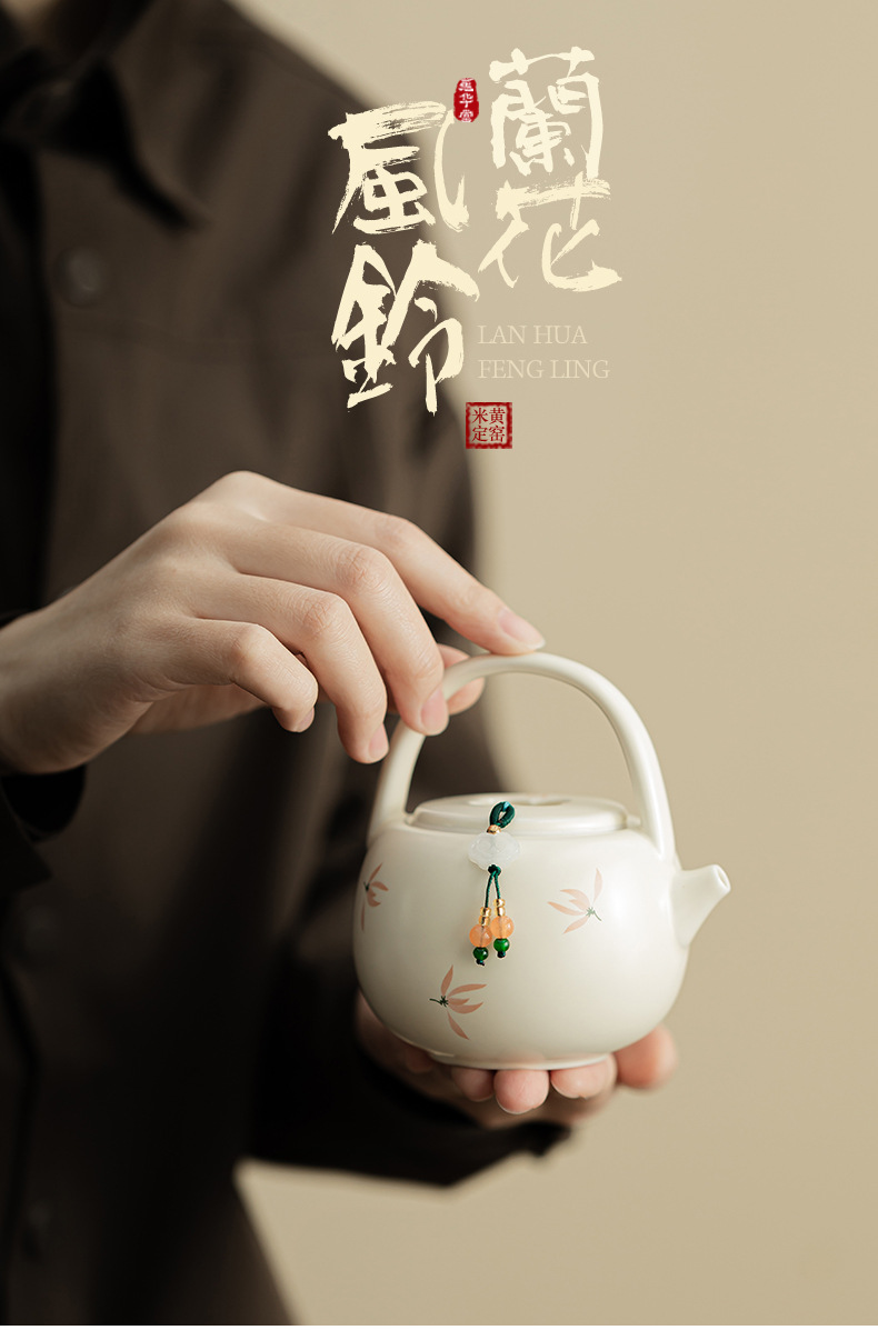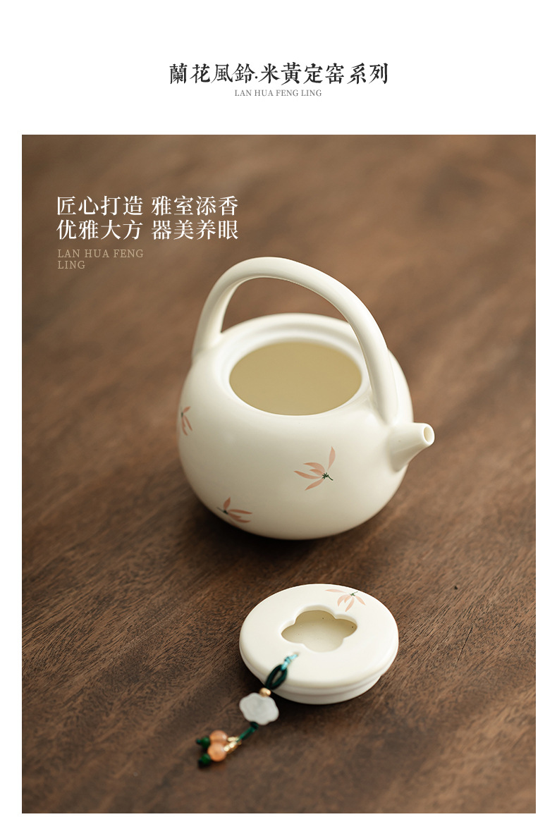 - Phong lan chuông gió màu be vàng Ding lò nung chùm ấm pha trà cầm tay gốm sứ dụng cụ pha trà Kung Fu dụng cụ pha trà lỗ bóng dụng cụ pha trà
