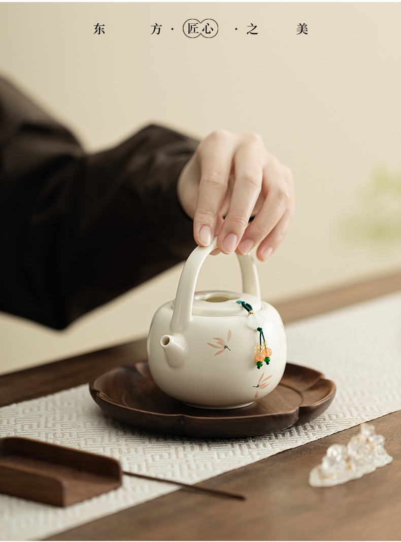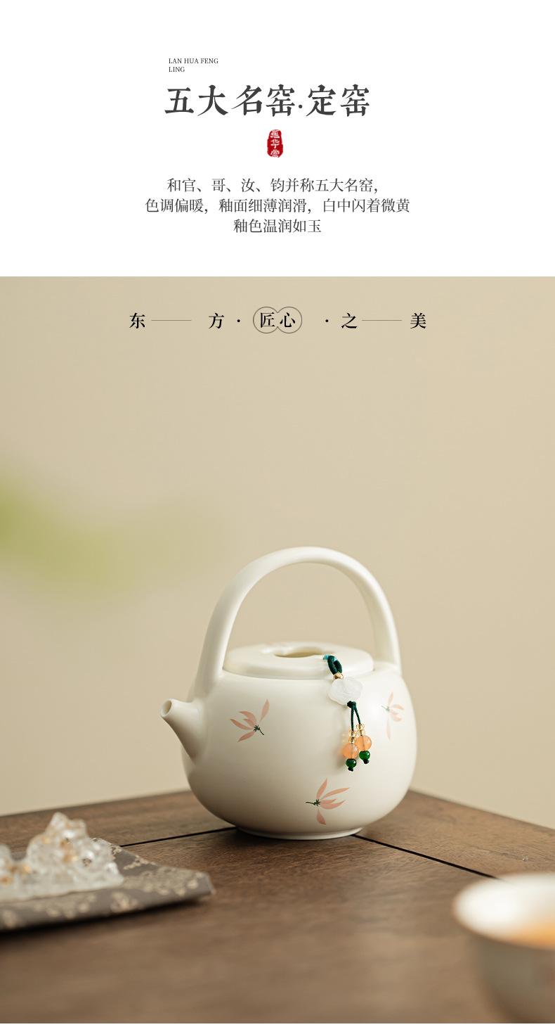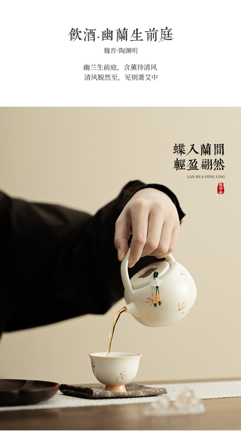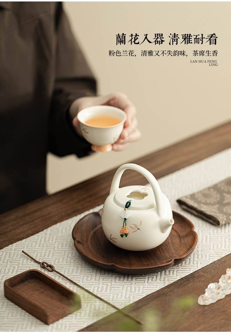 Phong lan chuông gió màu be vàng Ding lò nung chùm ấm pha trà cầm tay gốm sứ dụng cụ pha trà Kung Fu dụng cụ pha trà lỗ bóng dụng cụ pha trà