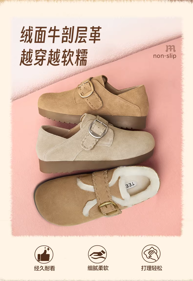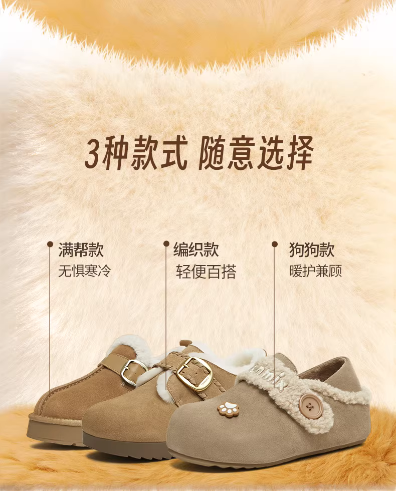 - 【Phòng phát trực tiếp của Li Jiaqi Thứ Tư vui vẻ】Giày lông cừu kiểu Birkenstock lót lông ấm áp của Tianmeiyi Giày bốt đi tuyết Giày cotton