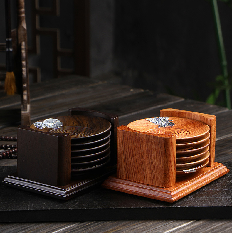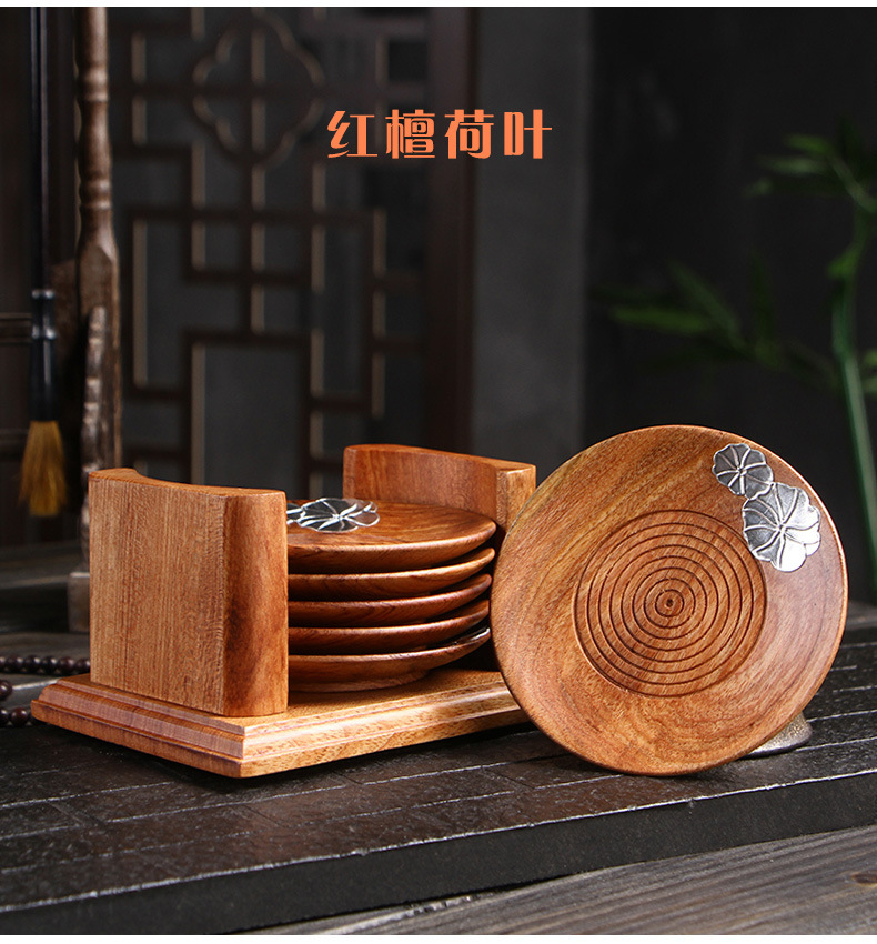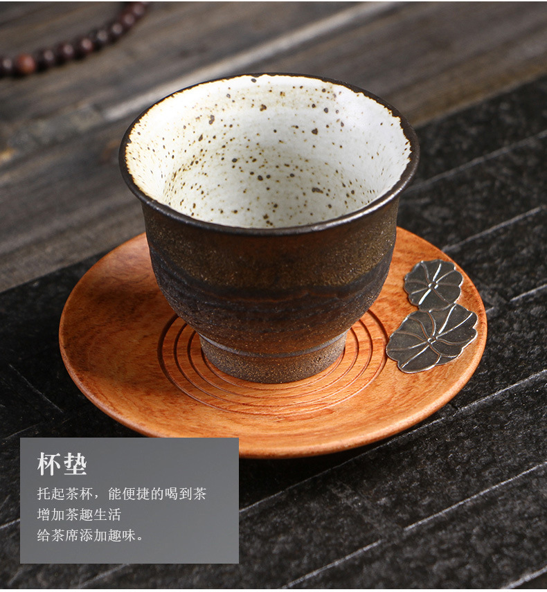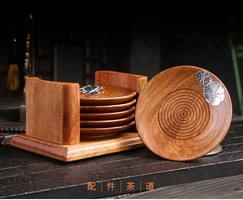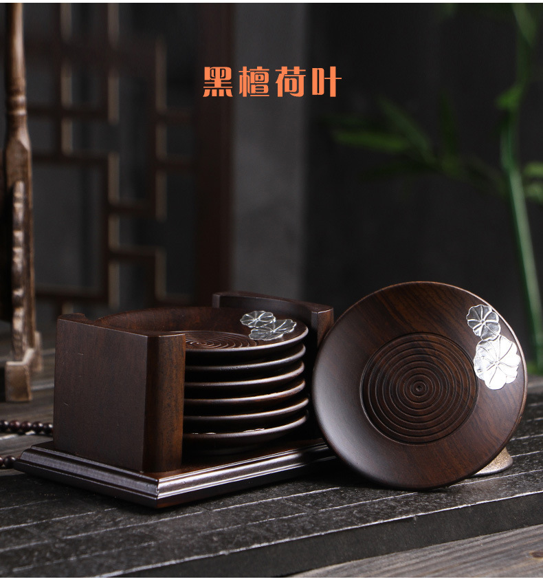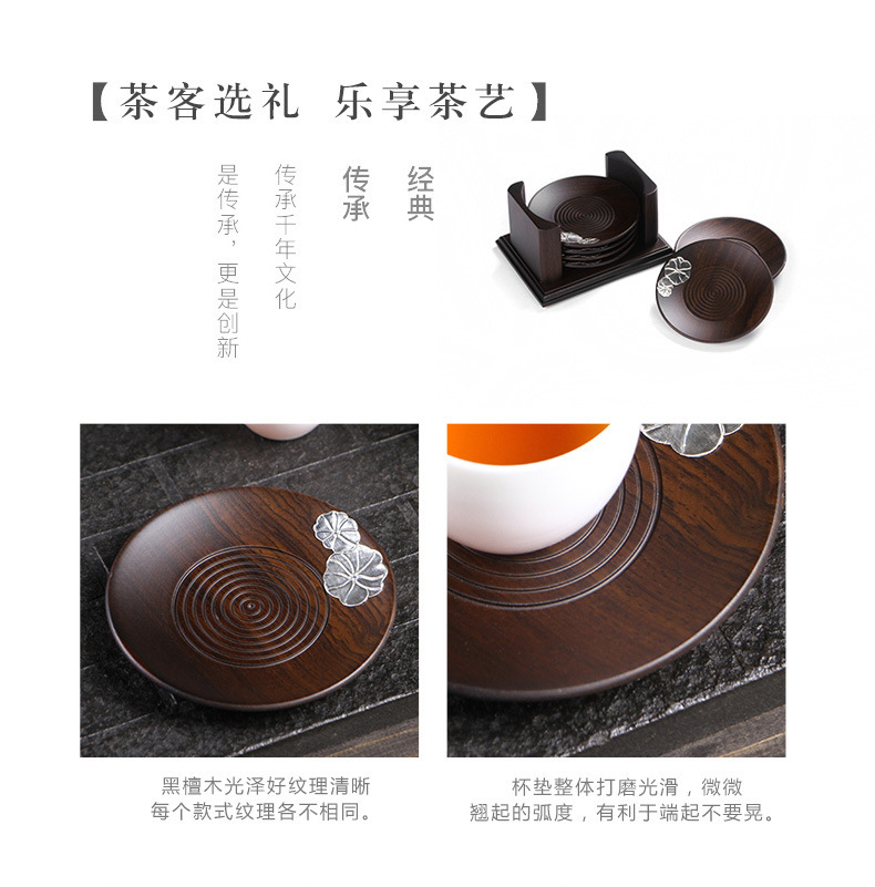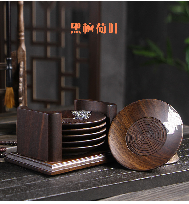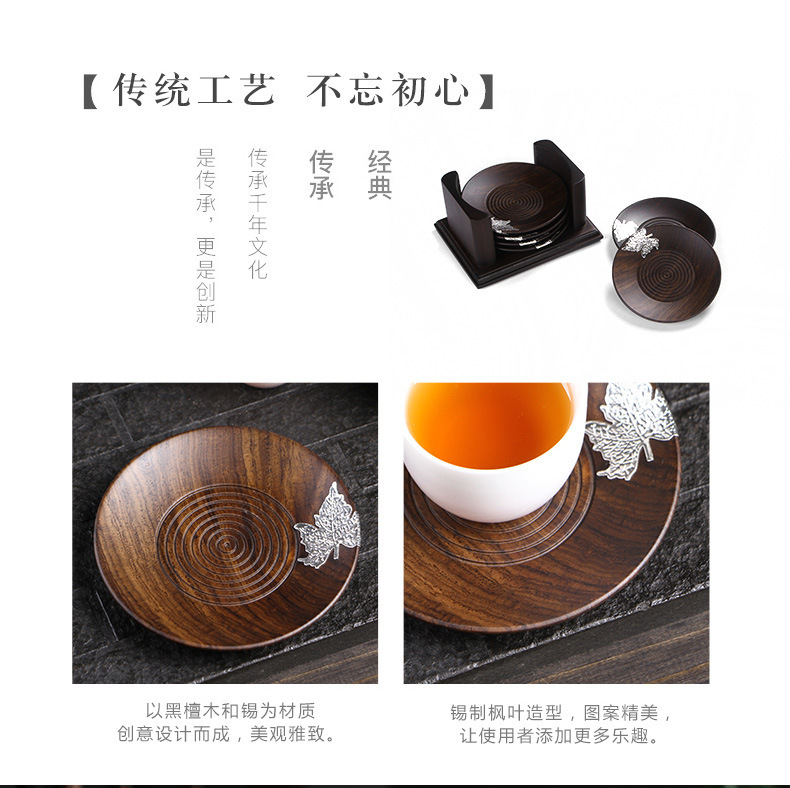 Phụ kiện bộ ấm trà gỗ solid gỗ mun có kệ đựng cốc đựng cốc trà thiếc nguyên chất kiểu Trung Quốc cỡ lớn bộ lót cốc trà đạo Kung Fu
