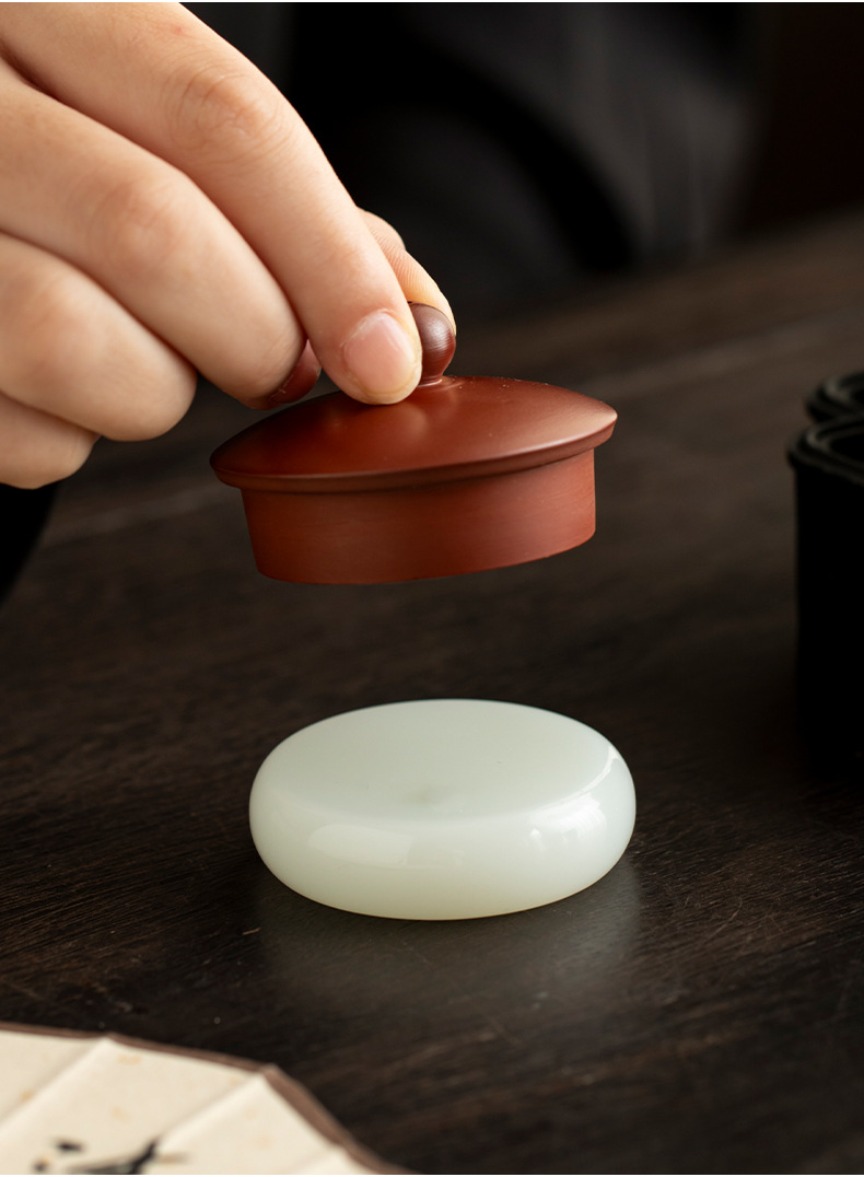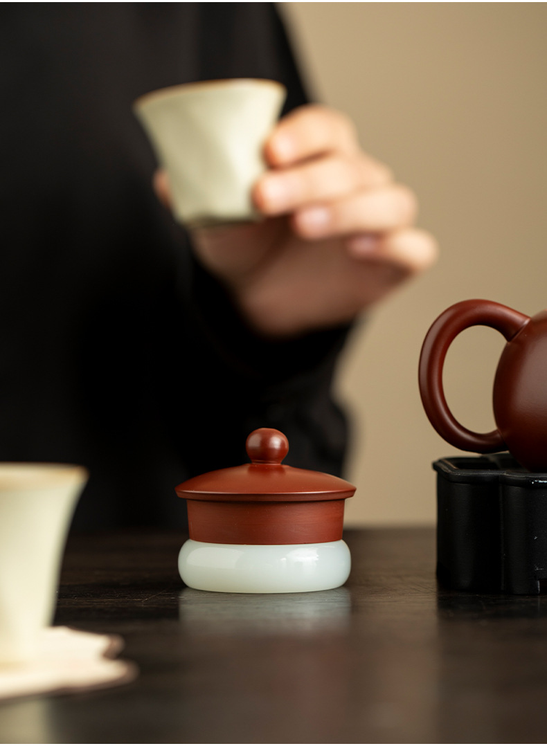 Phụ kiện bộ trà có nắp bằng ngọc bích mới bộ trà thú chơi trà bộ trà Kung Fu ấm trà tử sa có nắp ấm trà