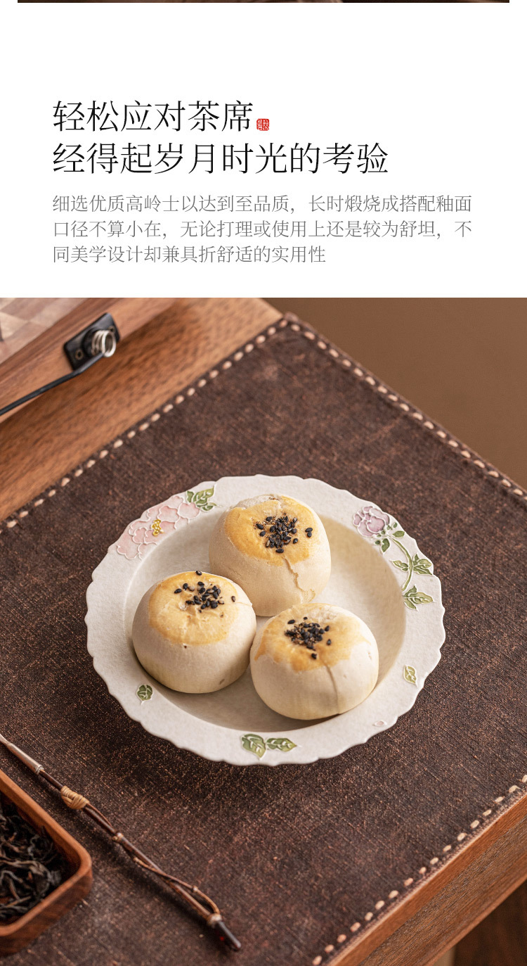 Phụ kiện bộ trà trắng mỏ đá cực chất, chậu miệng hoa mẫu đơn khắc, khay trà gốm, khay trà, khay pha khô giá trị cao