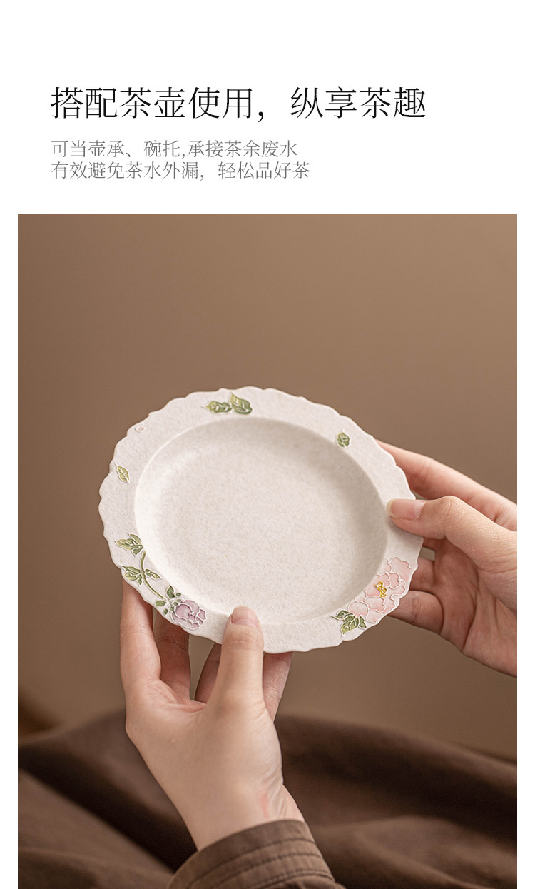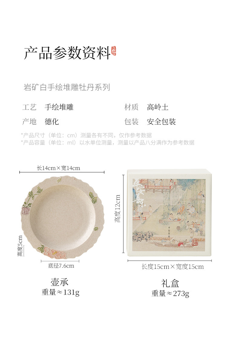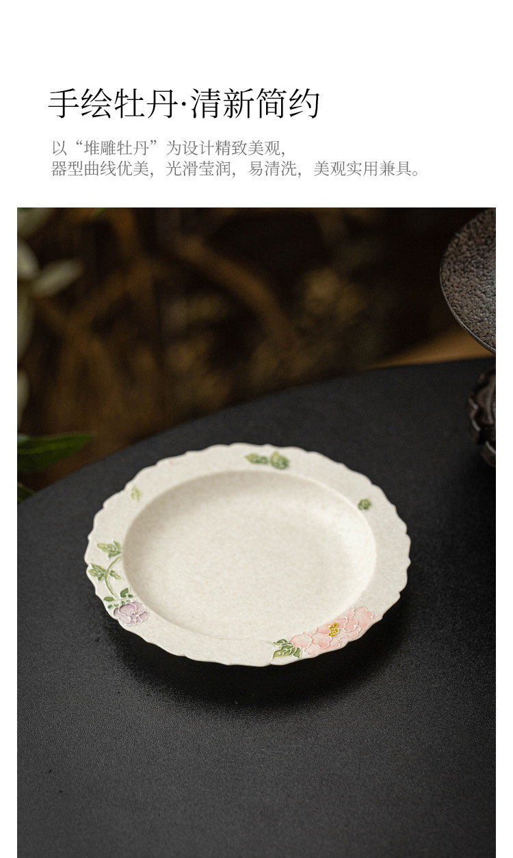 - Phụ kiện bộ trà trắng mỏ đá cực chất, chậu miệng hoa mẫu đơn khắc, khay trà gốm, khay trà, khay pha khô giá trị cao