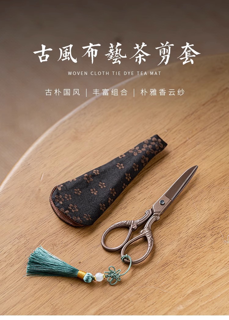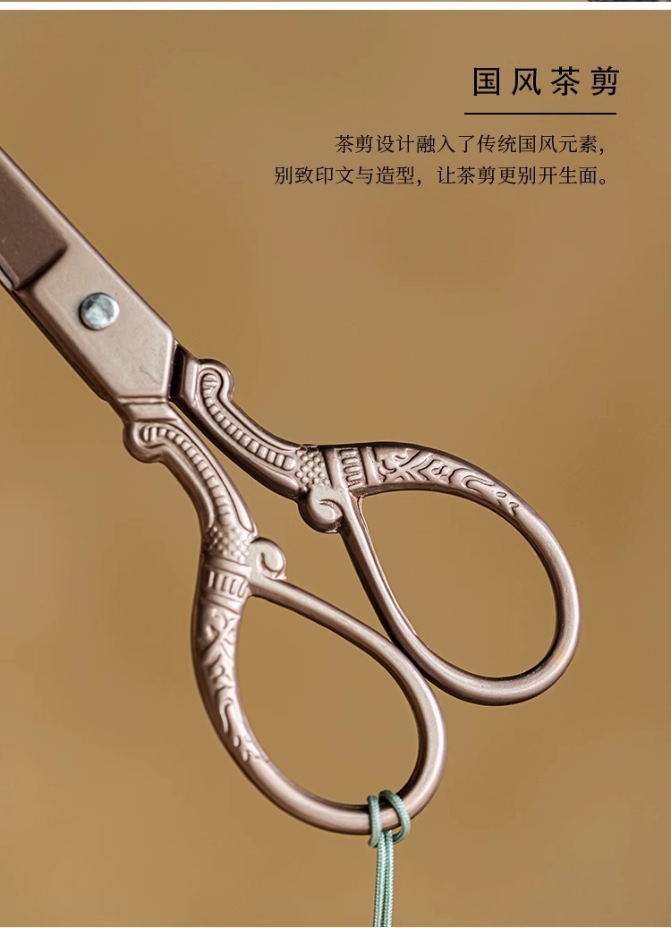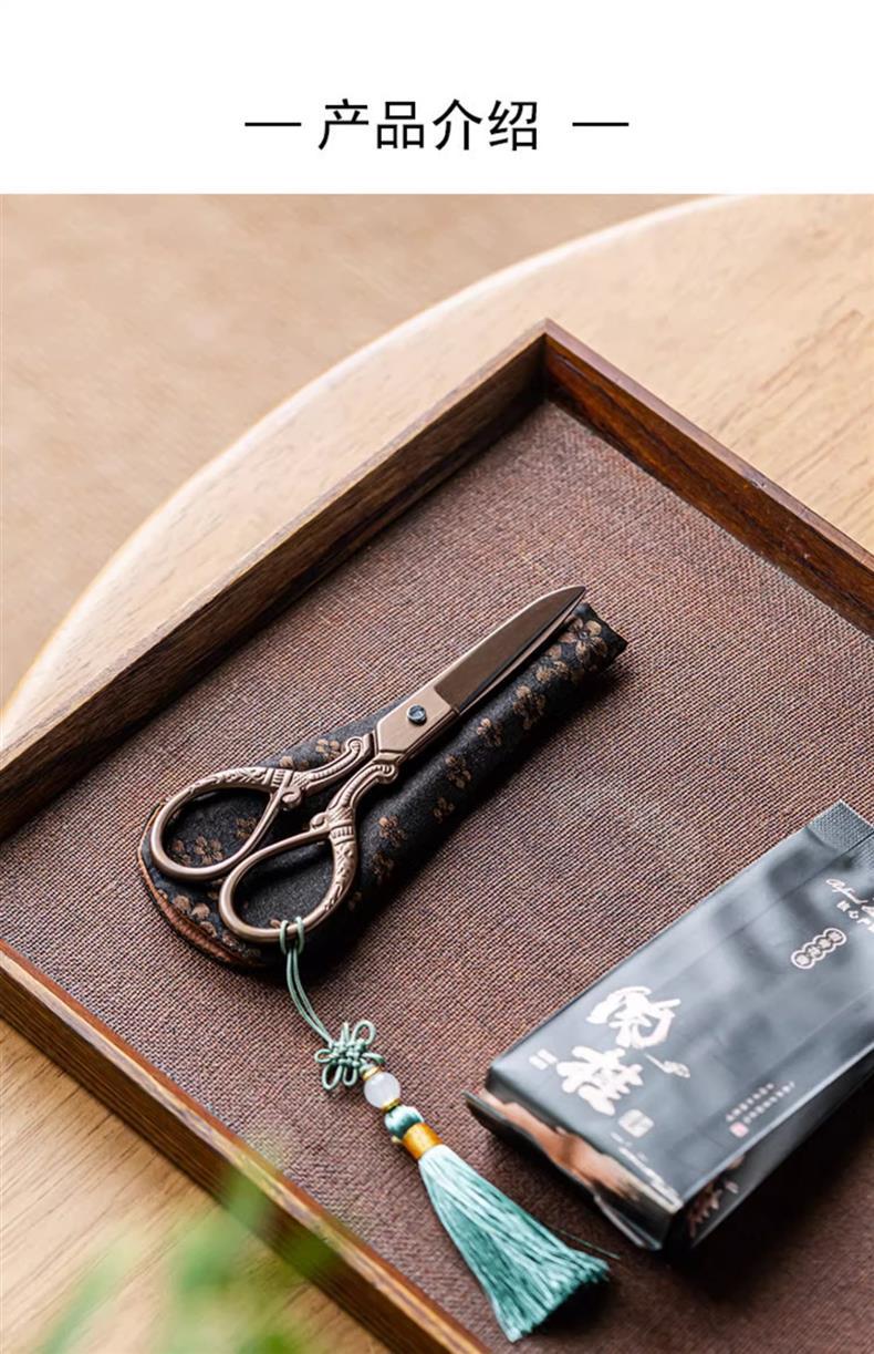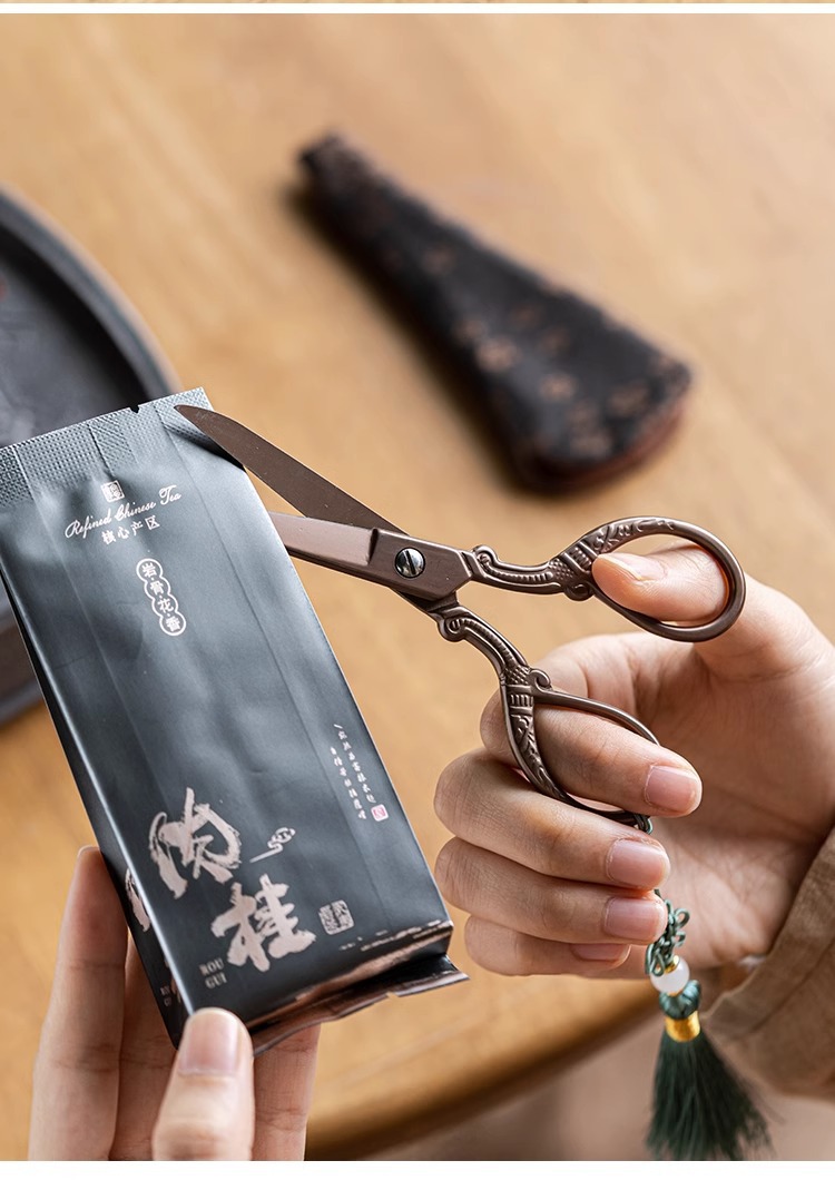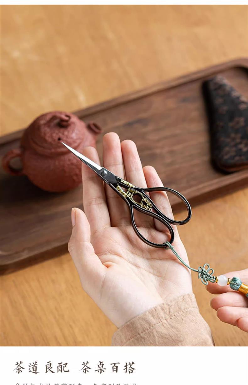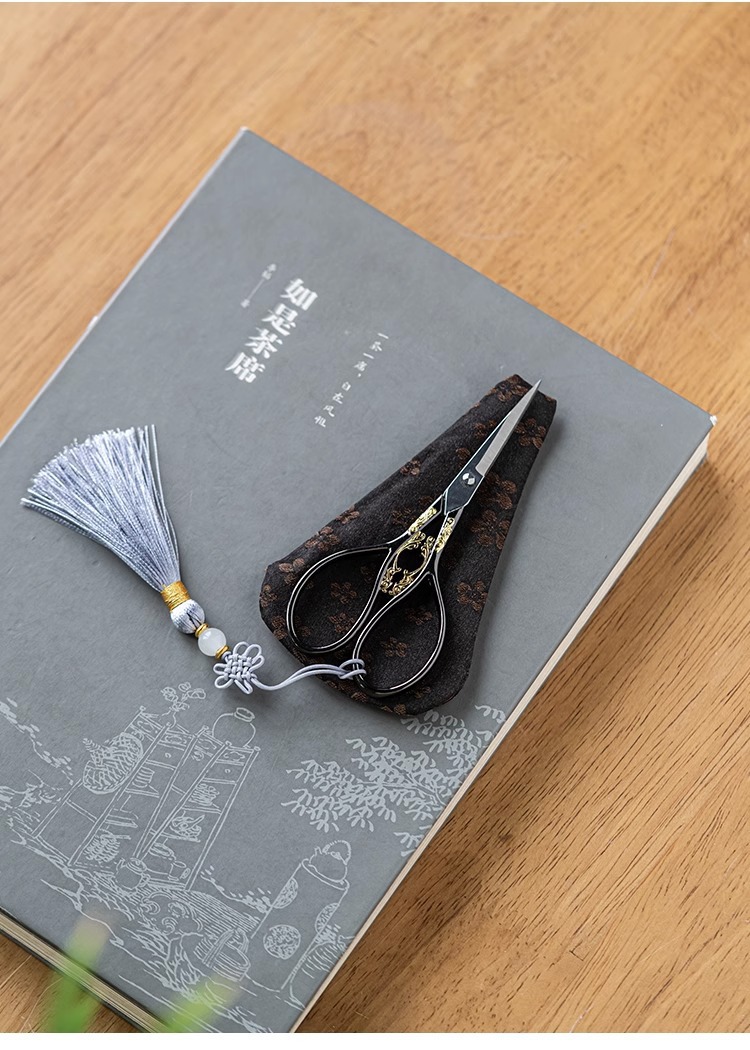 - Phụ kiện trà đạo kéo nhỏ gia dụng kiểu Trung Quốc dao cắt giấy thủ công túi đựng trà inox đầu kéo bán buôn