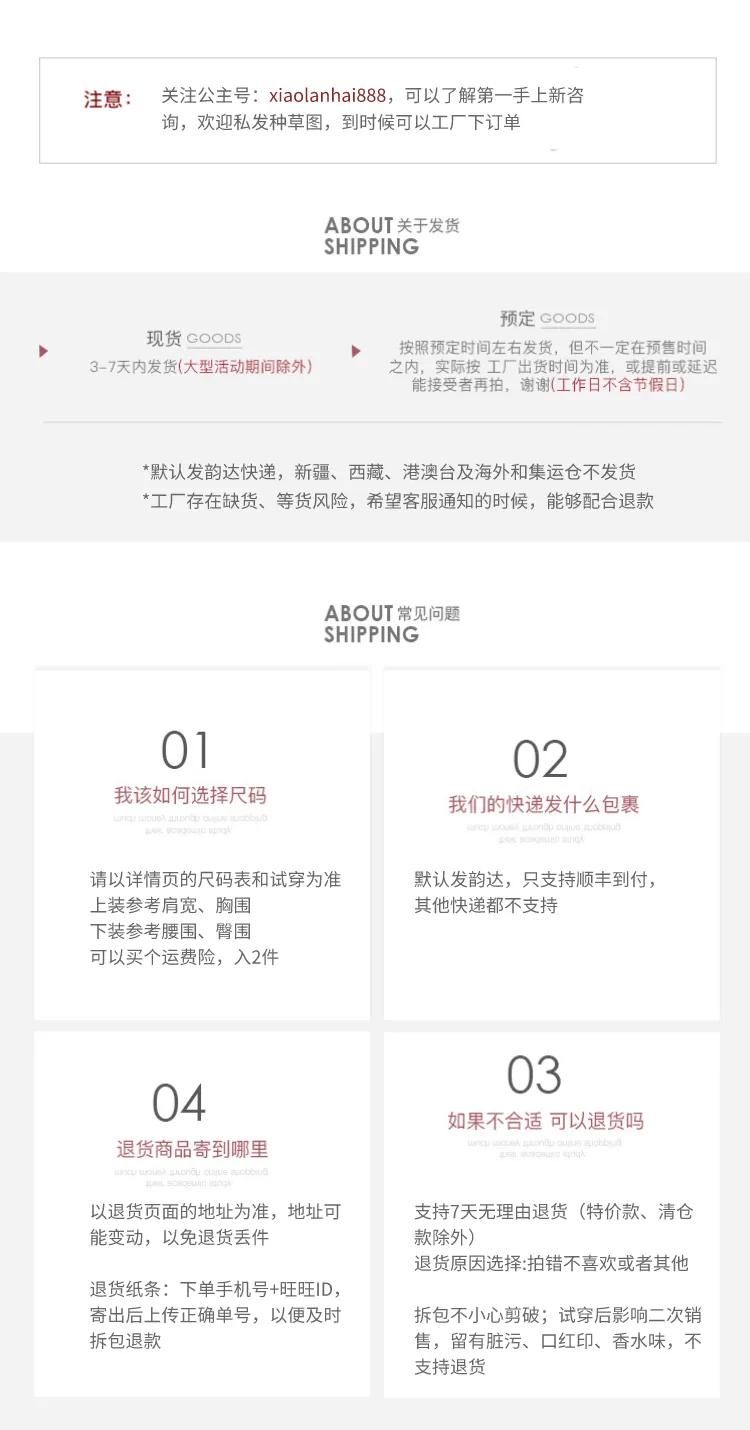 客服应邀提供的尺码仅供参考,不作为退换理由,请自行承担退货运费