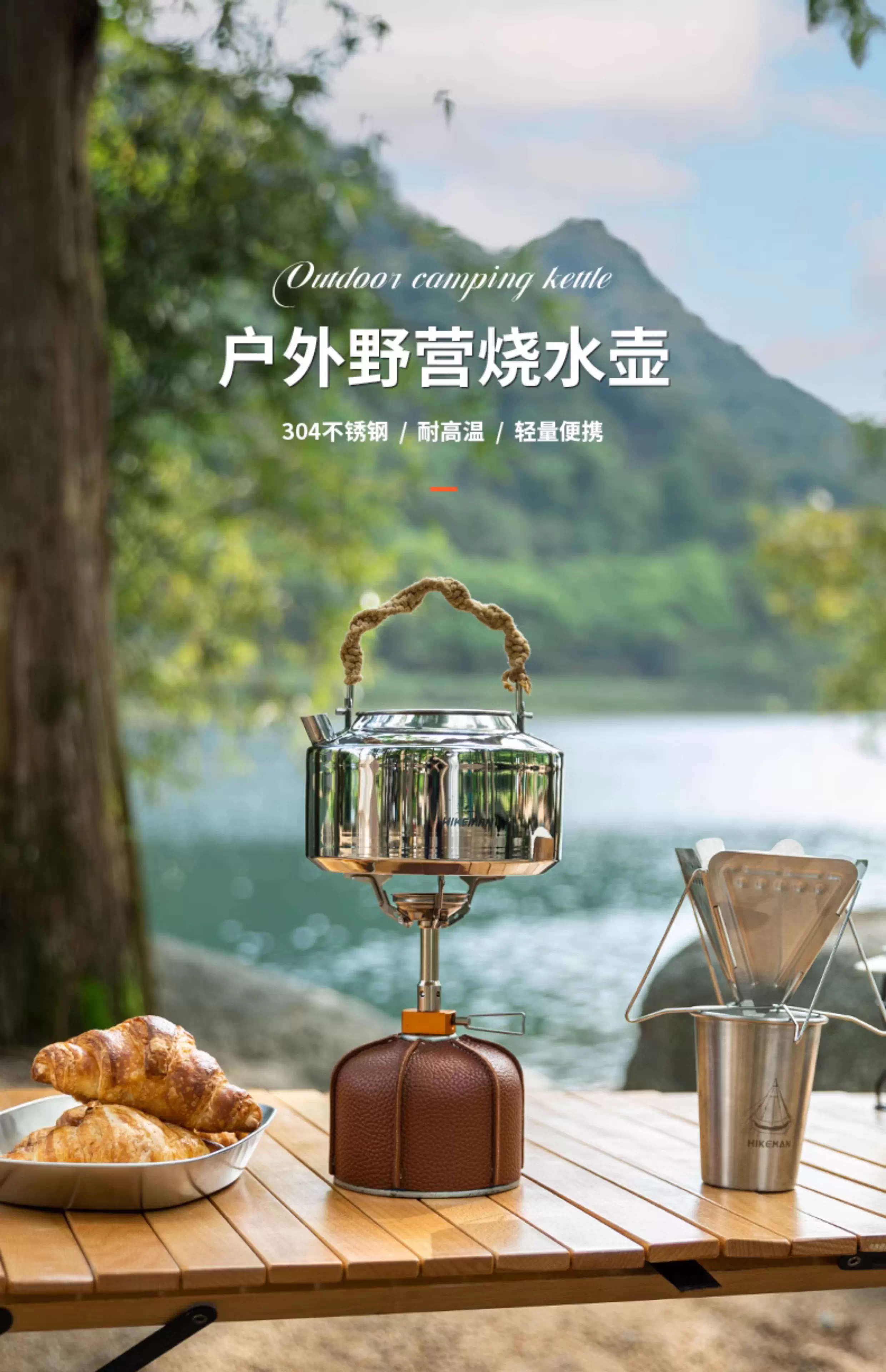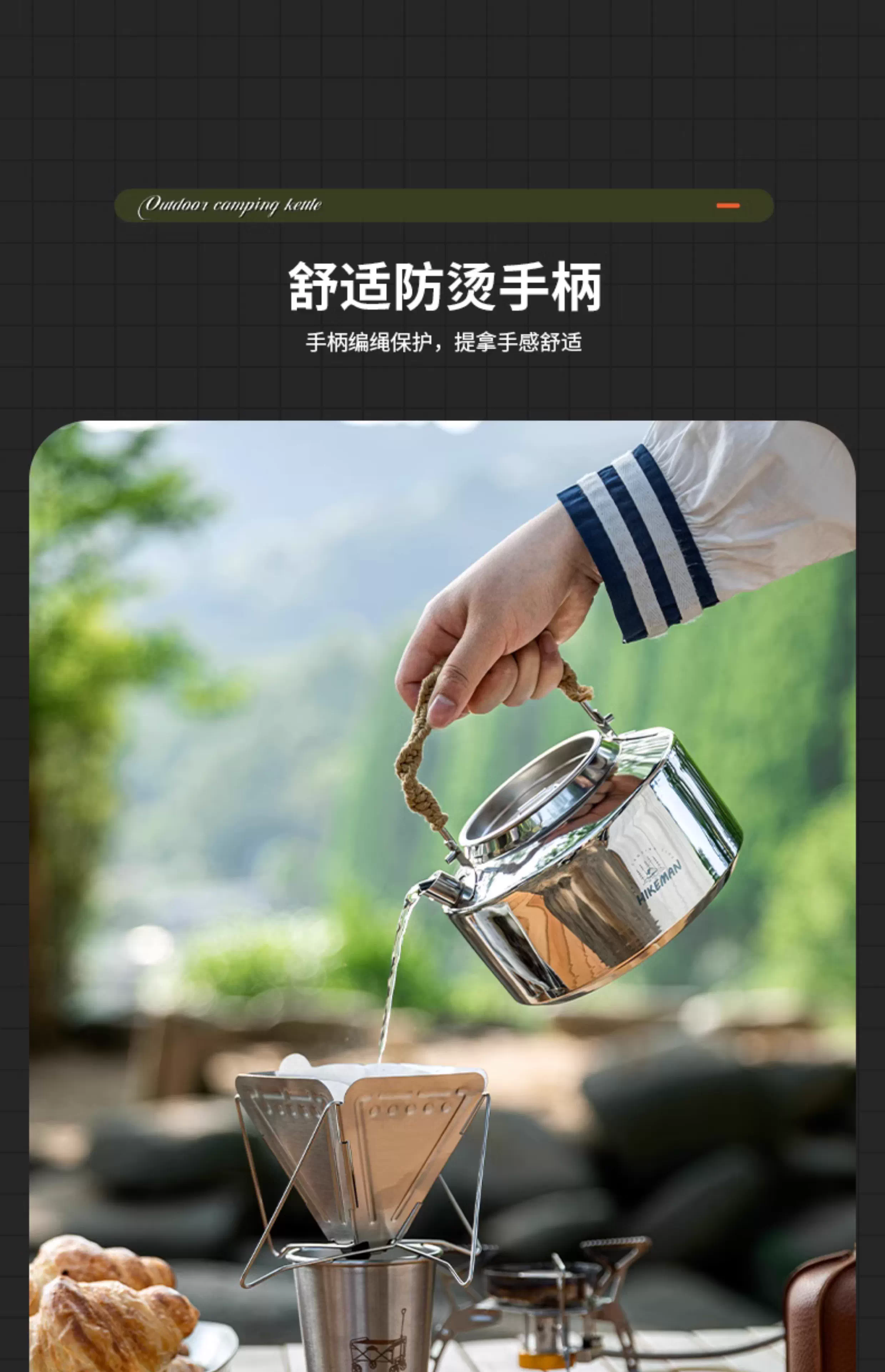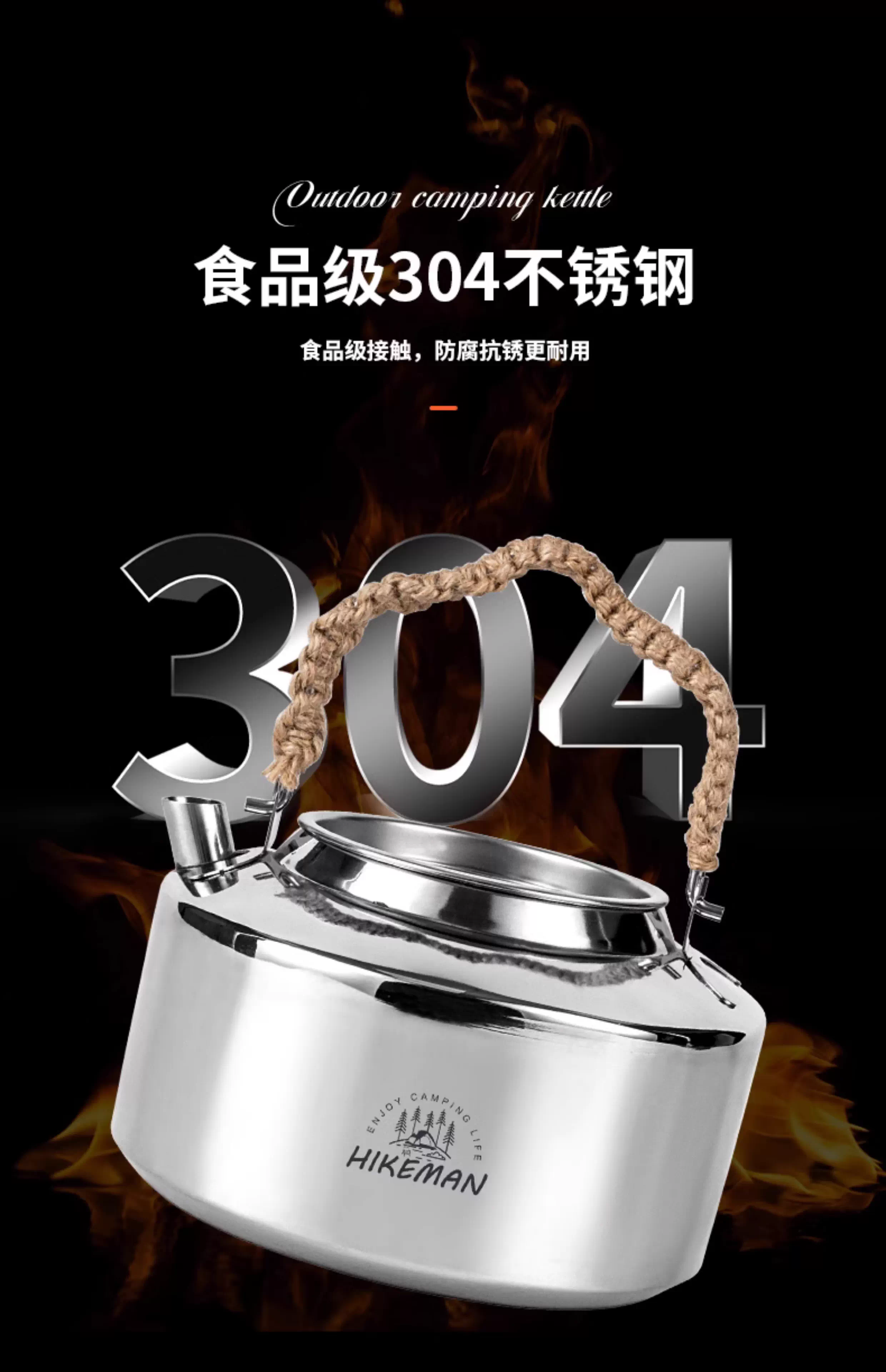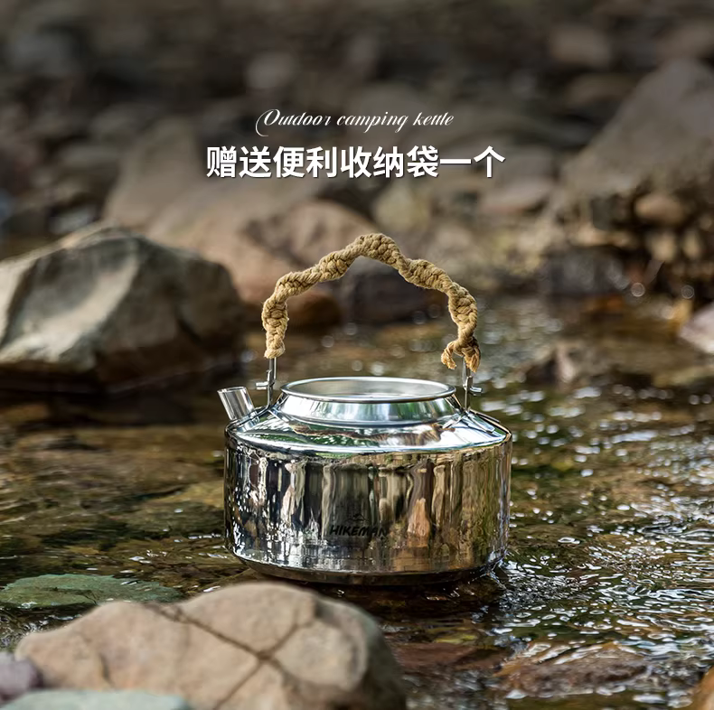Ấm đun nước ngoài trời HIKEMAN để cắm trại, đun nước sôi, pha trà, ấm trà di động bằng thép không gỉ 304, câu cá, dã ngoại, ấm cà phê
