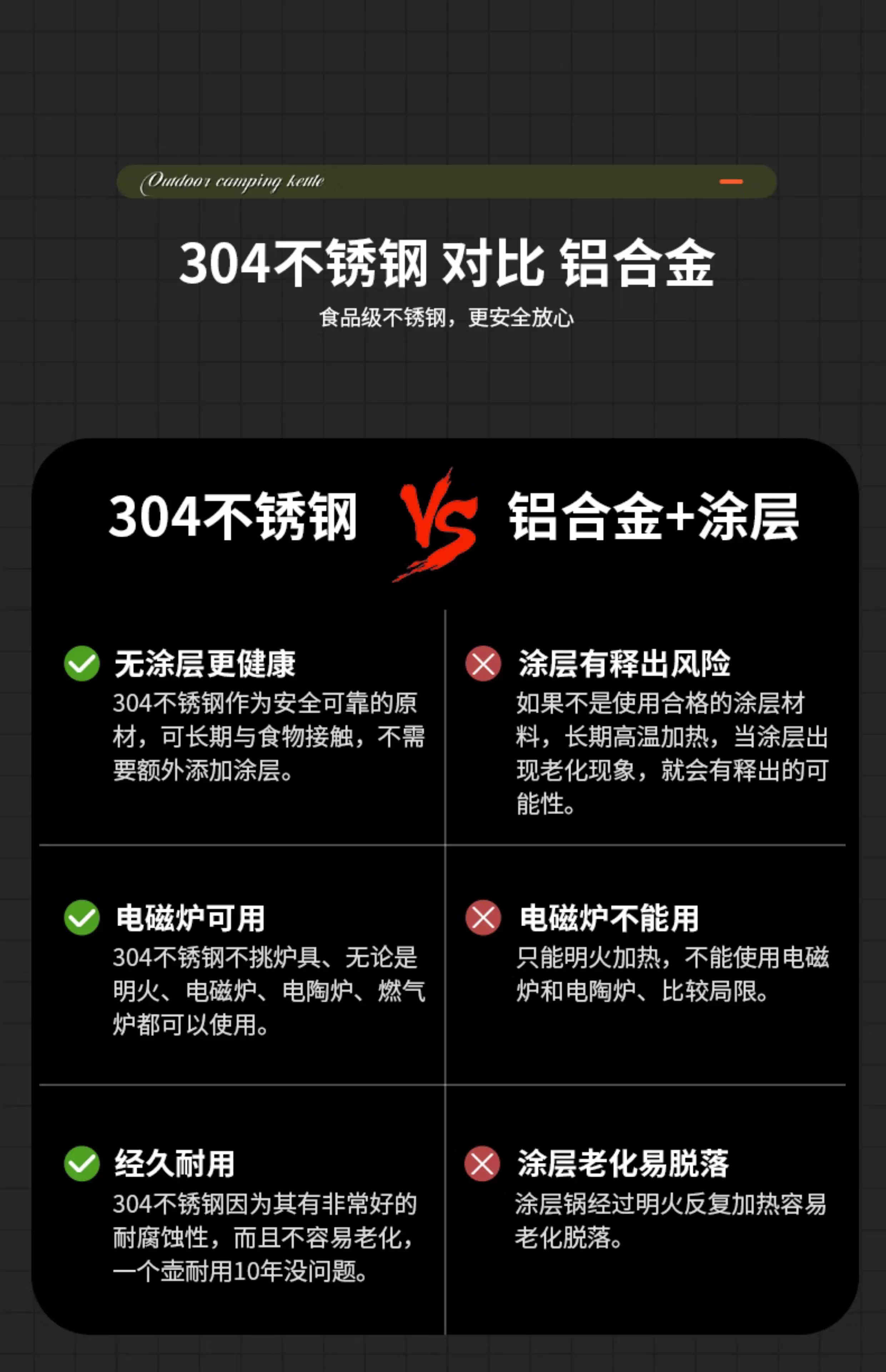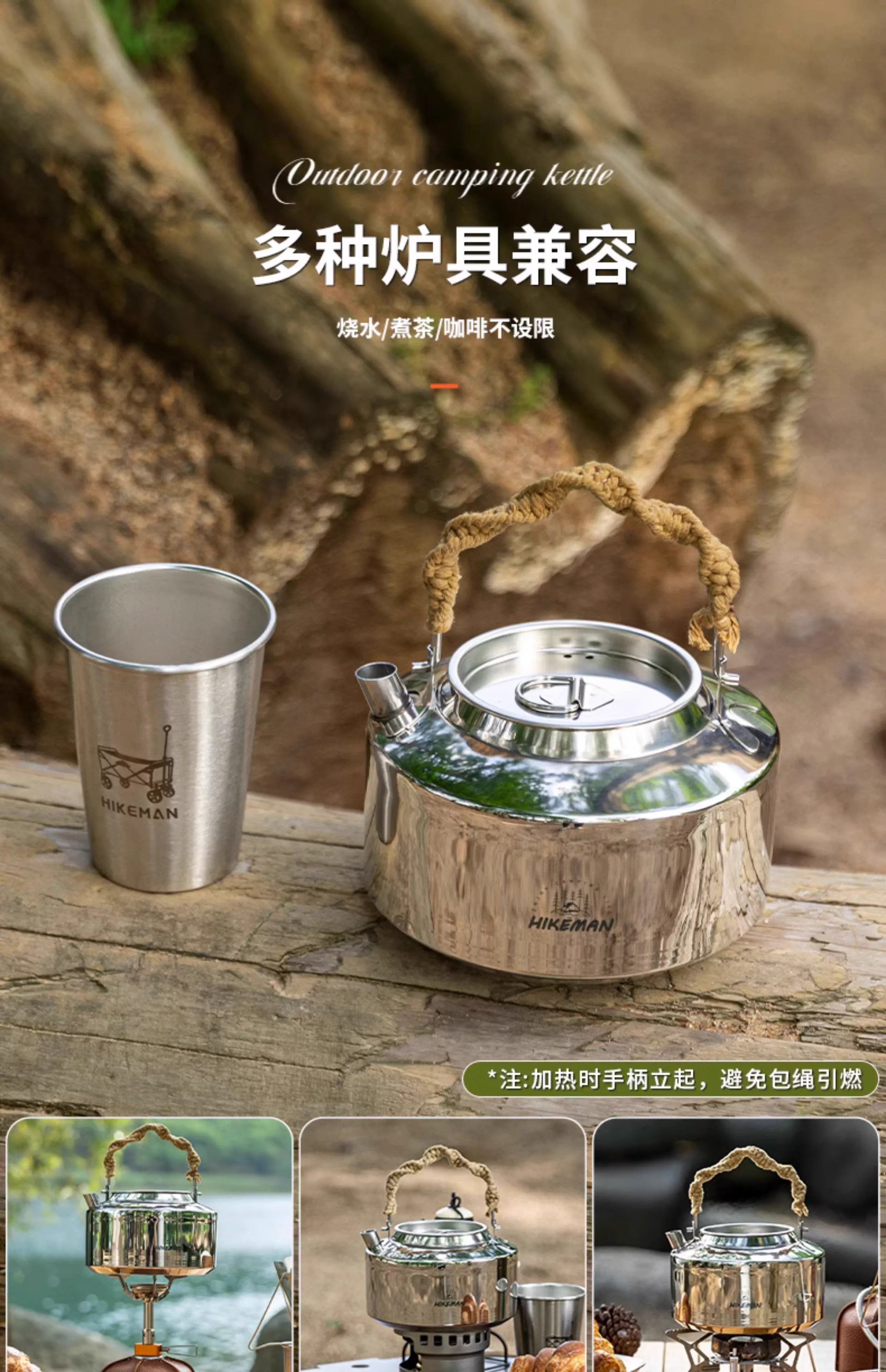 - Ấm đun nước ngoài trời HIKEMAN để cắm trại, đun nước sôi, pha trà, ấm trà di động bằng thép không gỉ 304, câu cá, dã ngoại, ấm cà phê