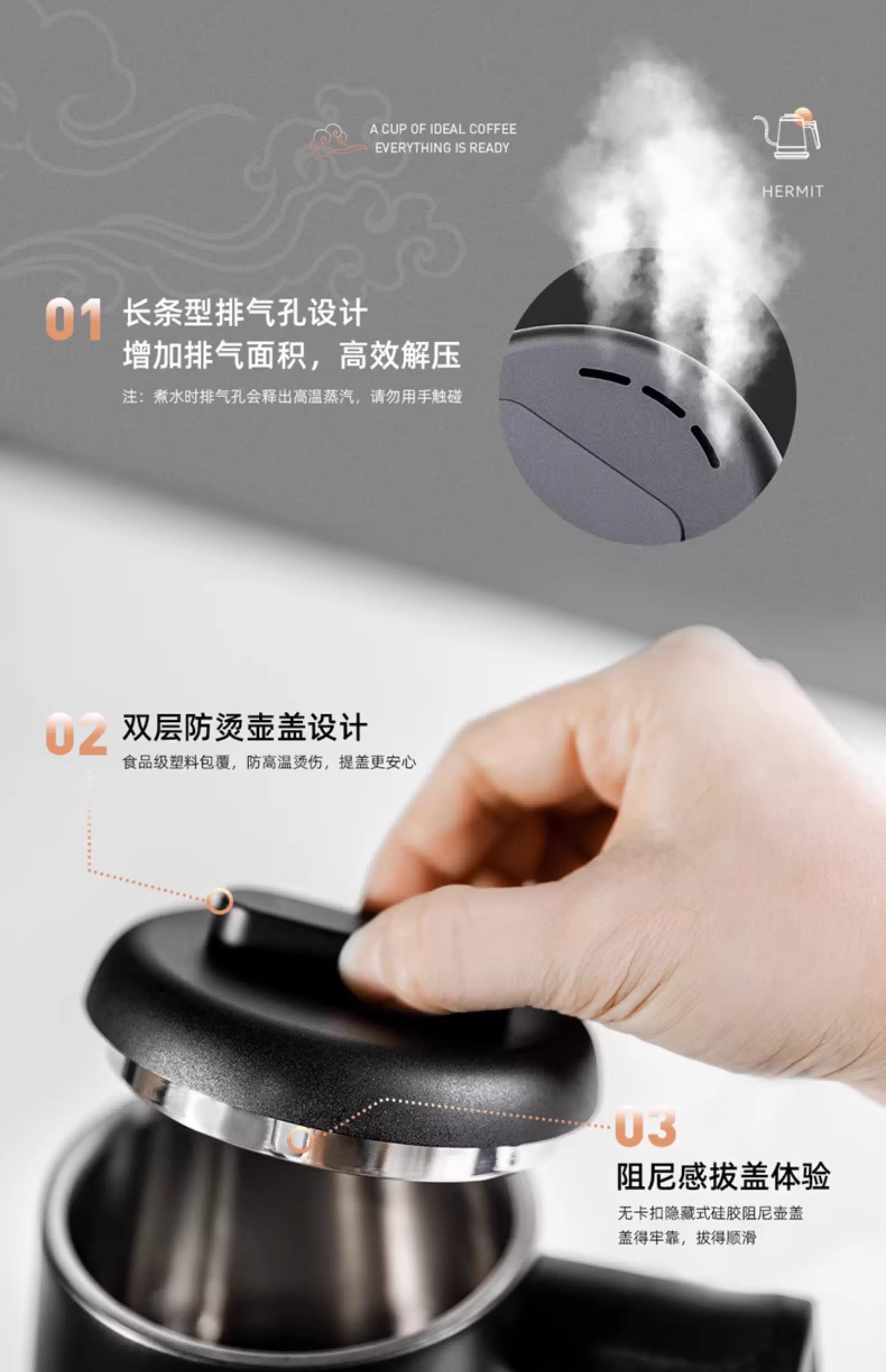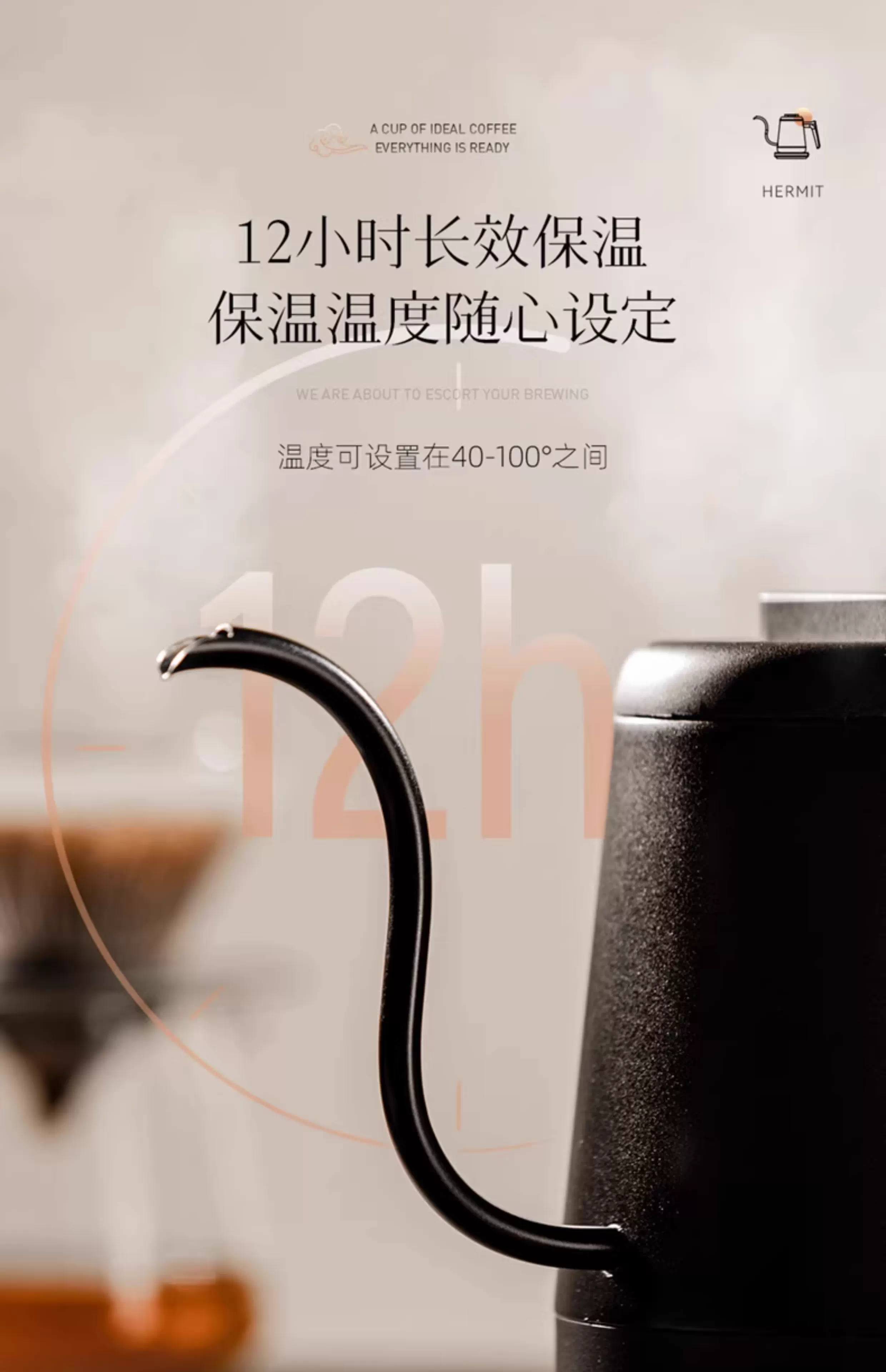 - Ấm pha cà phê Hermit Điều khiển nhiệt độ thông minh Ấm pha cà phê nhiệt độ không đổi Ấm đun nước điện có vòi dài để pha trà với khả năng kiểm soát nước chính xác